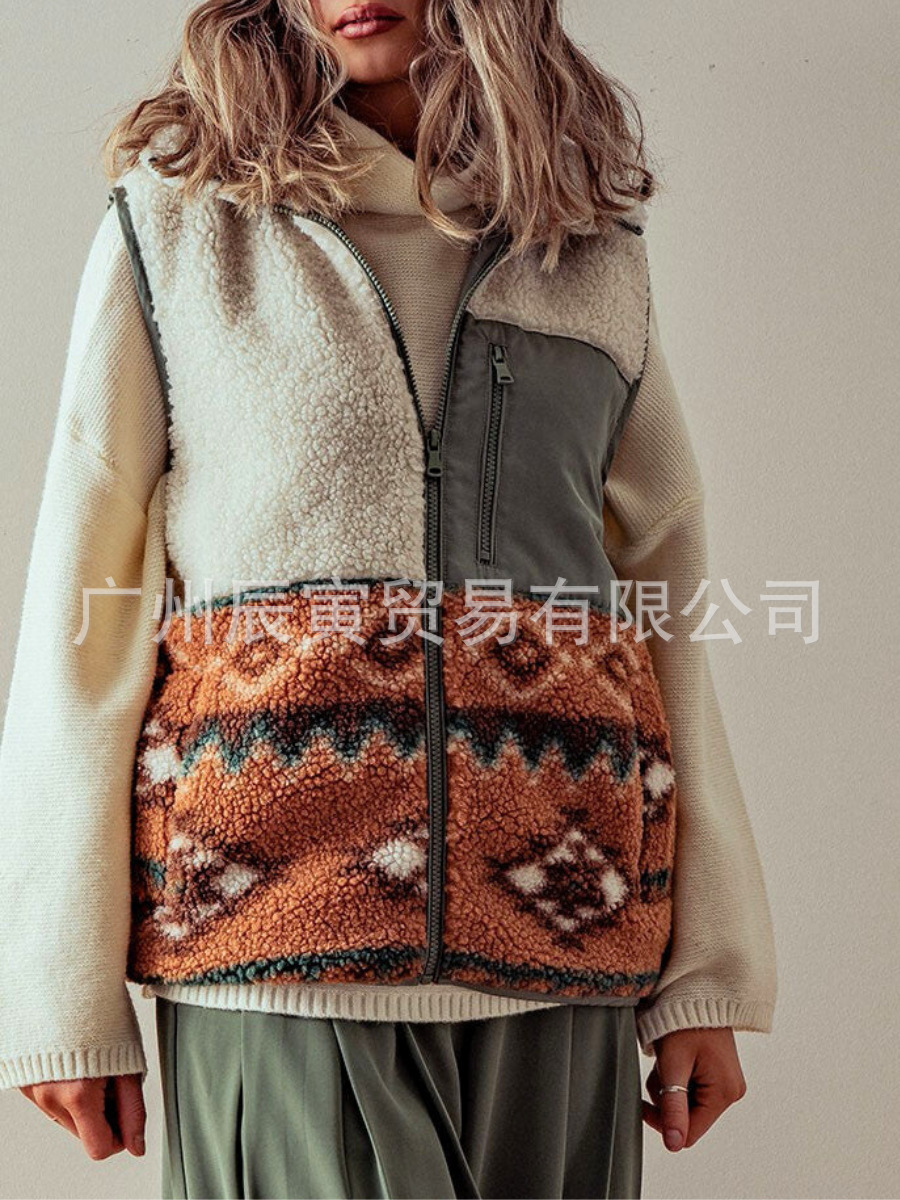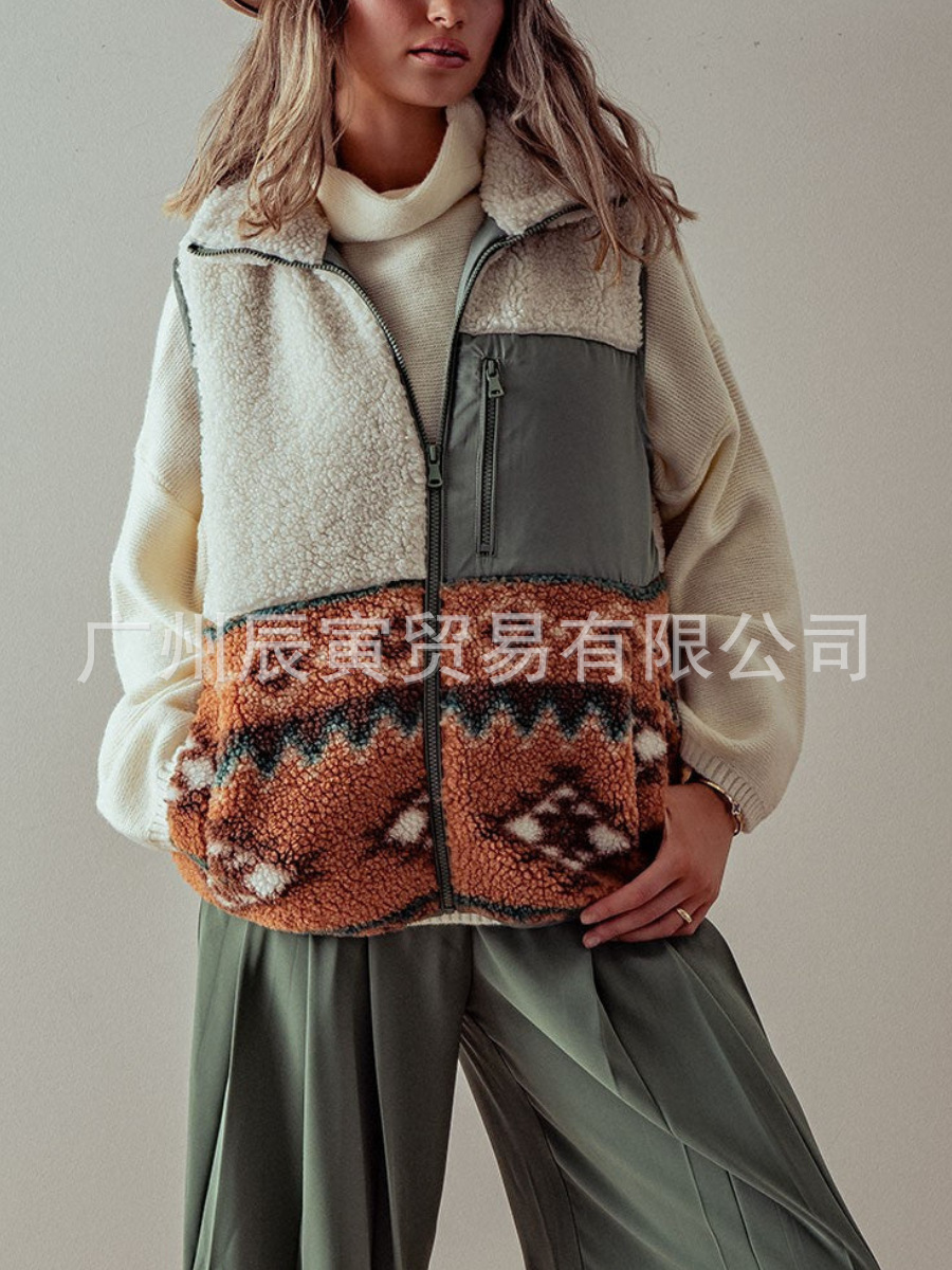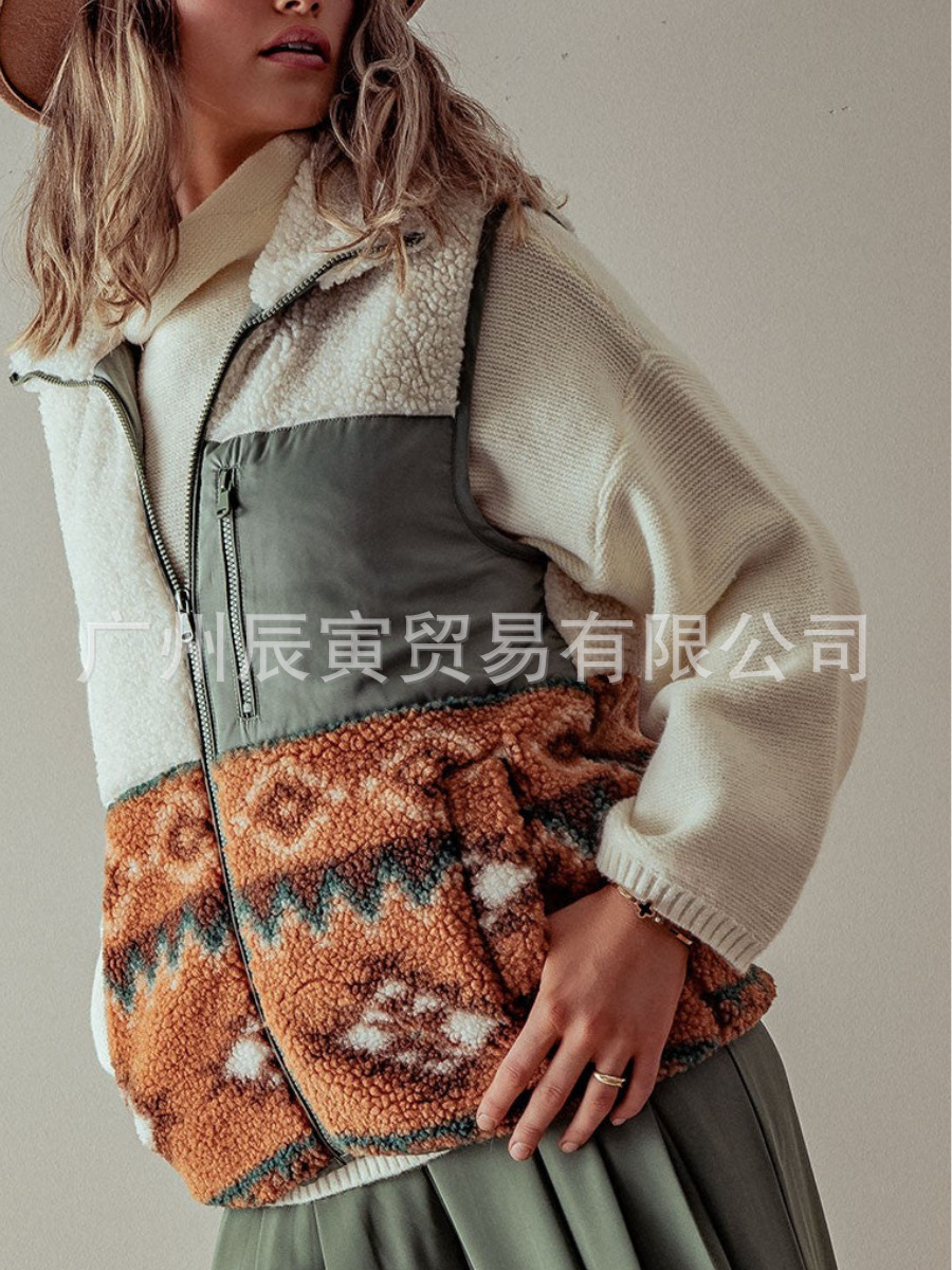 새로운 유럽과 미국 여성의 가을과 겨울 서양 스타일 Azik Lambskin 높은 칼라 바느질 봉제 조끼스토어 가기