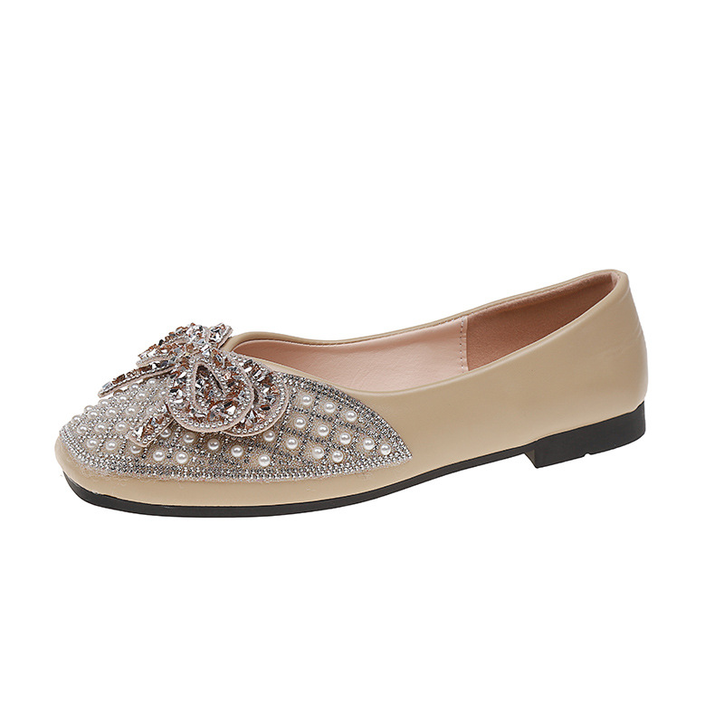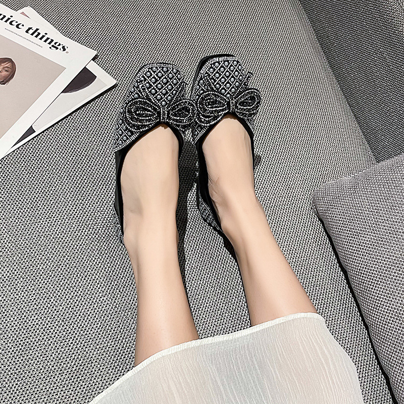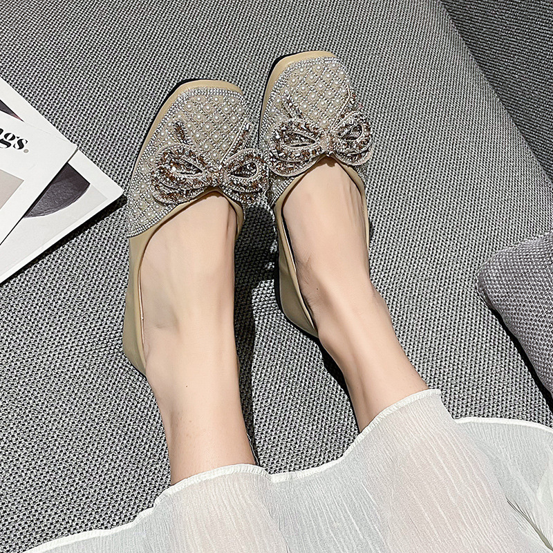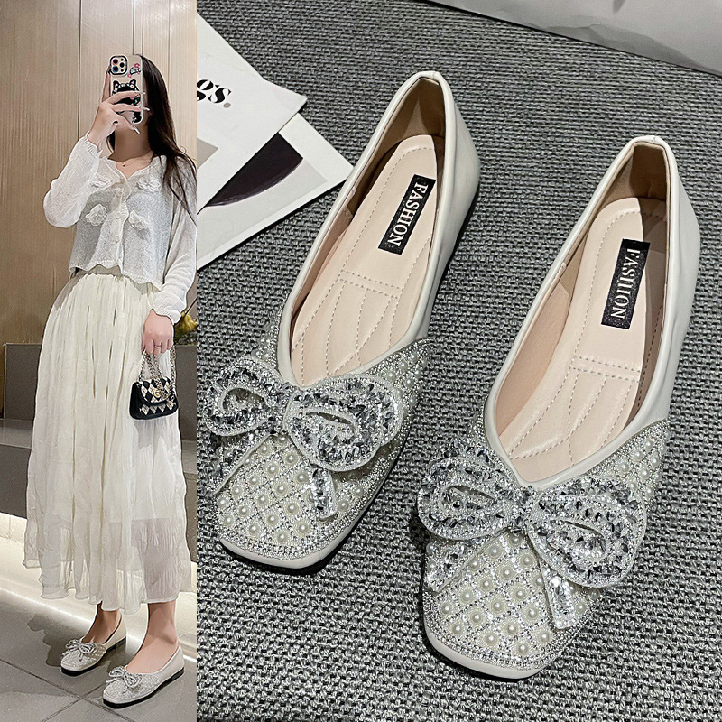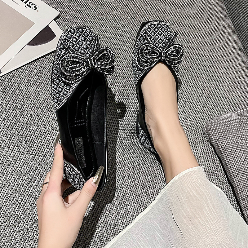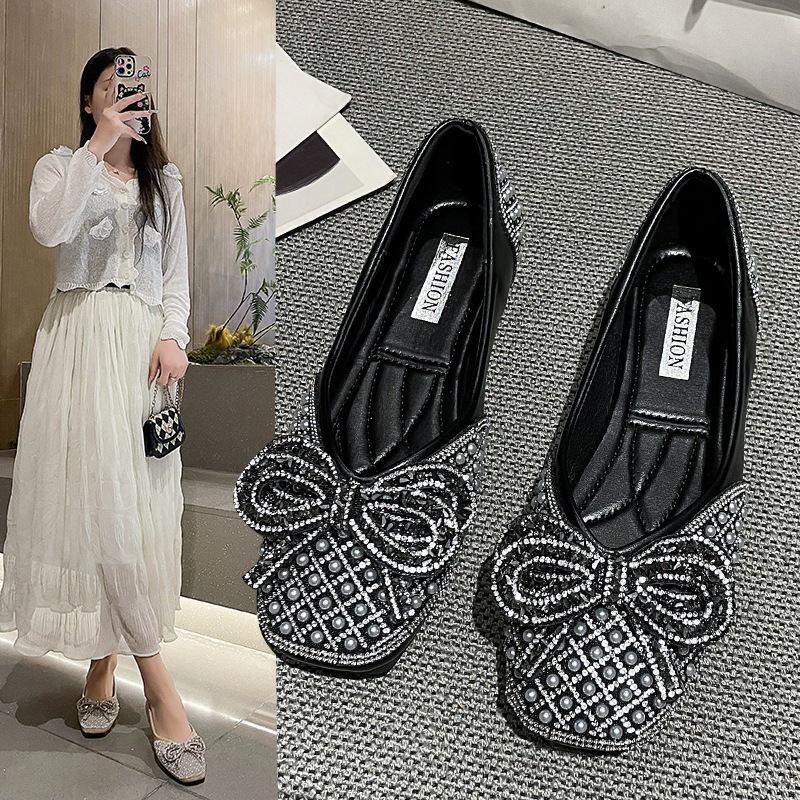 가을 2024 년 새 편평한 저발 신발 여성용 한국식 활 라인스톤 프렌치 스타일 스퀘어 발가락 얕은 입 플러스 사이즈 여성용 신발스토어 가기
