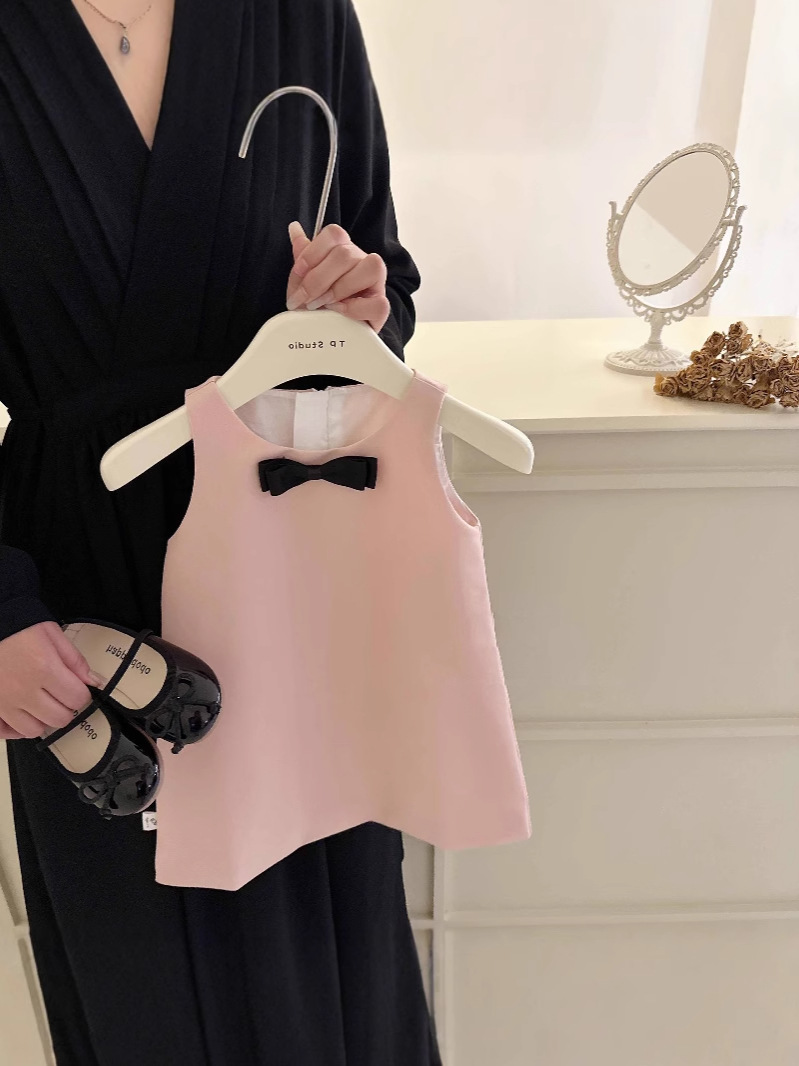 소녀 원피스 여름 새로운 프랑스 스타일 샤넬 스타일 활 원피스 공주 원피스 어린이 머리