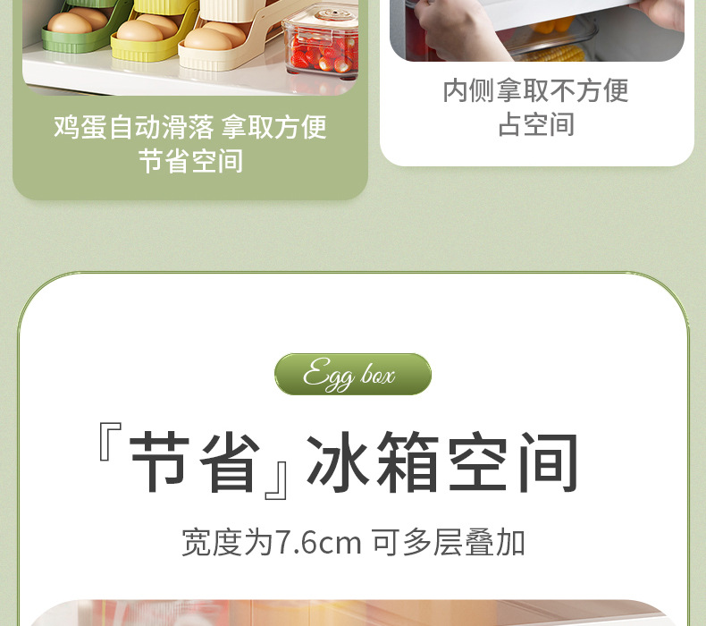 롤링 슬라이드 타입 계란 저장 상자 식품 등급 냉장고 사이드 도어 계란 상자 특별 신선한 보관 상자 마무리 유물