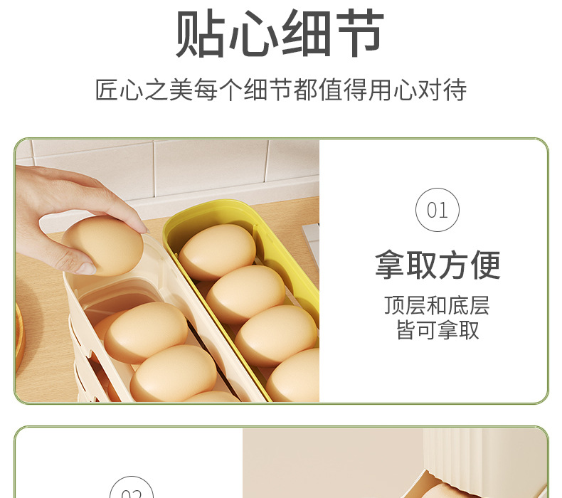 롤링 슬라이드 타입 계란 저장 상자 식품 등급 냉장고 사이드 도어 계란 상자 특별 신선한 보관 상자 마무리 유물스토어 가기
