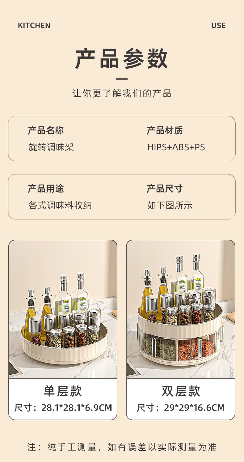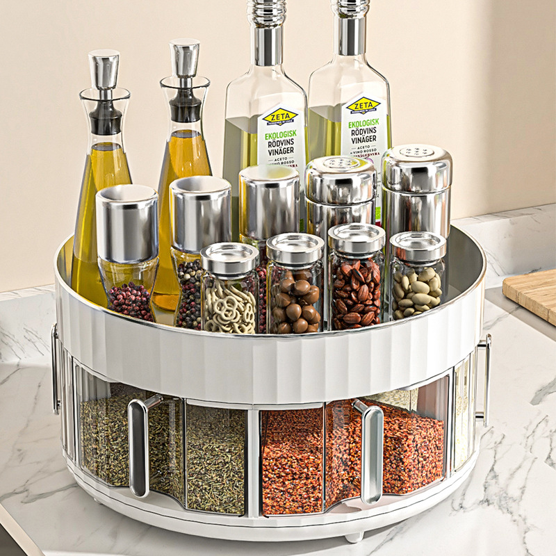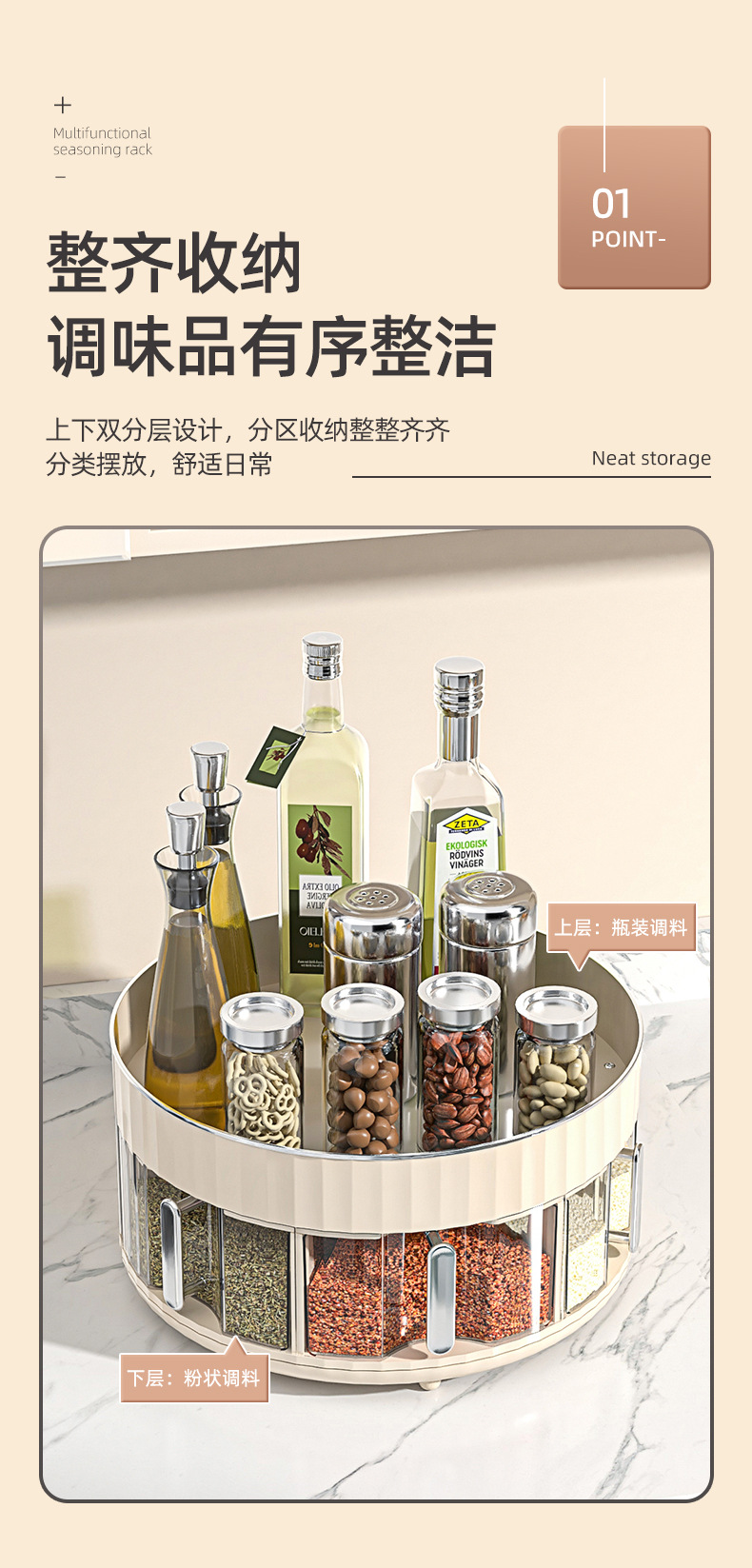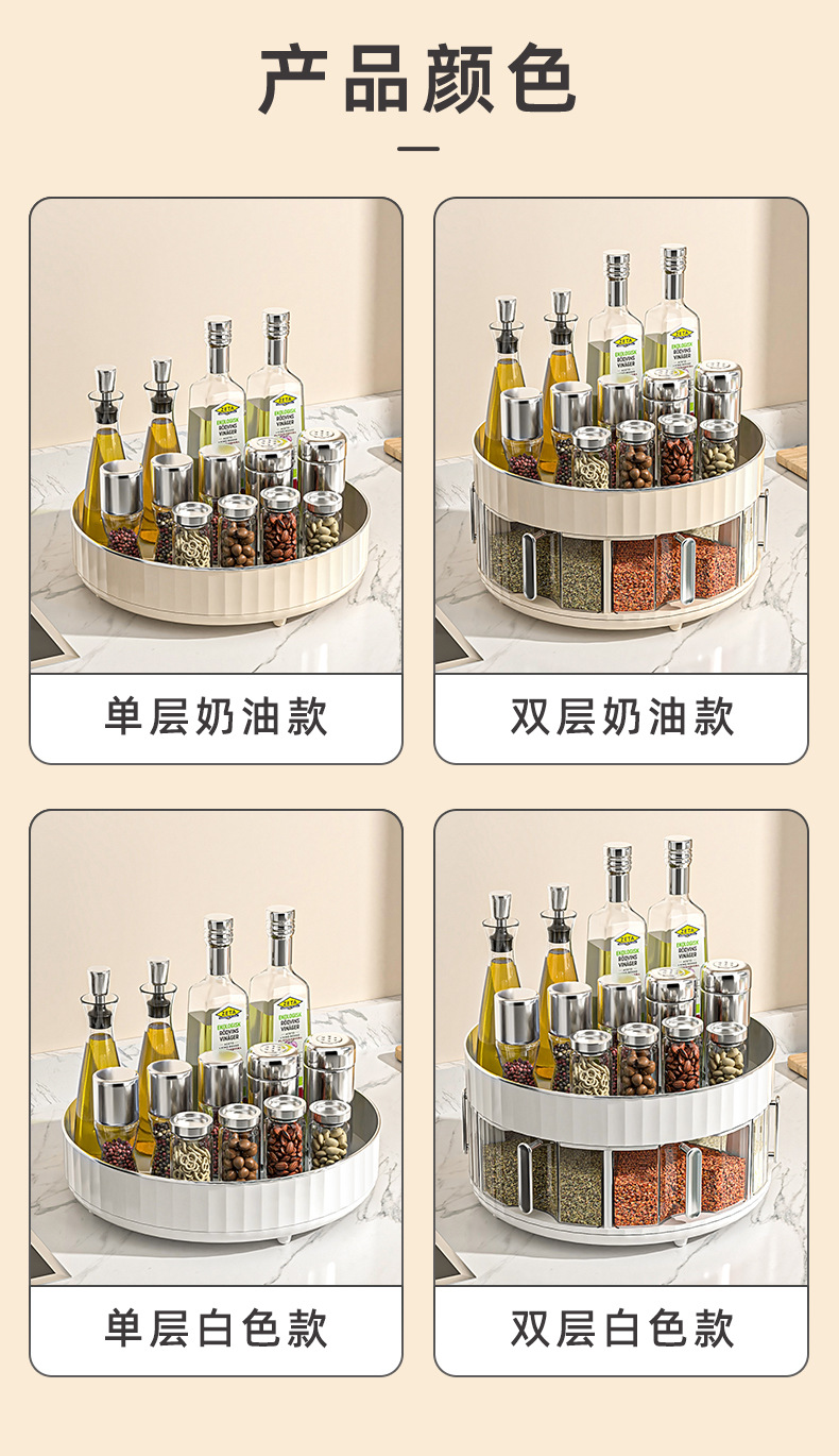 다기능 가정용 주방 회전 조미료 판 병 및 항아리 조미료 보관 랙 조리대 용 더블 레이어 비 펀치 저장 상자
