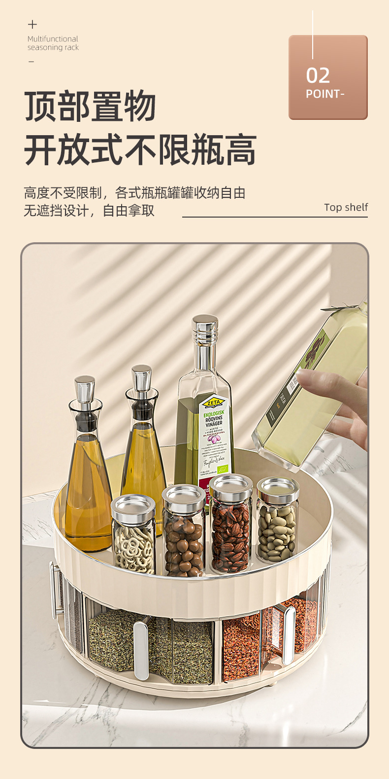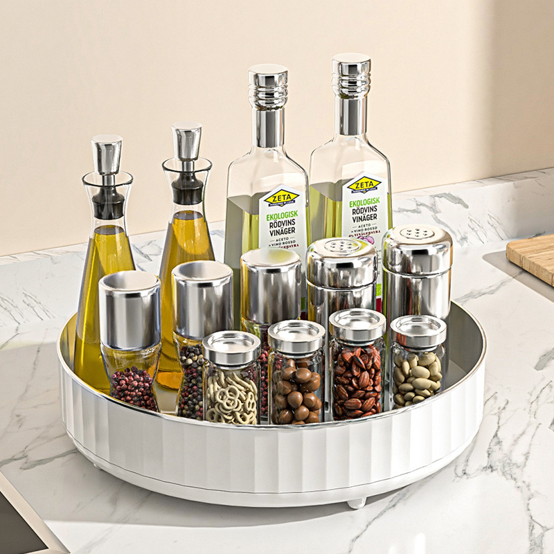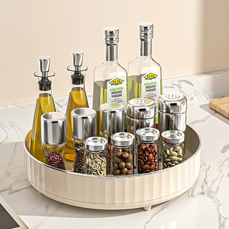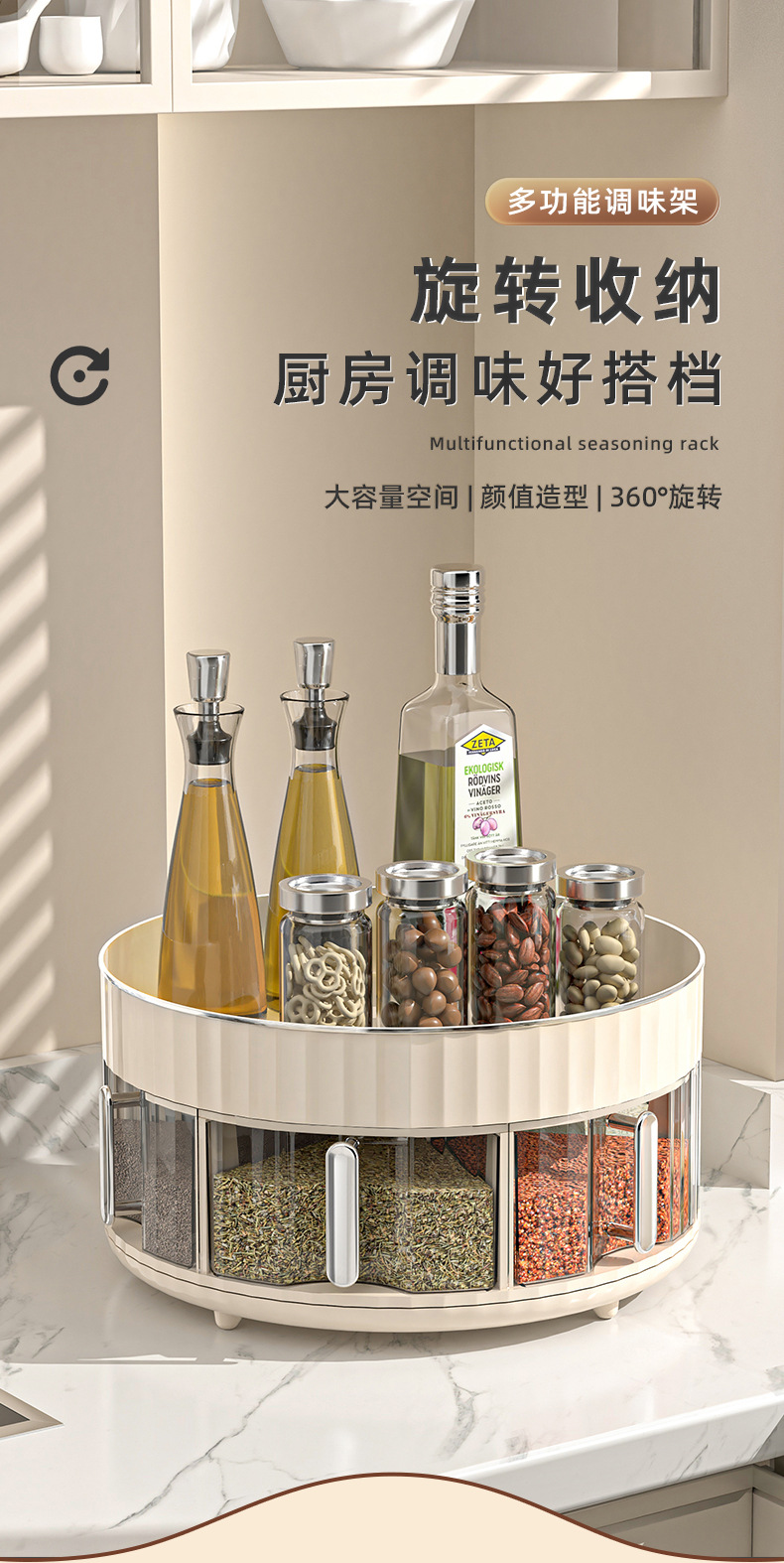 다기능 가정용 주방 회전 조미료 판 병 및 항아리 조미료 보관 랙 조리대 용 더블 레이어 비 펀치 저장 상자