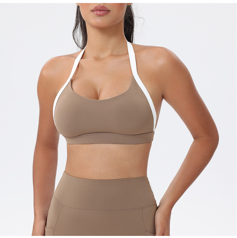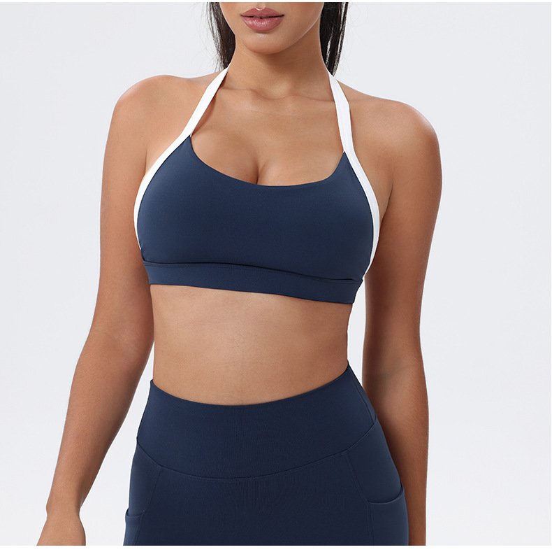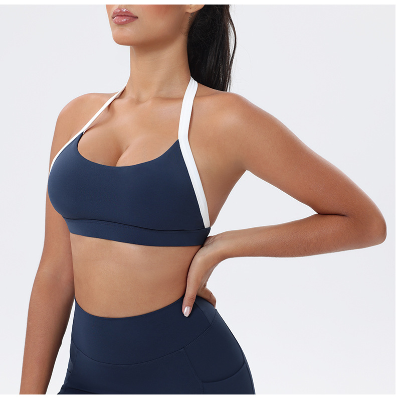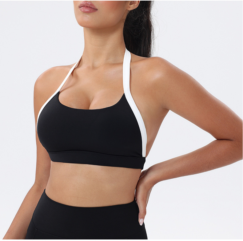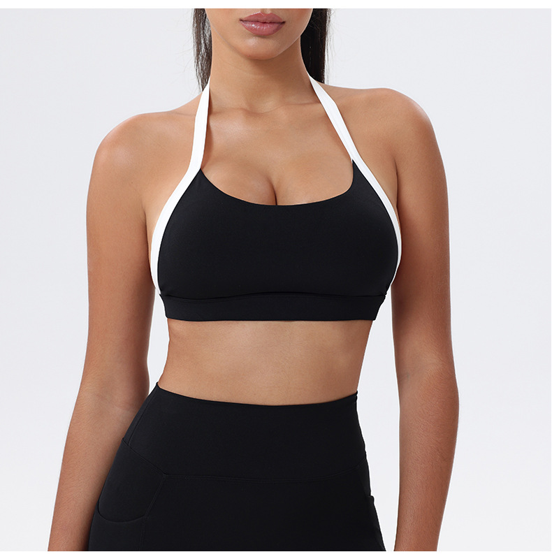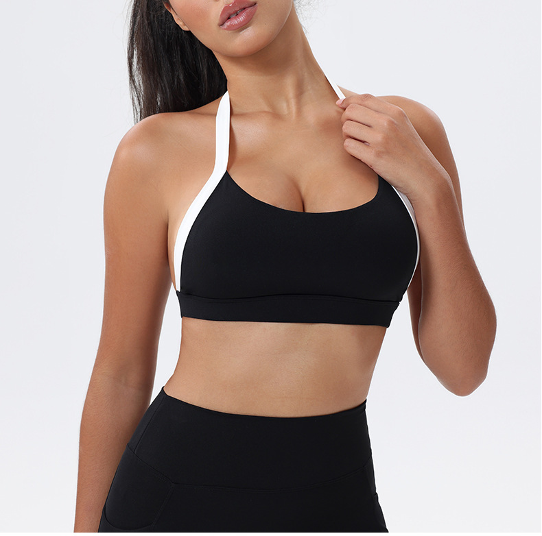 대비 색상 스티칭 목 다시 요가 의류 브래지어 빠른 건조 스포츠 속옷 달리기 피트니스 조끼스토어 가기