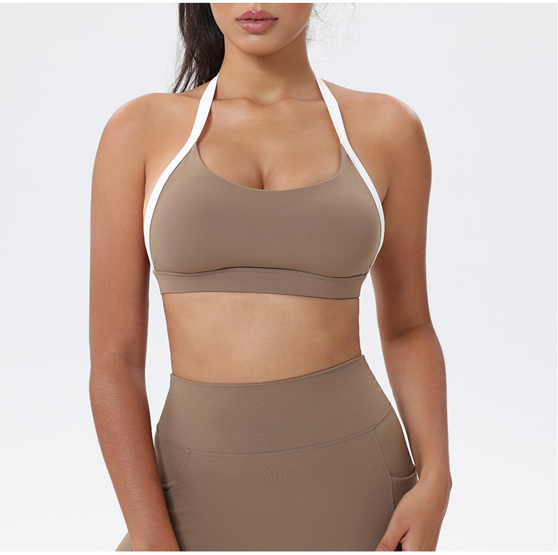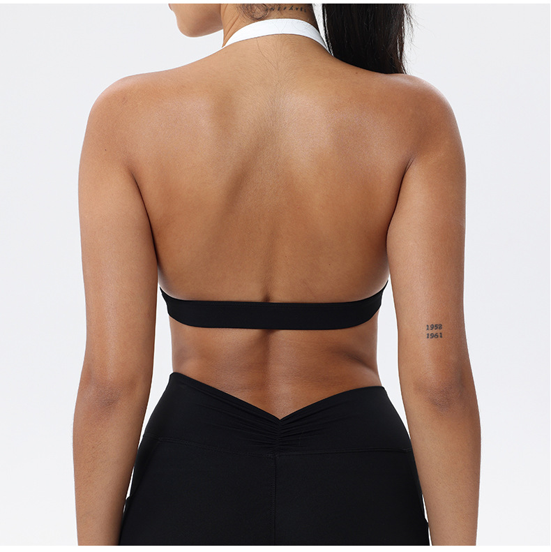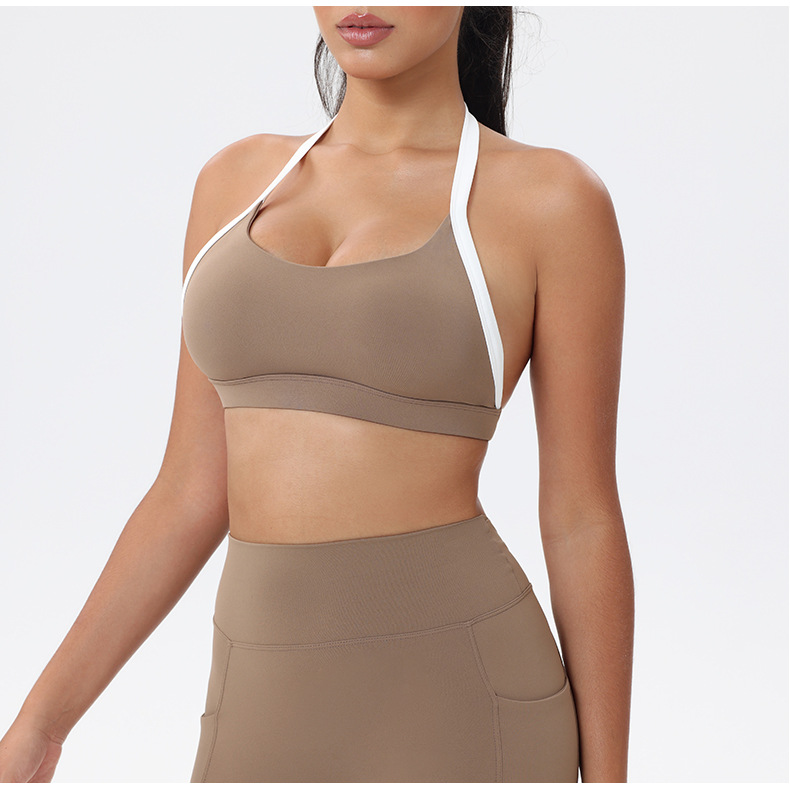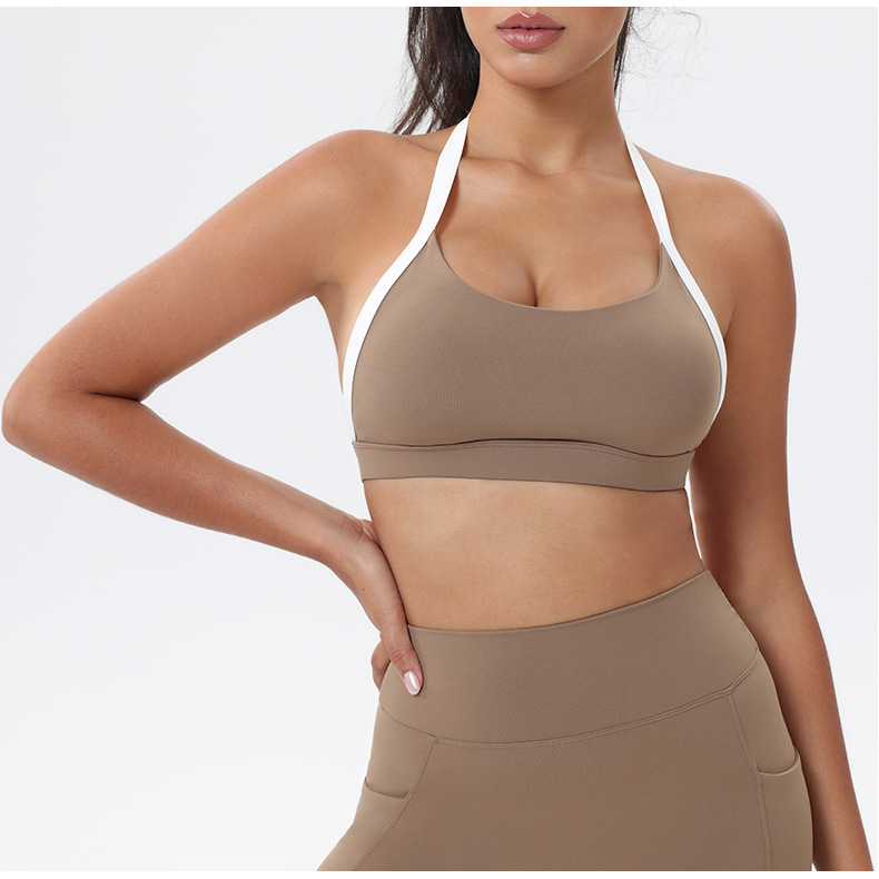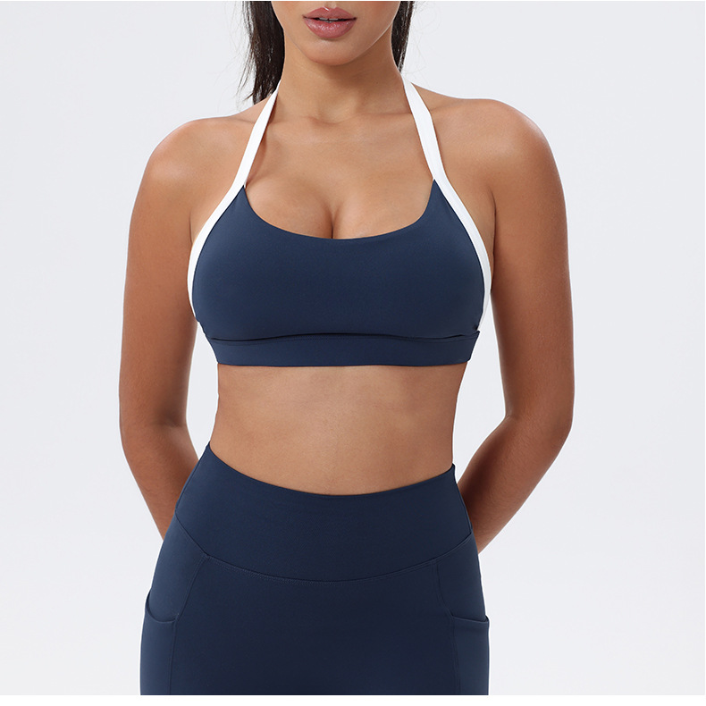 대비 색상 스티칭 목 다시 요가 의류 브래지어 빠른 건조 스포츠 속옷 달리기 피트니스 조끼스토어 가기