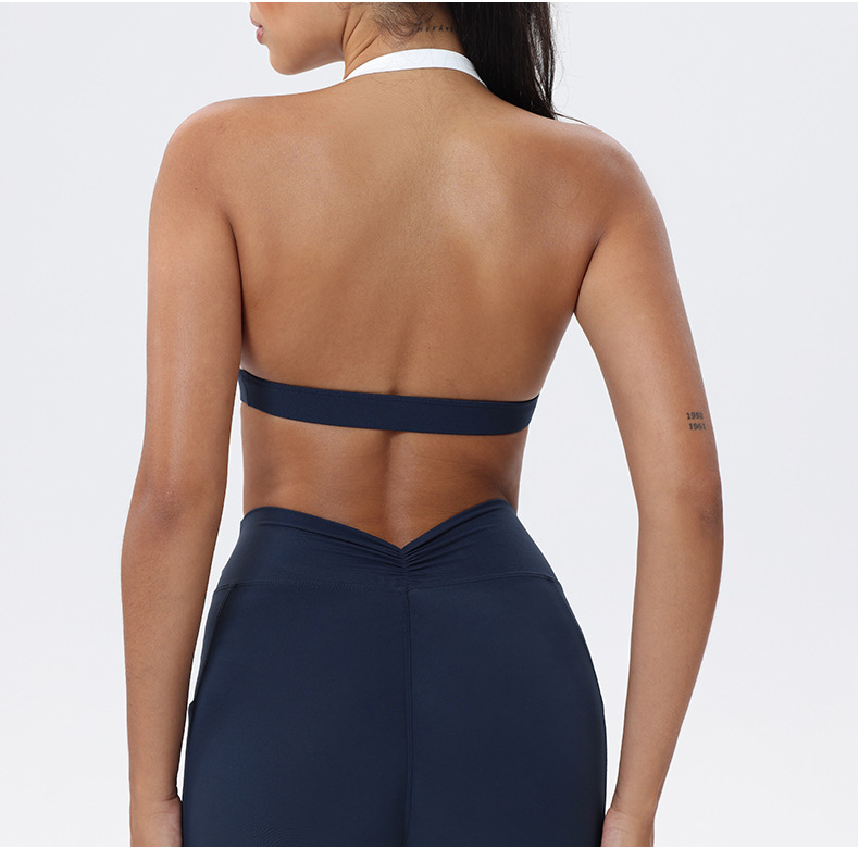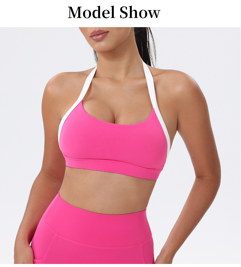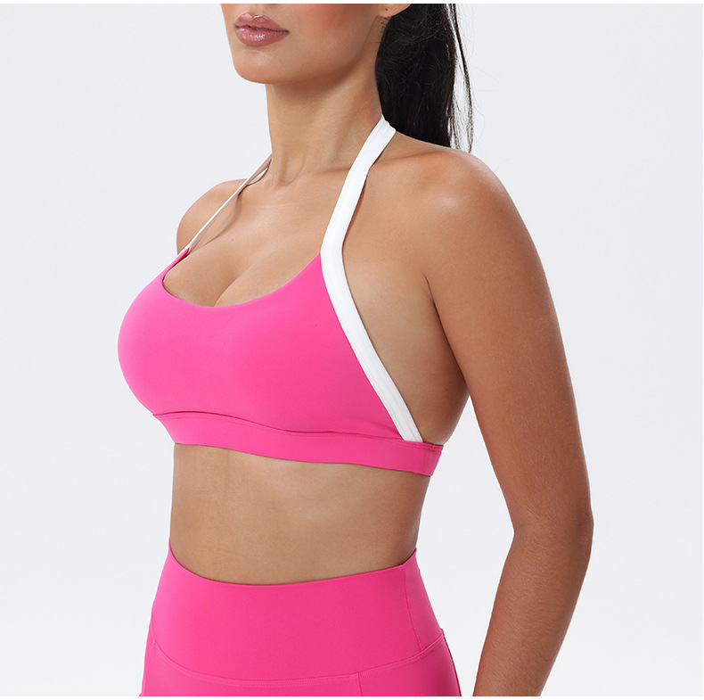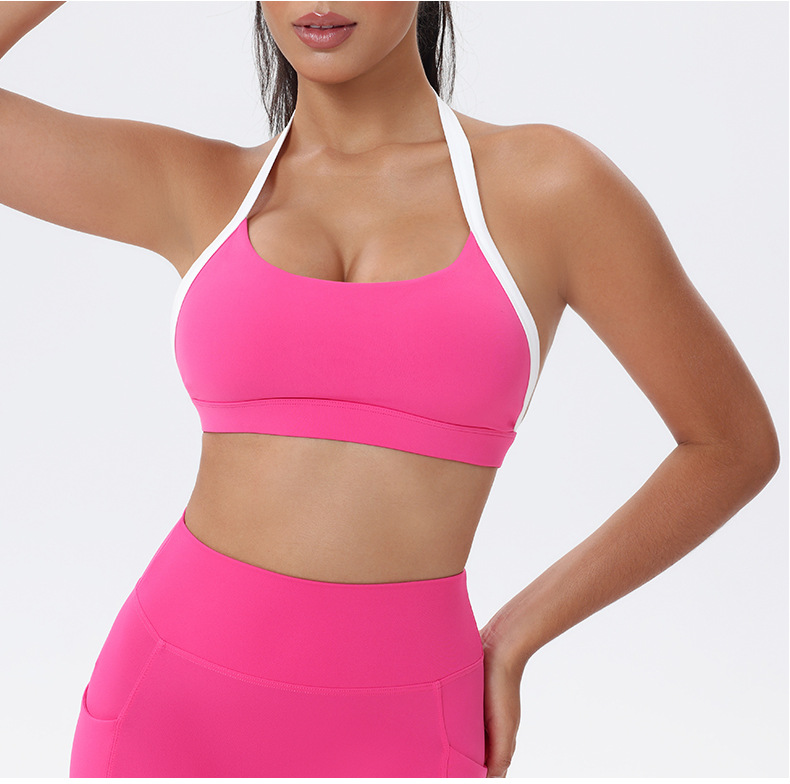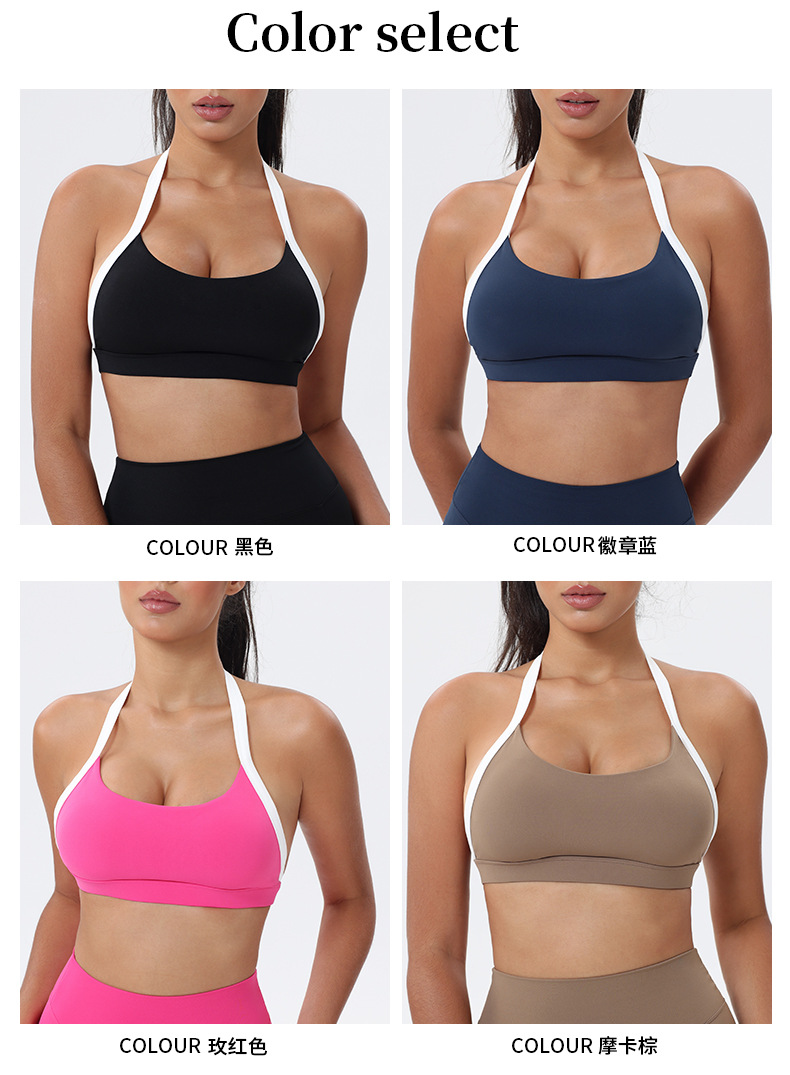 대비 색상 스티칭 목 다시 요가 의류 브래지어 빠른 건조 스포츠 속옷 달리기 피트니스 조끼