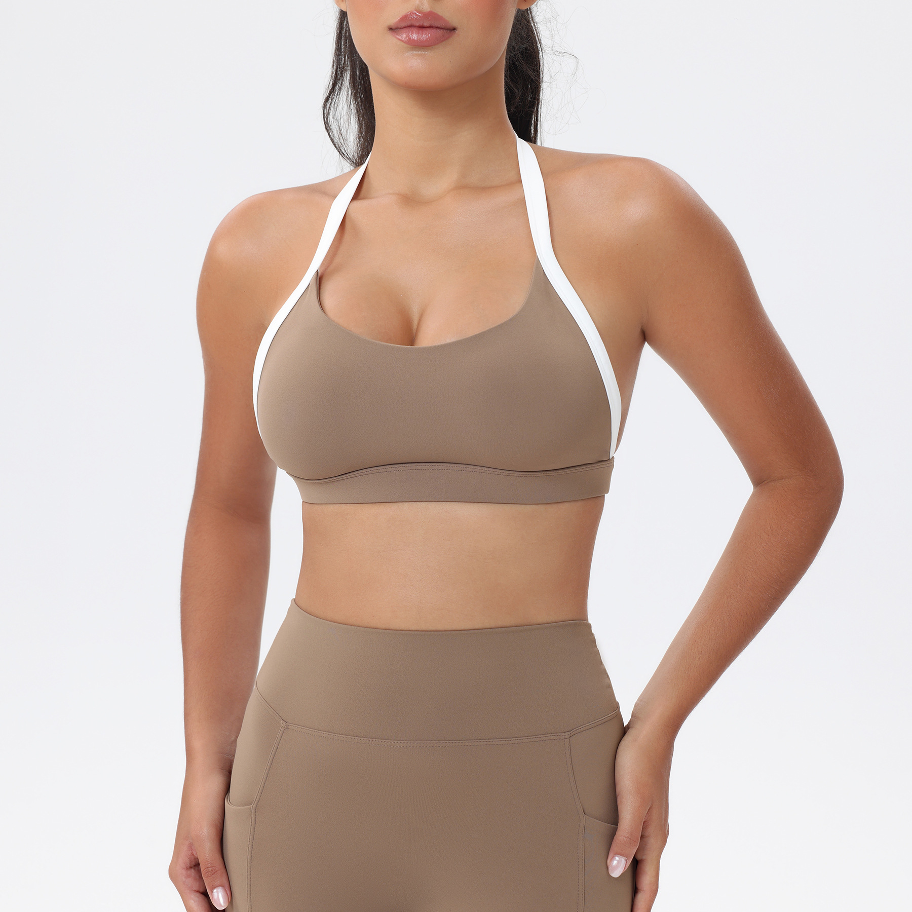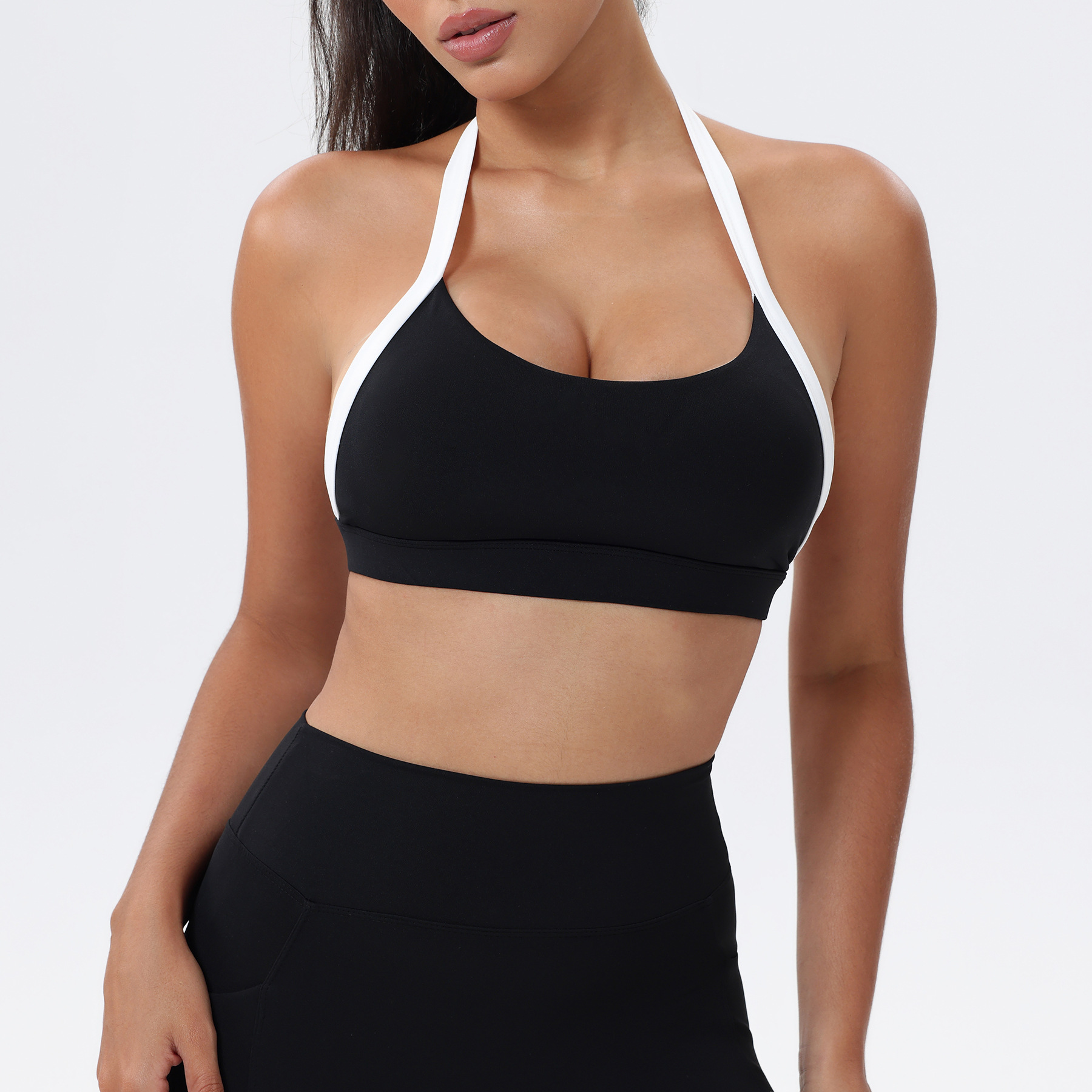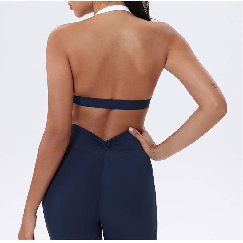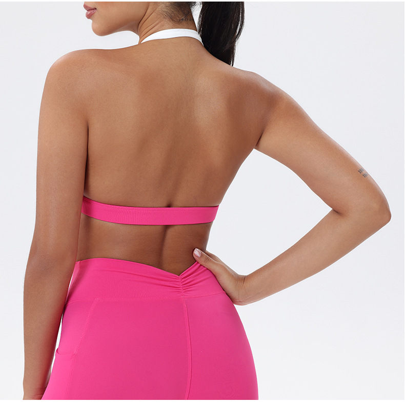 대비 색상 스티칭 목 다시 요가 의류 브래지어 빠른 건조 스포츠 속옷 달리기 피트니스 조끼