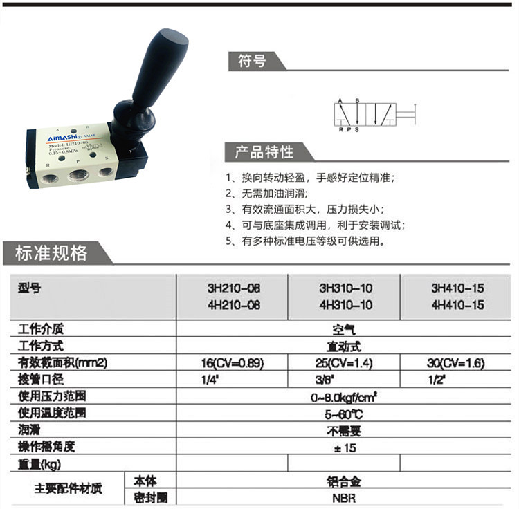 공압 밸브 수동 밸브 수동 밸브 4H210-08 실린더 반전 밸브 제어 밸브 4R210-08 핸드 핸드 밸브스토어 가기
