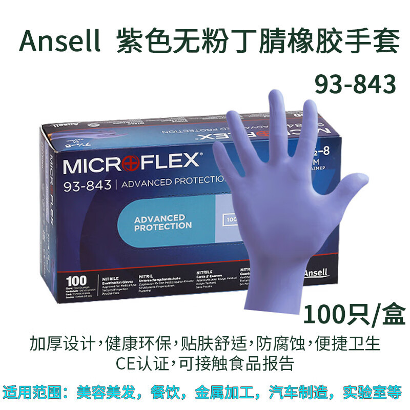 Anzel 93-843 일회용 니트릴 장갑 핑크-무료 보라색 착용 방지 및 내구성 터치 스크린 식품 등급 실험실스토어 가기
