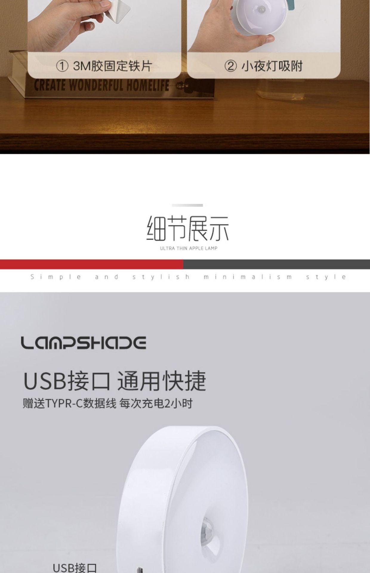 지능형 인체 유도 led 야간 조명 충전 야간 홈 통로 무선 조명 제어 제조 업체스토어 가기