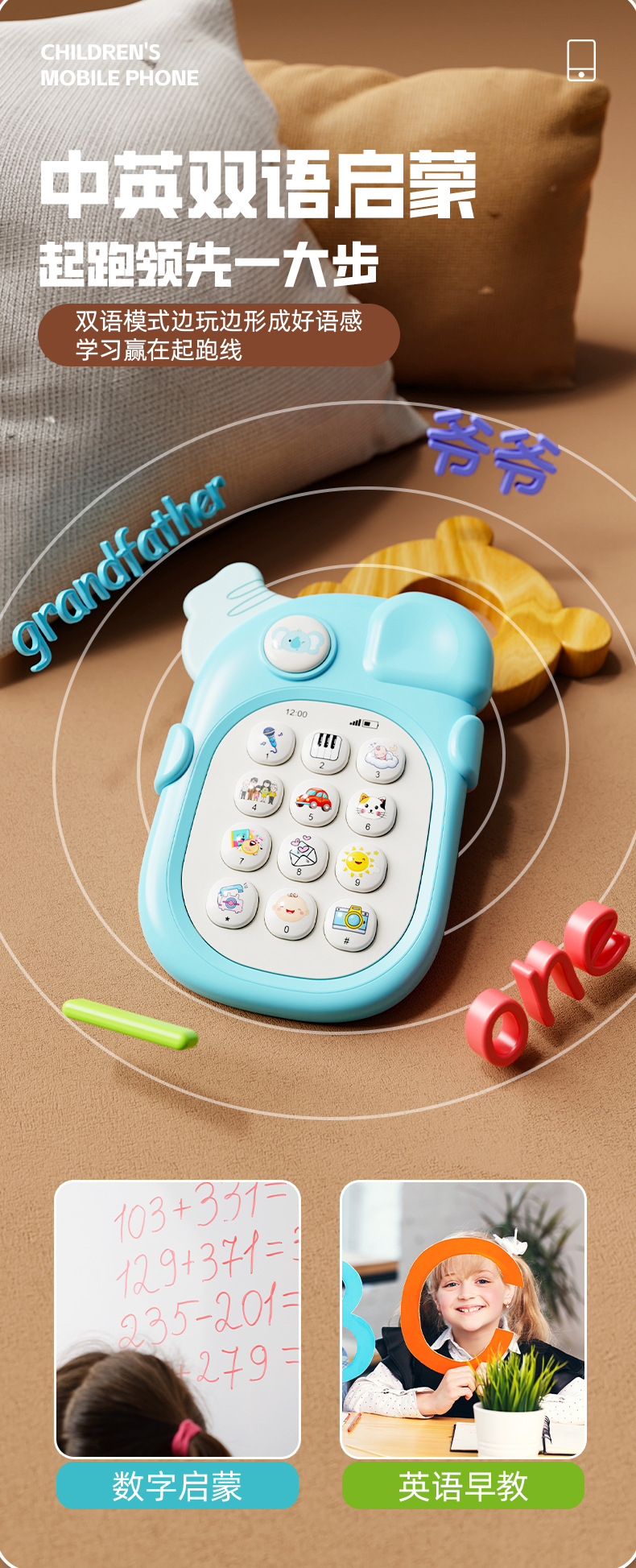 어린이 교육 조기 교육 휴대 전화 장난감 실리콘 씹을 수있는 중국어와 영어 이중 언어 계발 말하기 아기 아기 전화 스마트스토어 가기