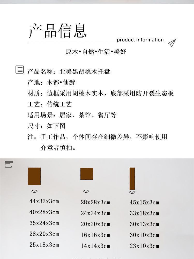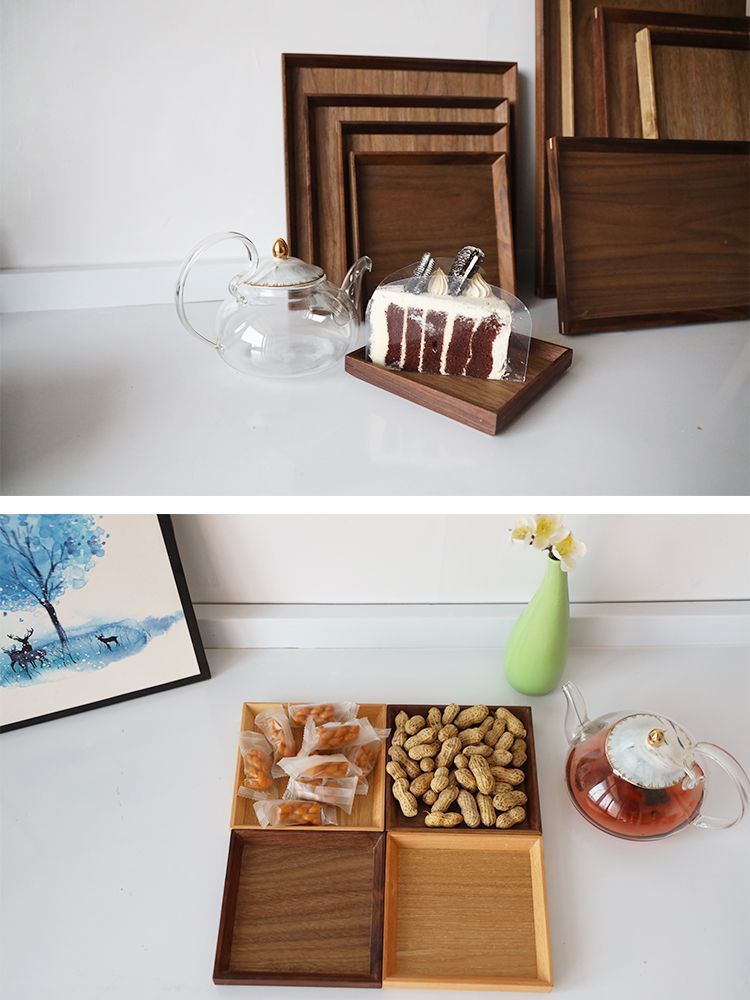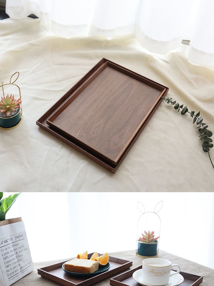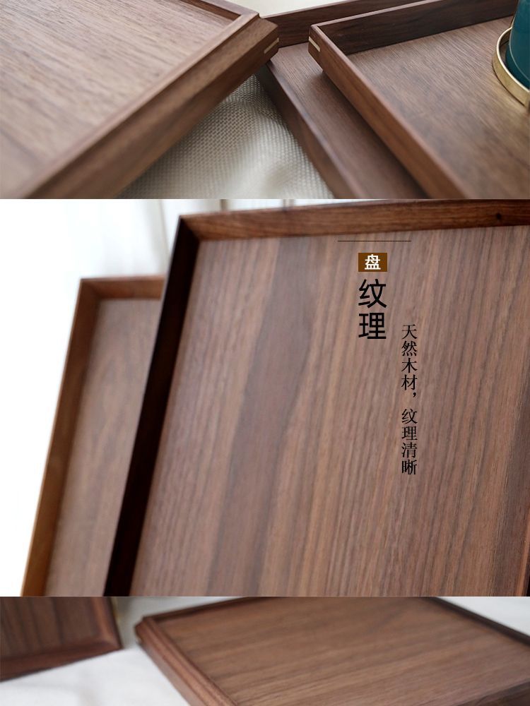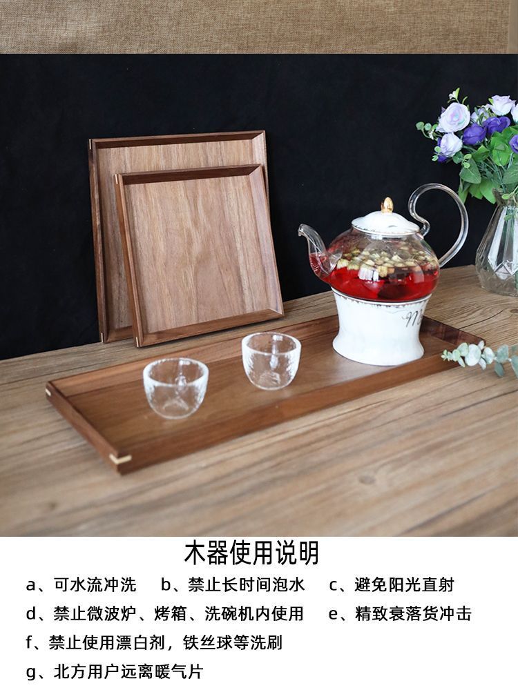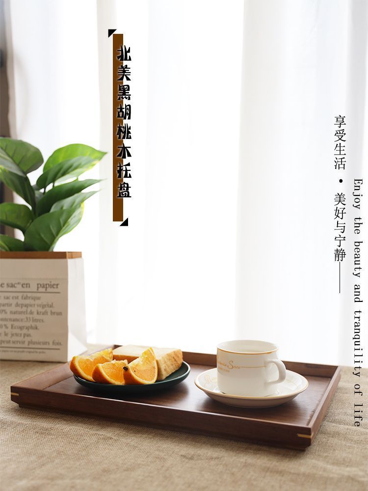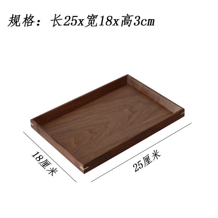 북미 블랙 호두 간단한 나무 트레이 호텔 고급 나무 접시 절묘한 차 트레이 직사각형 솔리드 우드 디너 플레이트