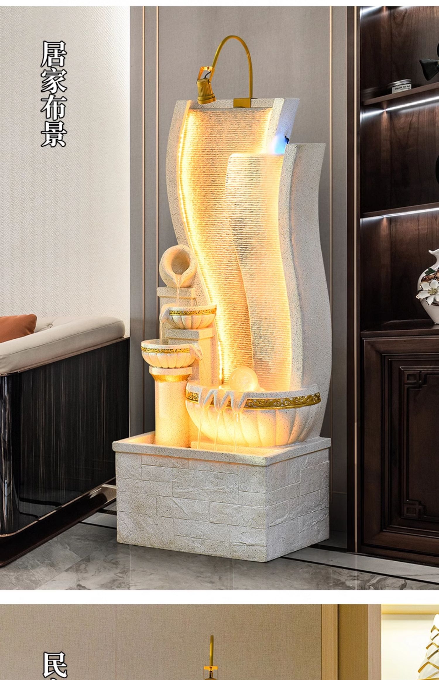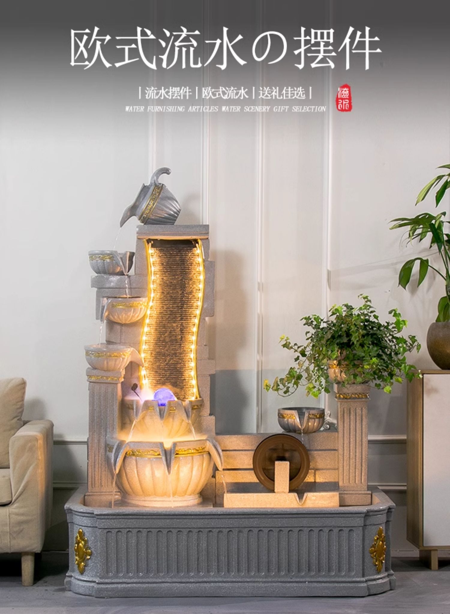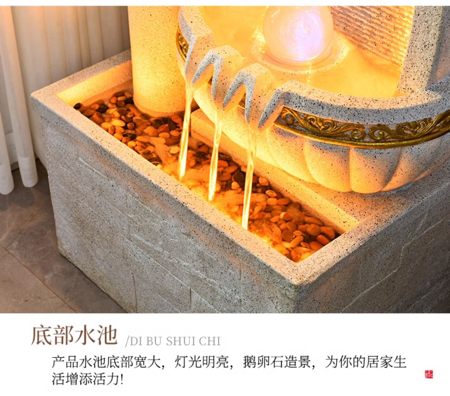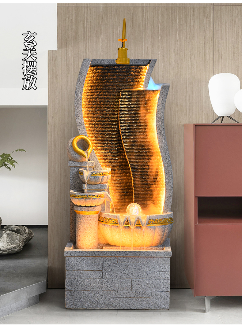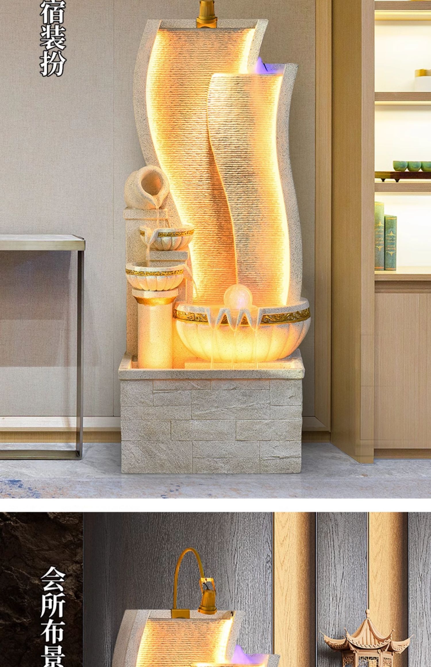 유럽식 흐르는 물 분수 가습기 거실 입구 바닥 바위 장식 실내 빛 고급 순환 물 풍경