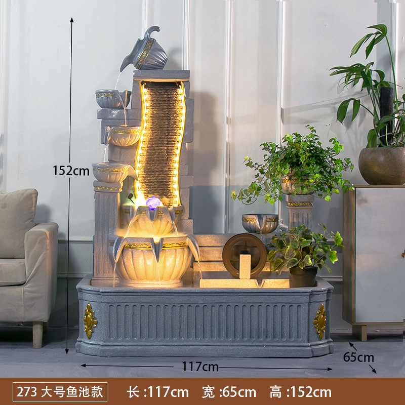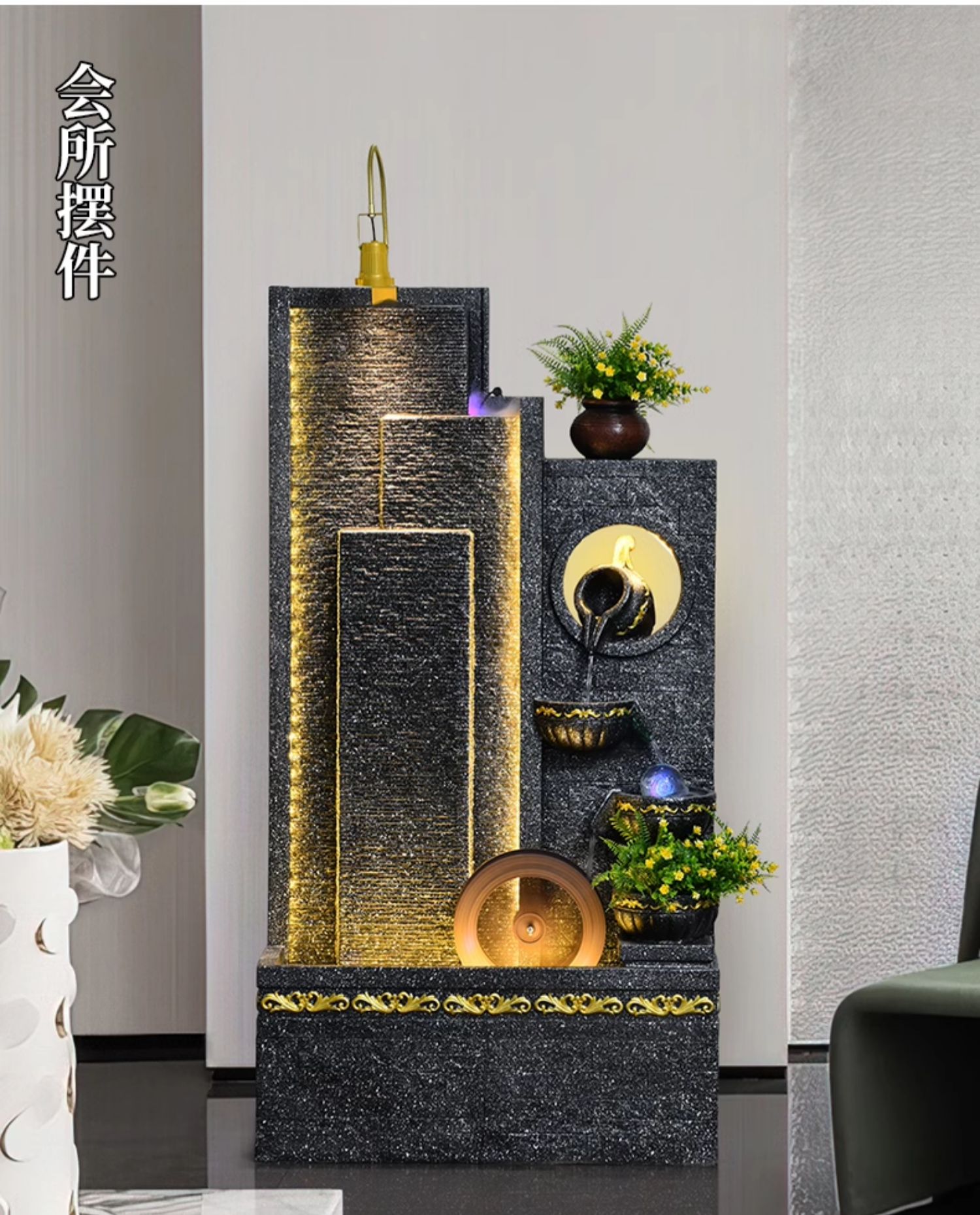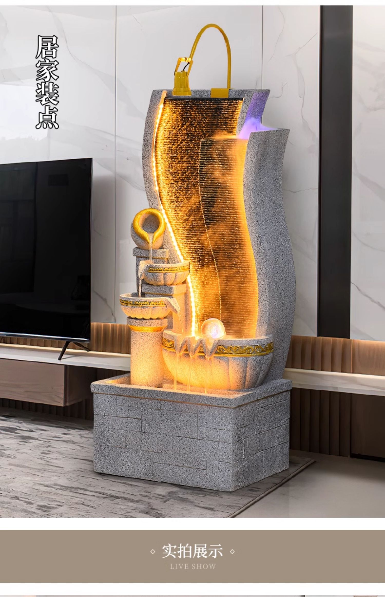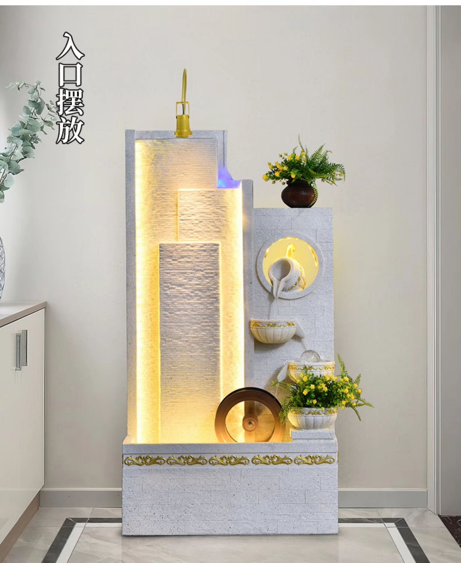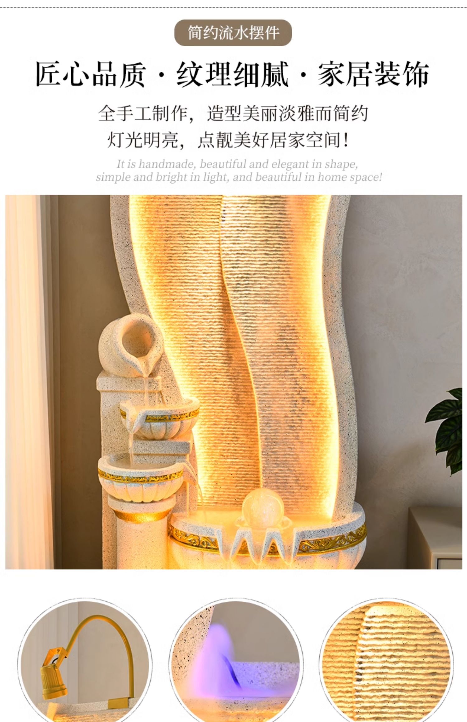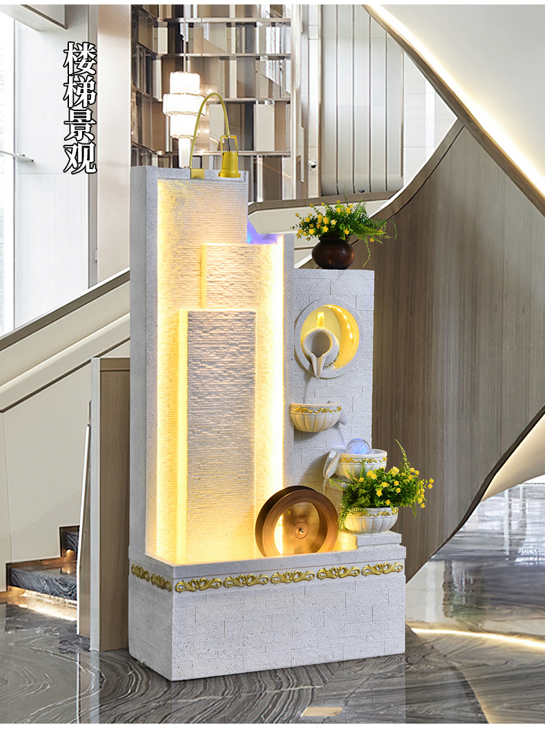 유럽식 흐르는 물 분수 가습기 거실 입구 바닥 바위 장식 실내 빛 고급 순환 물 풍경