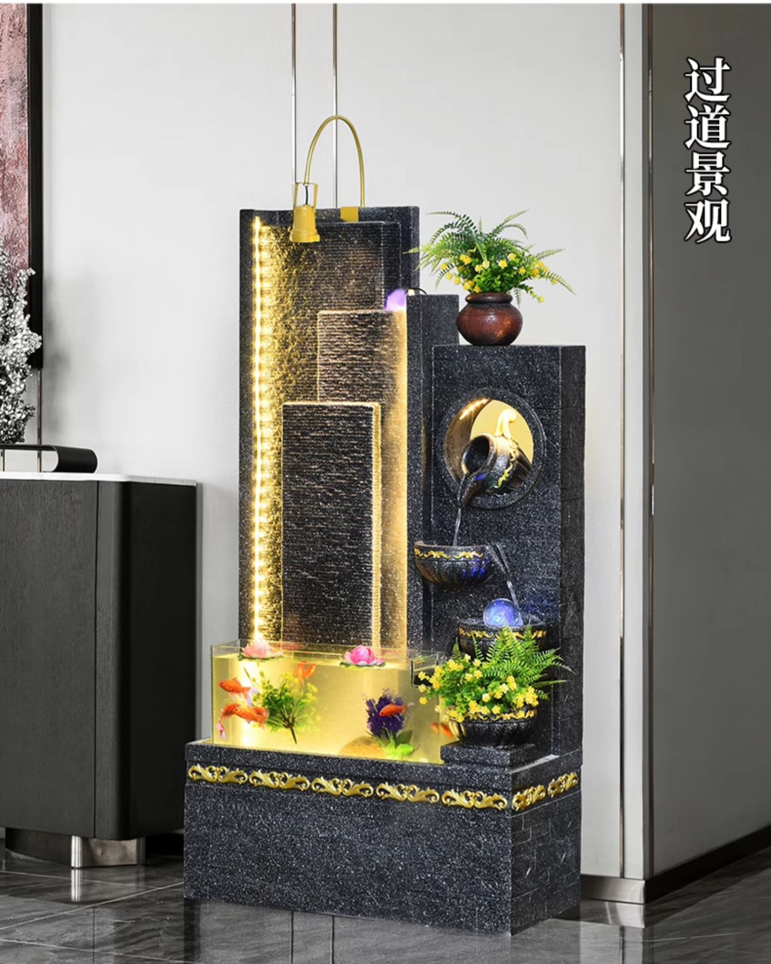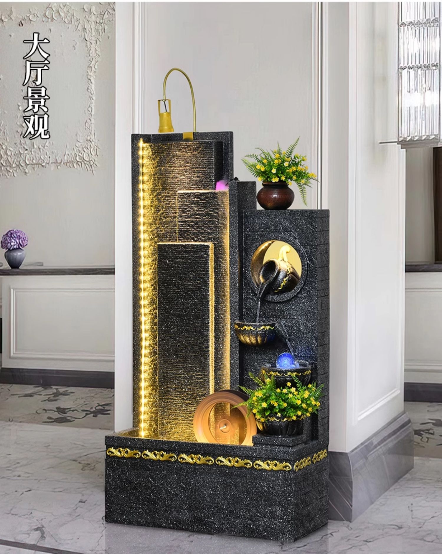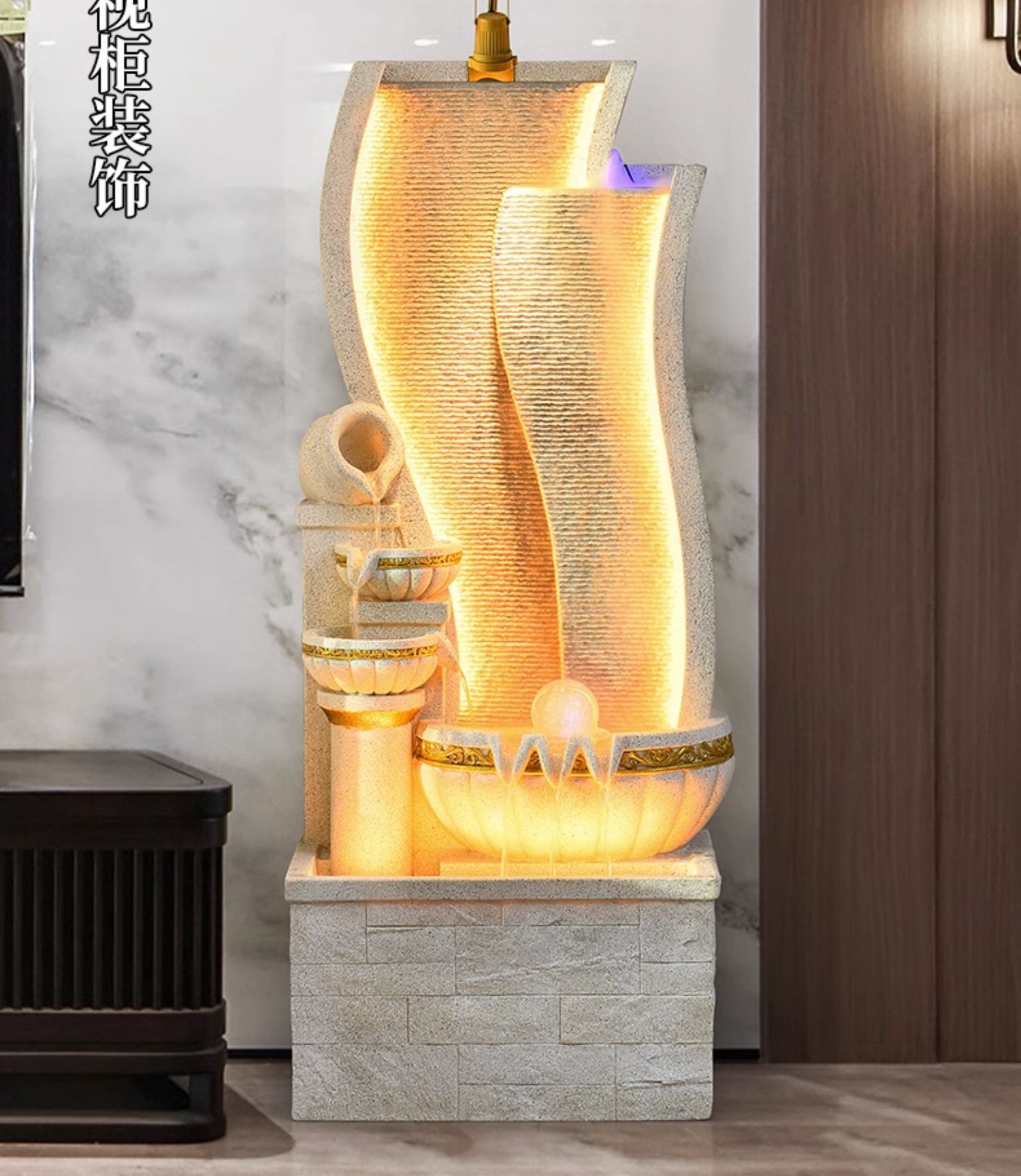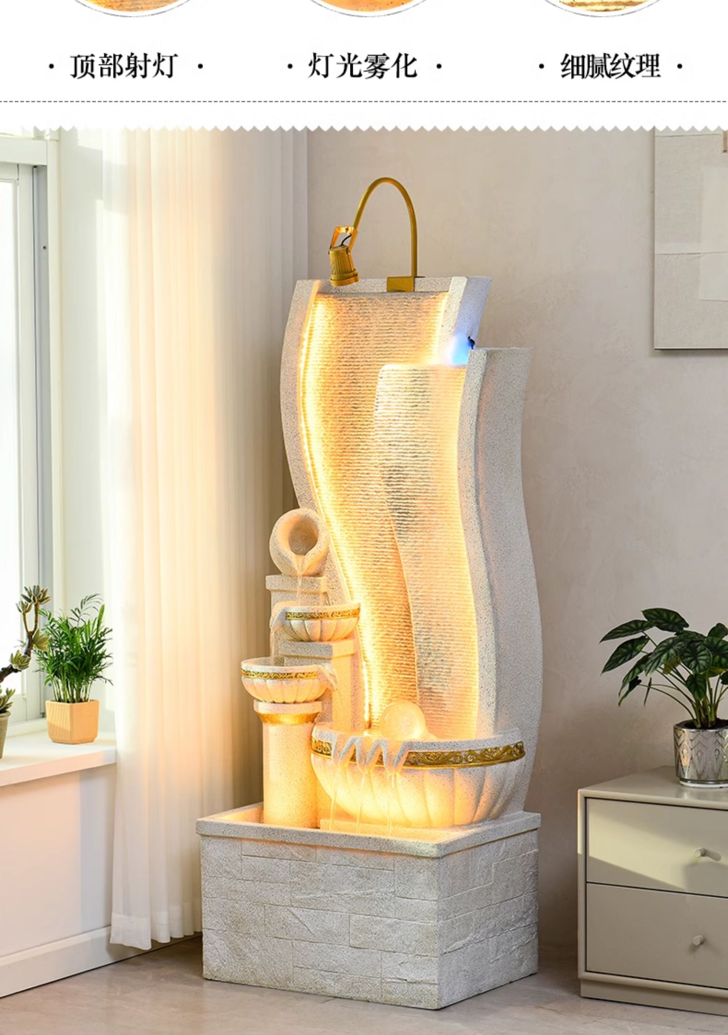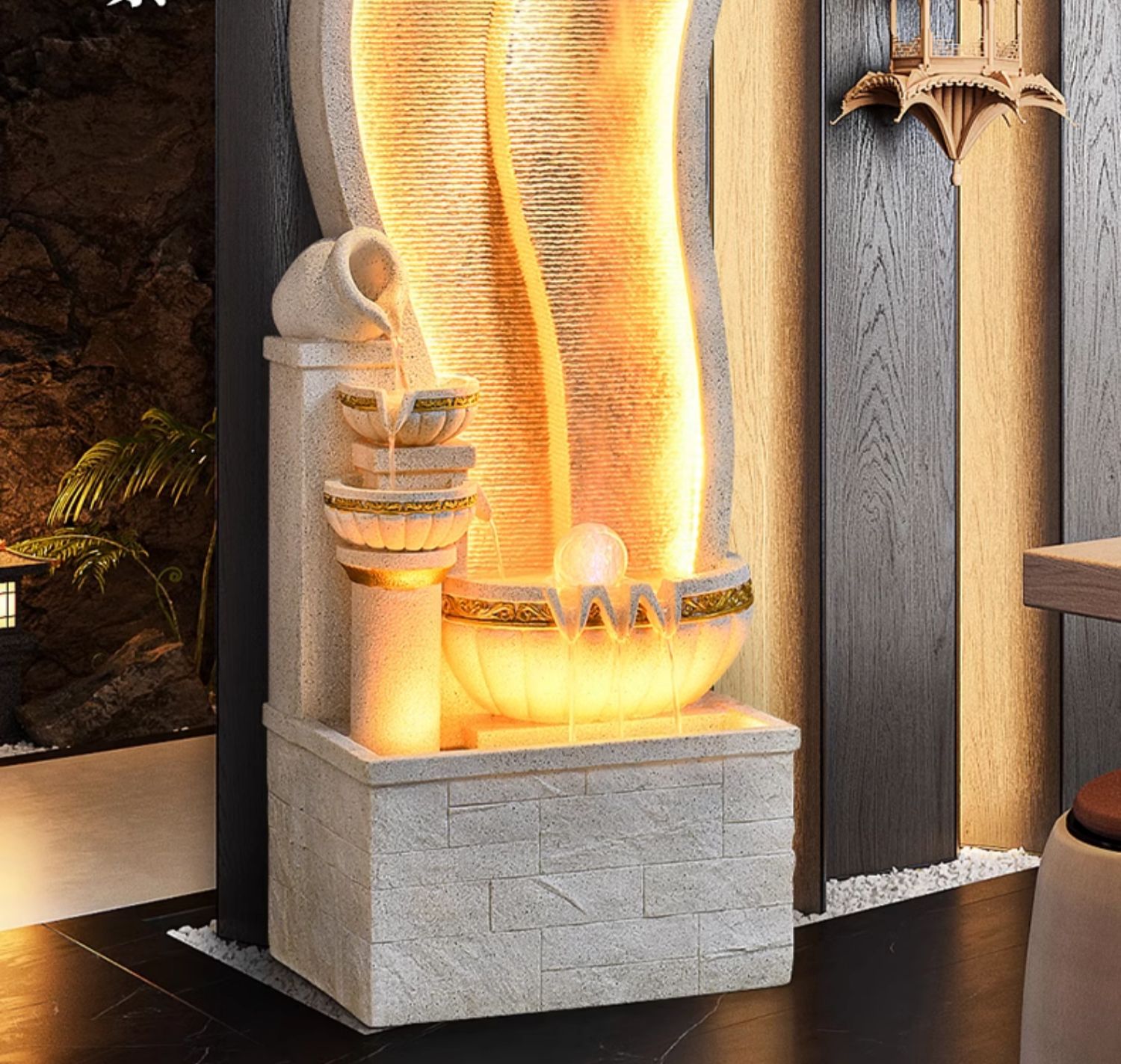 유럽식 흐르는 물 분수 가습기 거실 입구 바닥 바위 장식 실내 빛 고급 순환 물 풍경