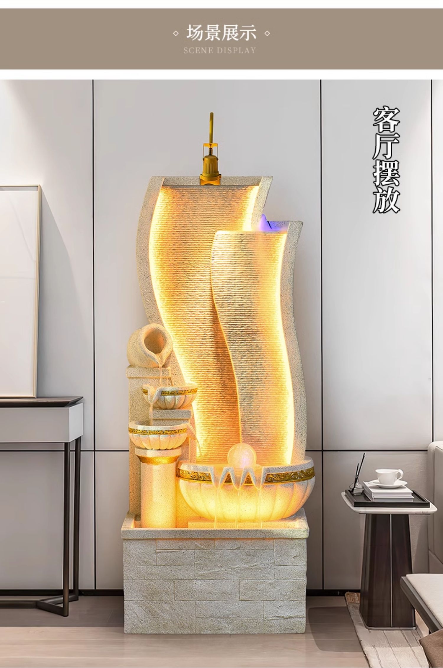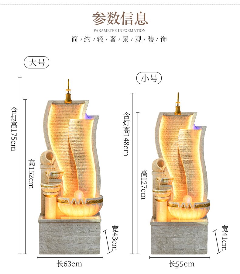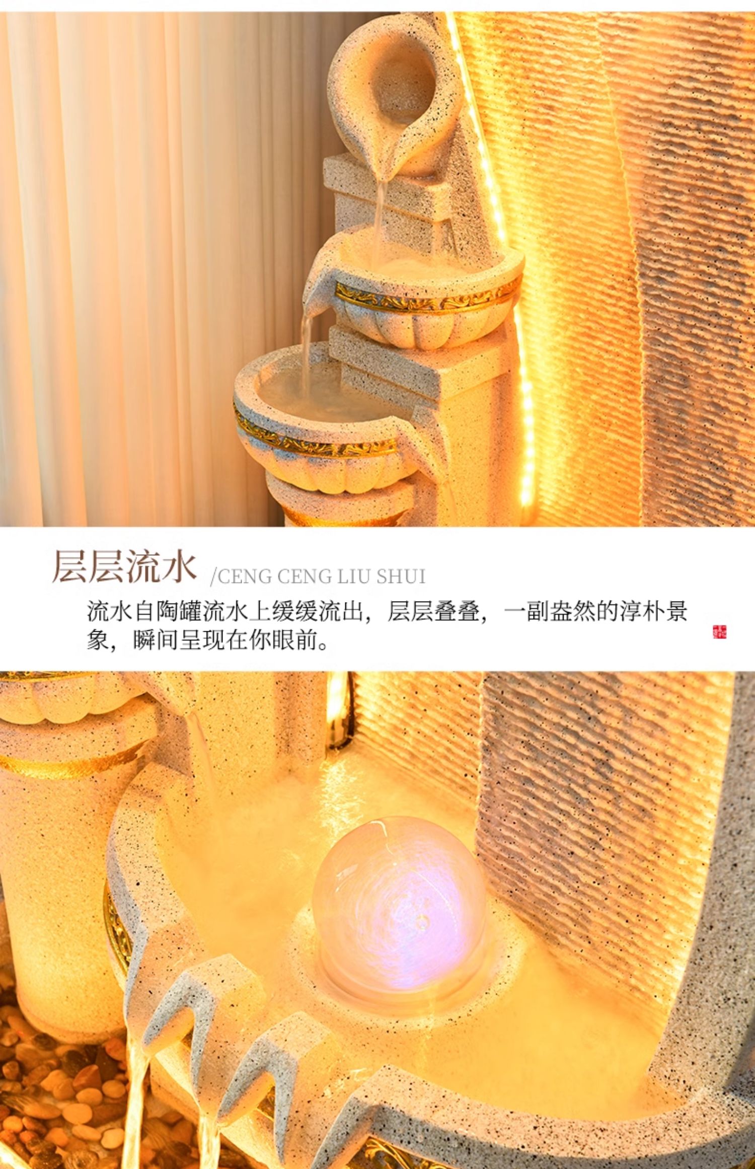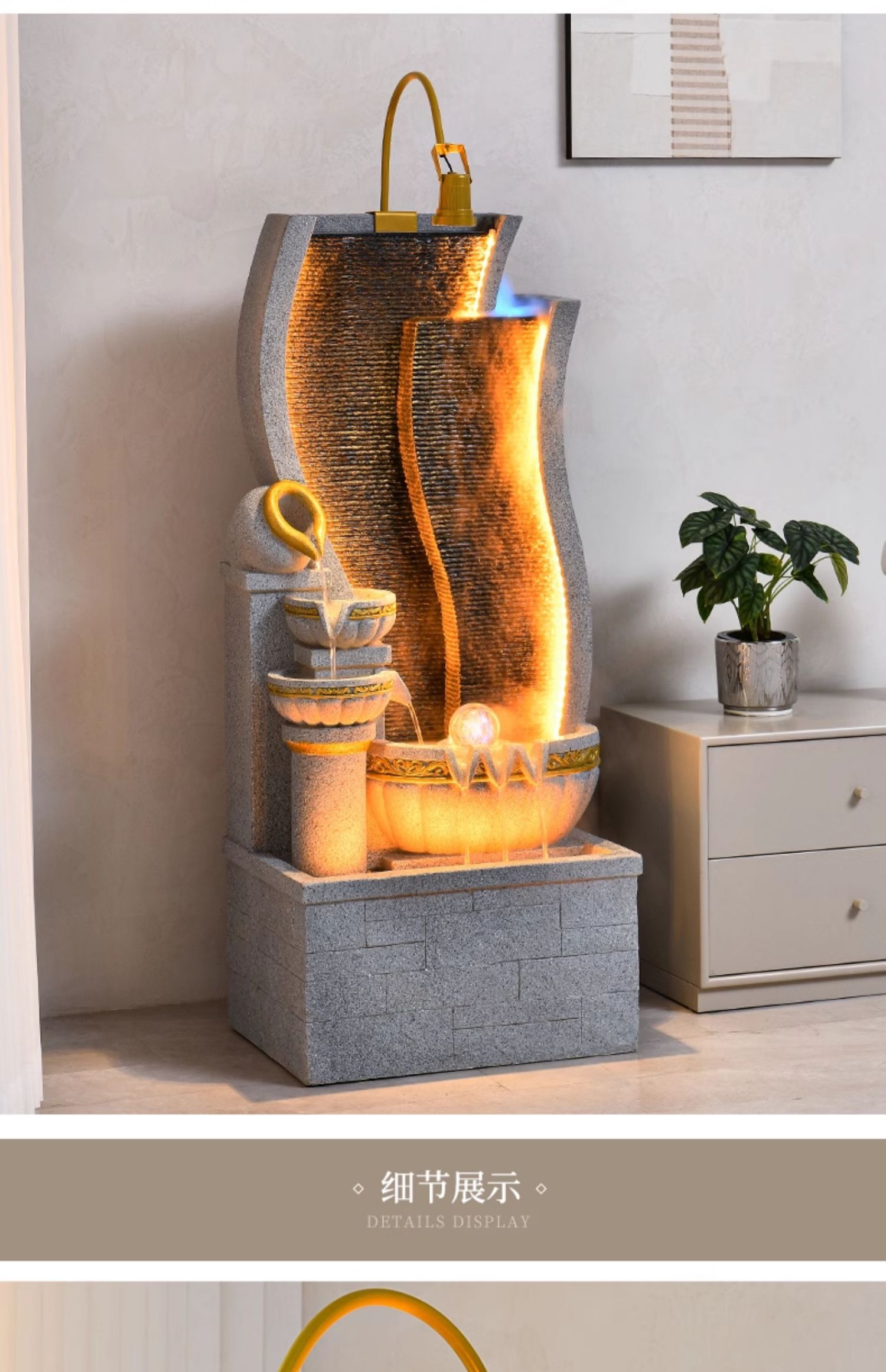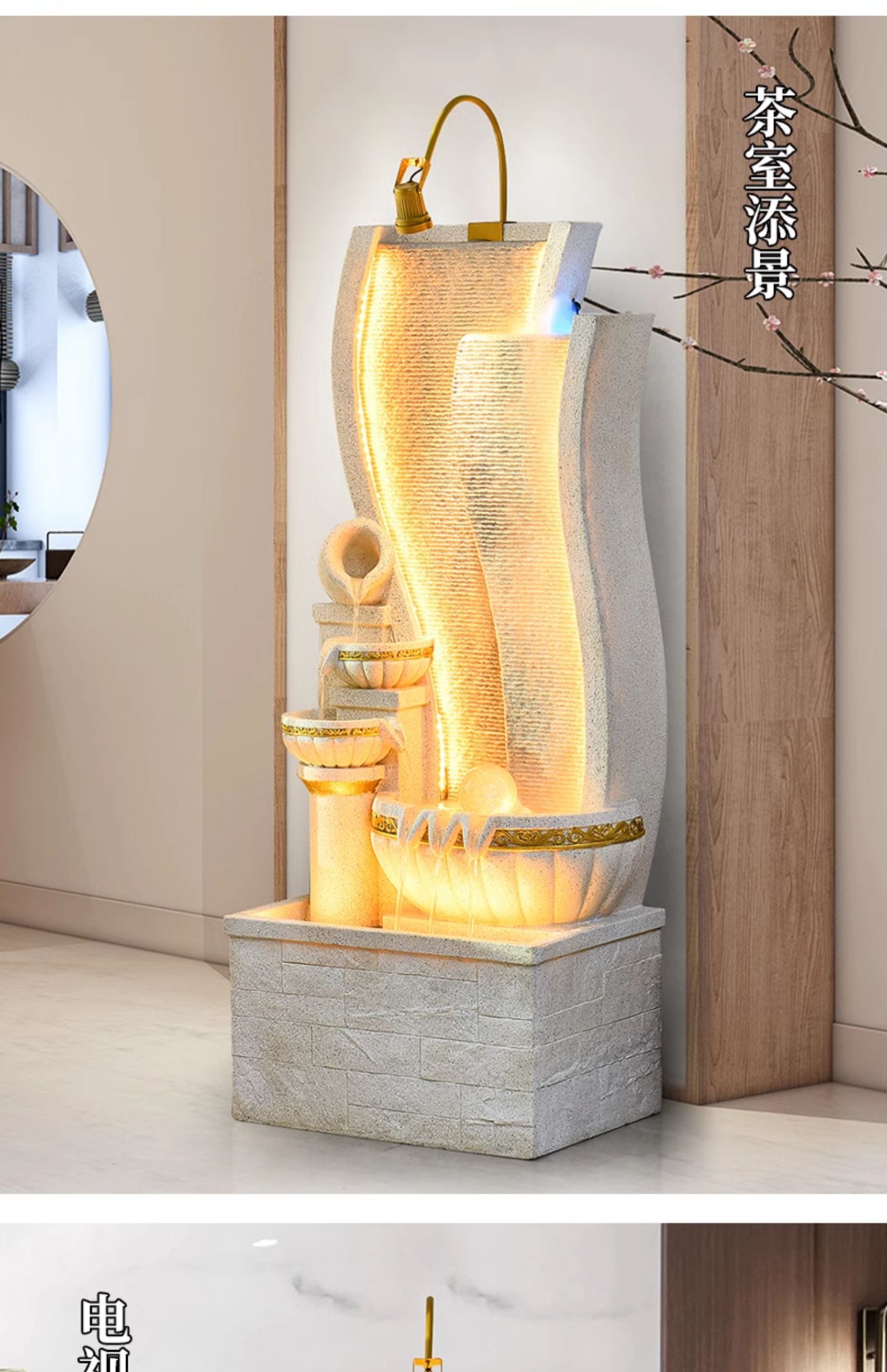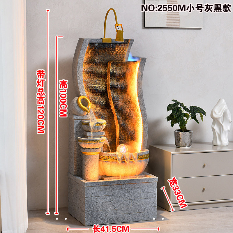유럽식 흐르는 물 분수 가습기 거실 입구 바닥 바위 장식 실내 빛 고급 순환 물 풍경