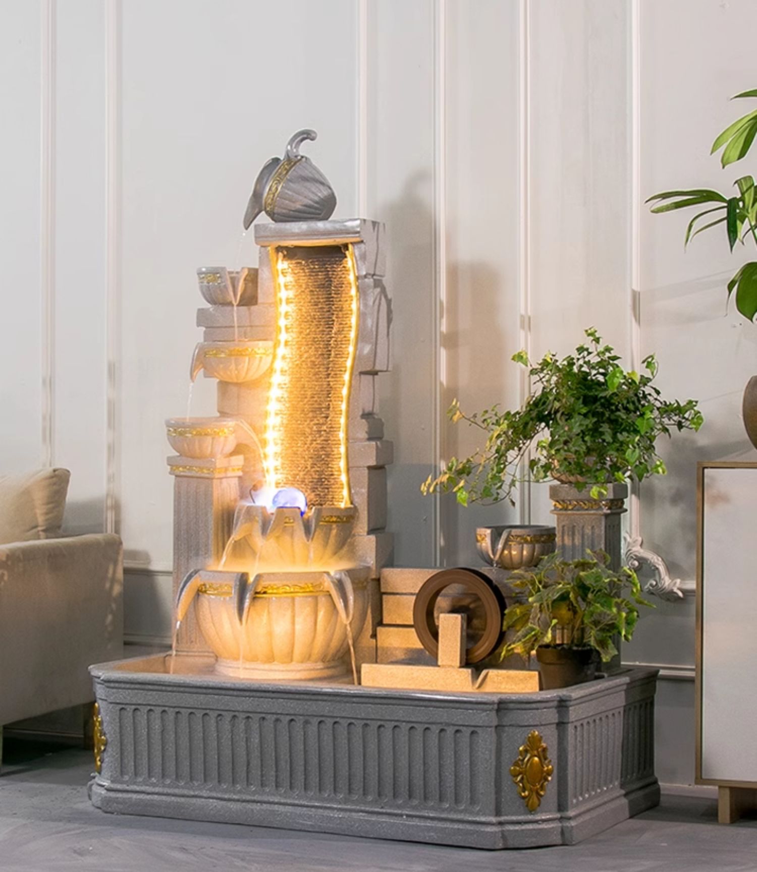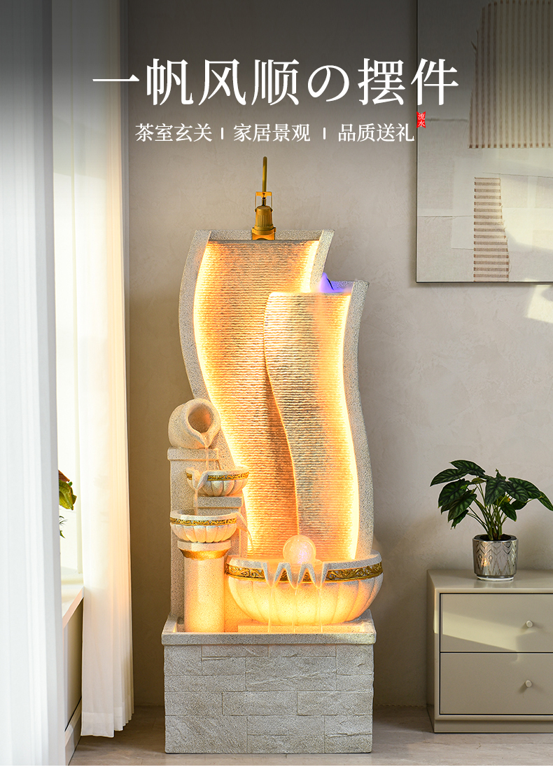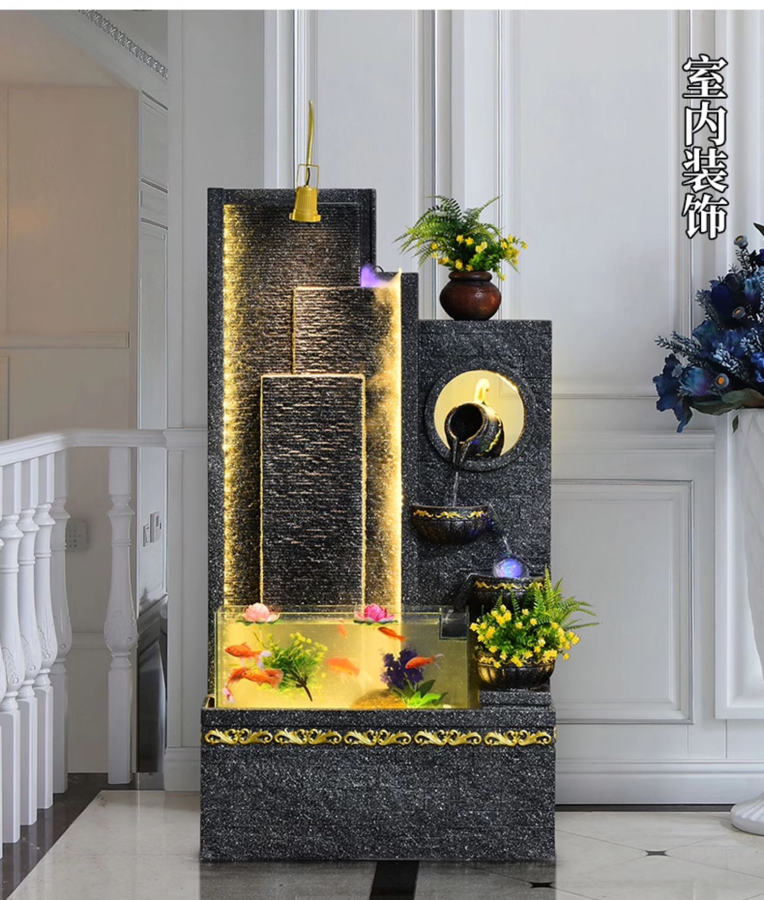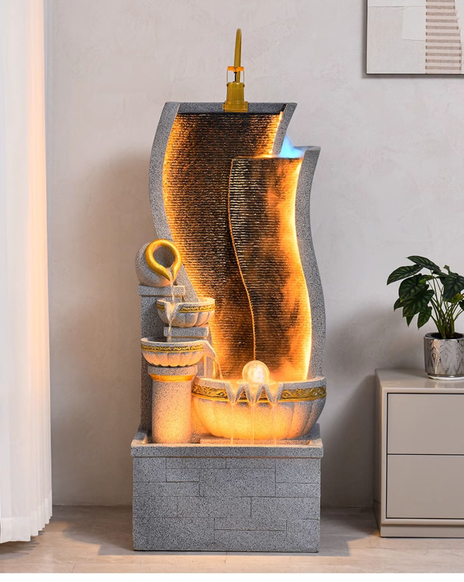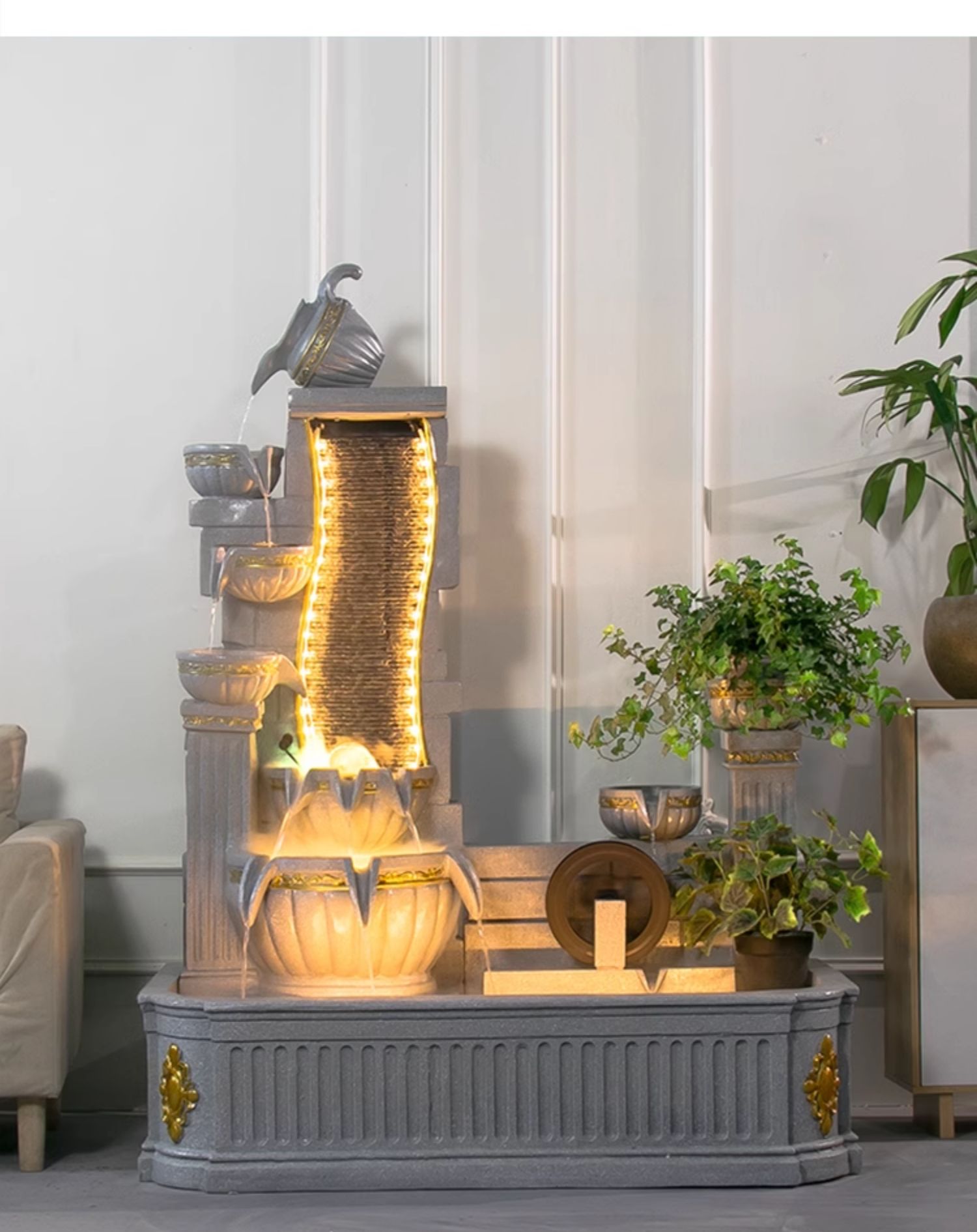 유럽식 흐르는 물 분수 가습기 거실 입구 바닥 바위 장식 실내 빛 고급 순환 물 풍경