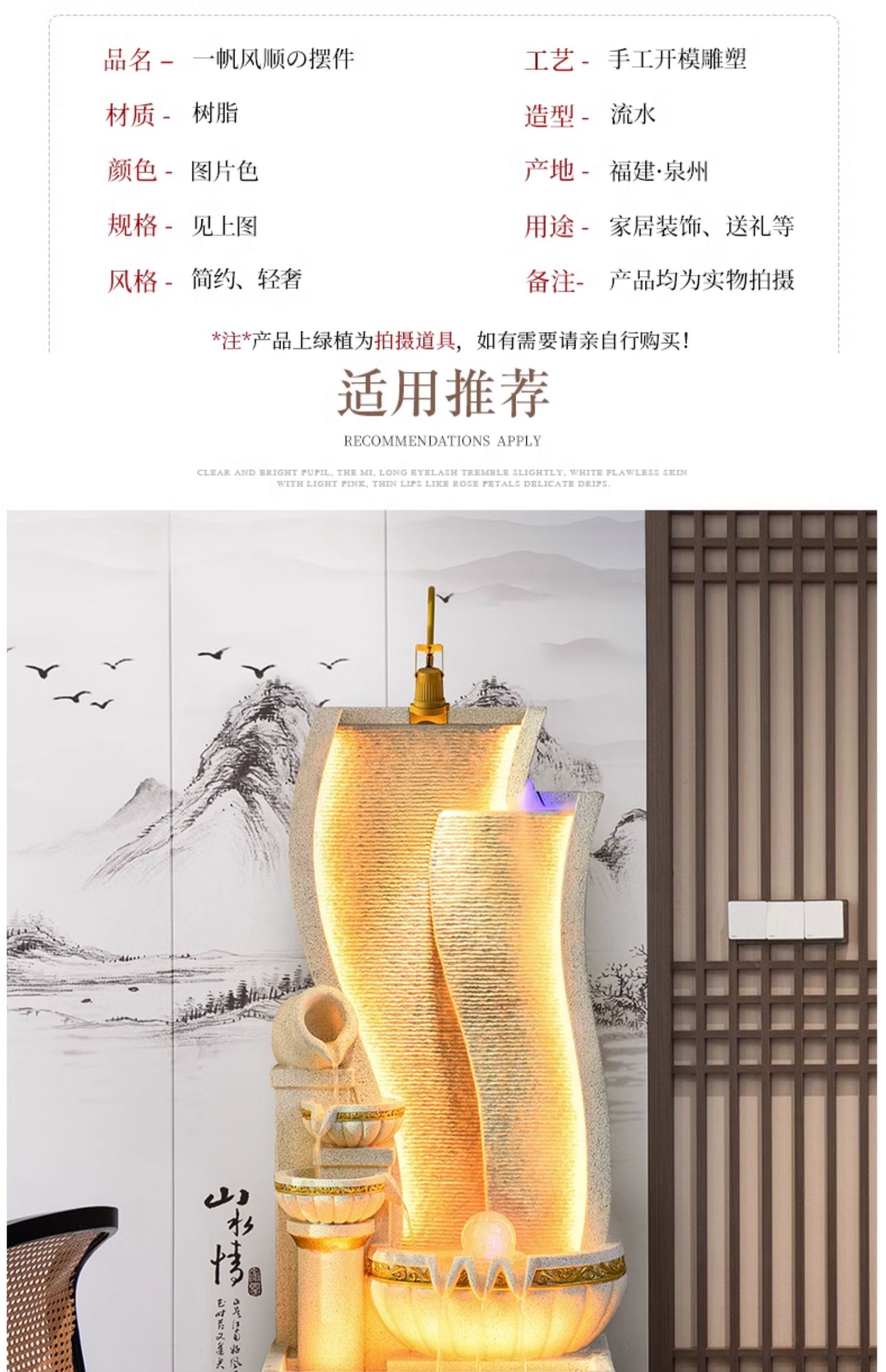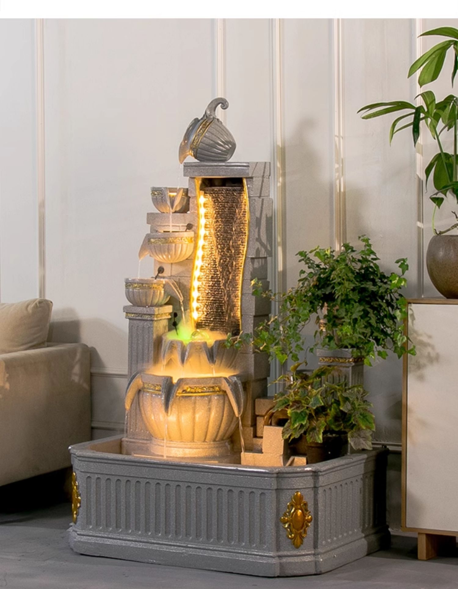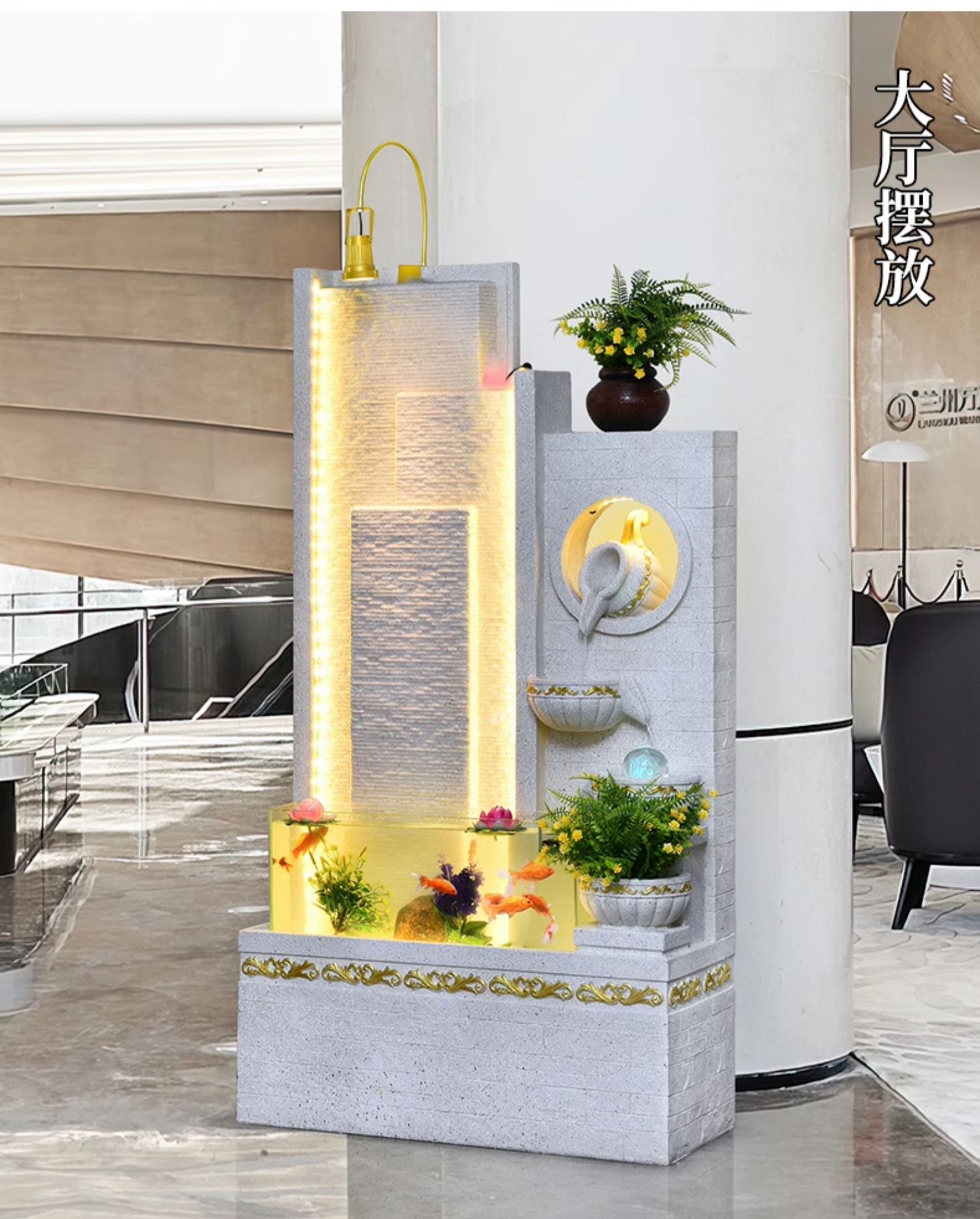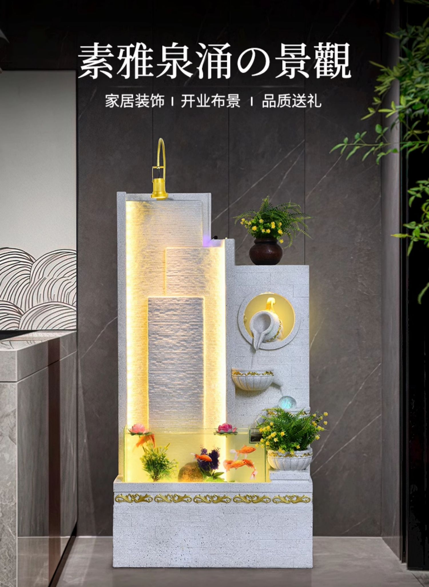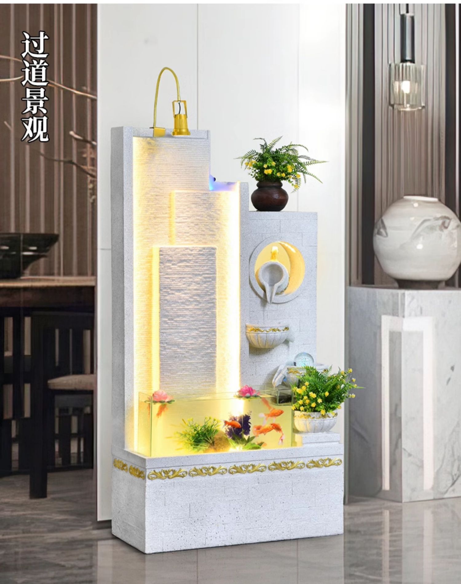 유럽식 흐르는 물 분수 가습기 거실 입구 바닥 바위 장식 실내 빛 고급 순환 물 풍경