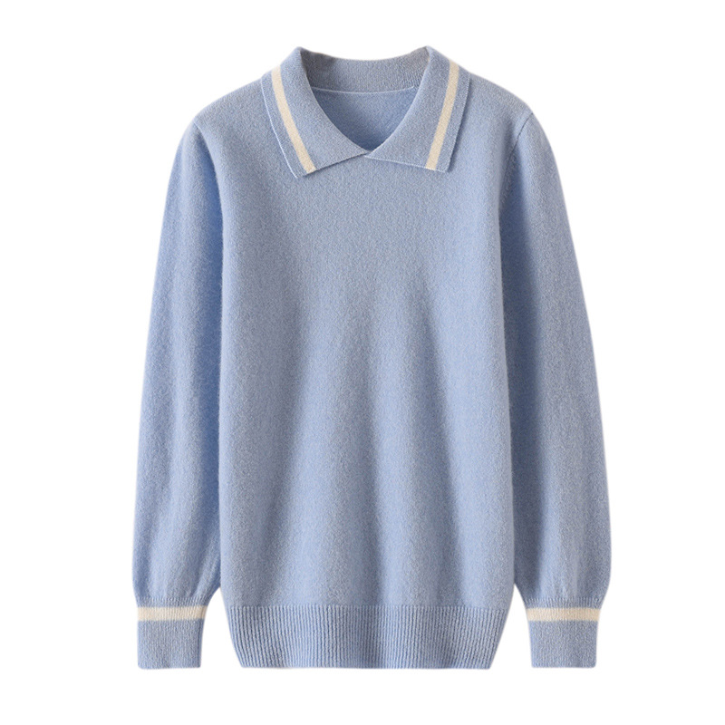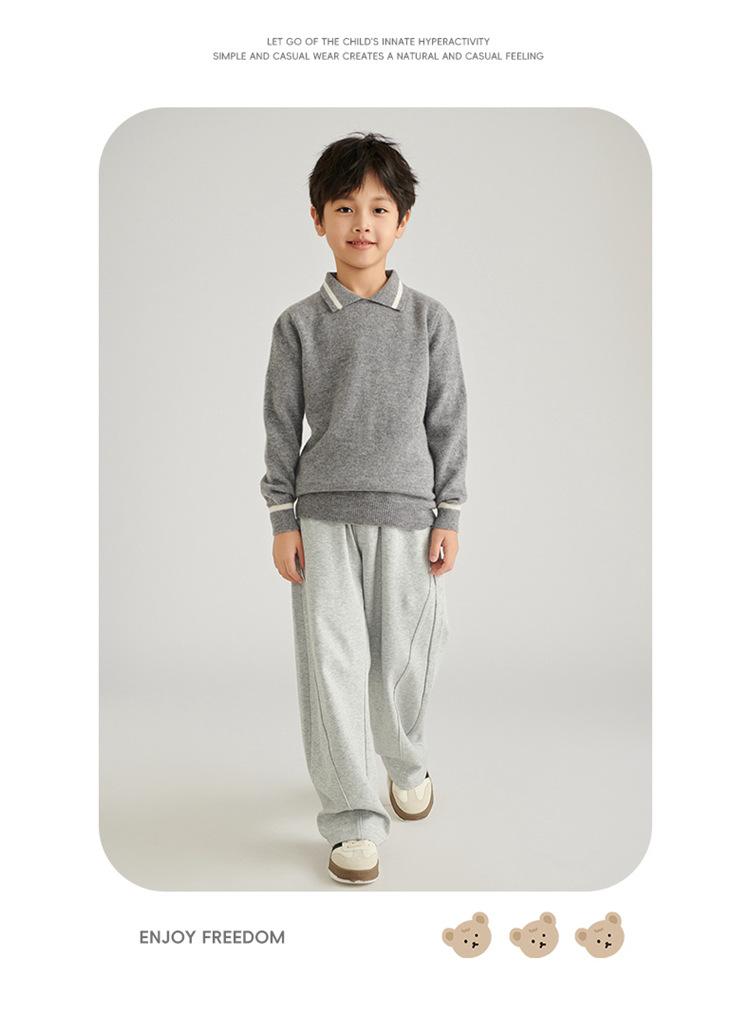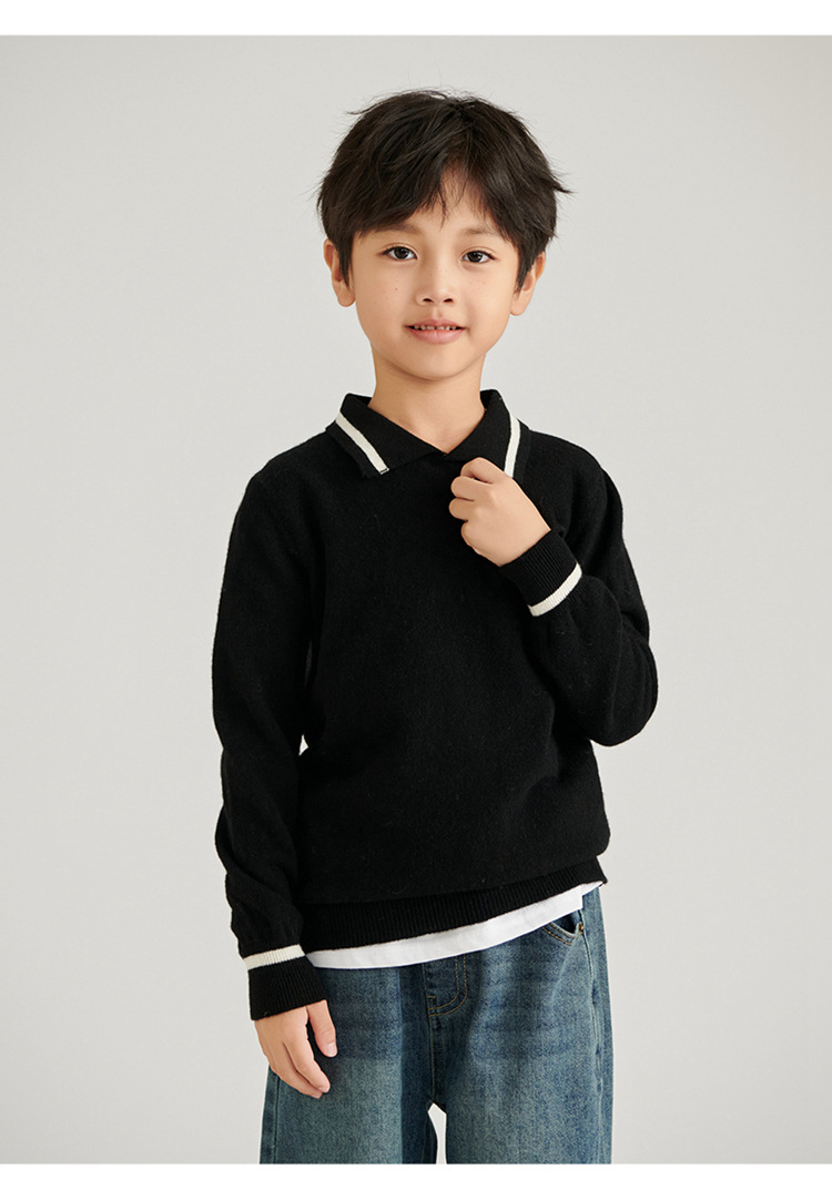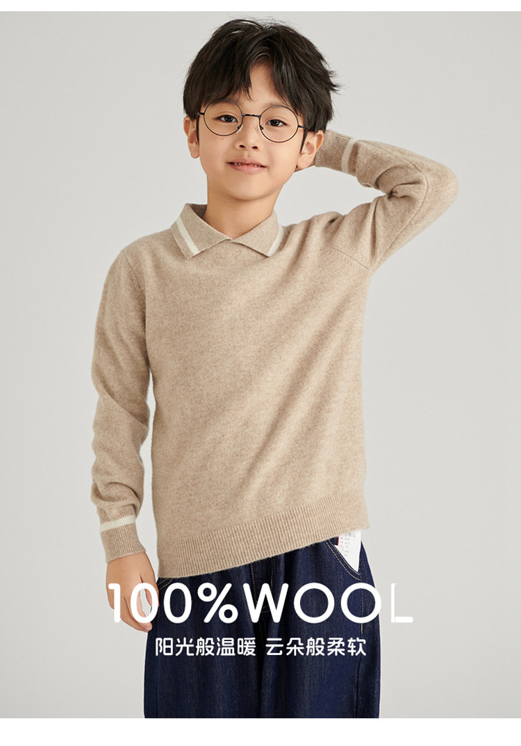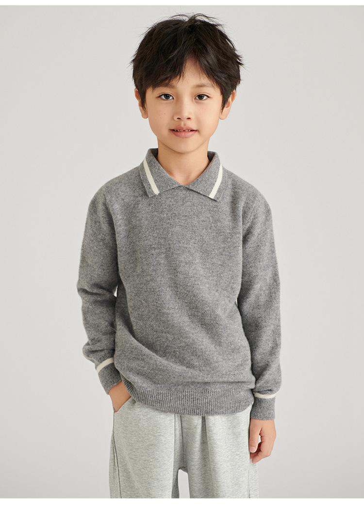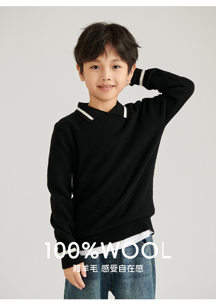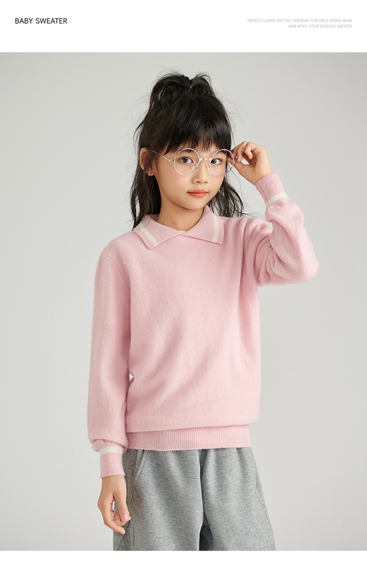 100 순수 양모 스웨터 남성과 여성의 중간 및 큰 어린이 스웨터 솔리드 컬러 베이비 스웨터 느슨한 옷깃 POLO 칼라 베이스 셔츠