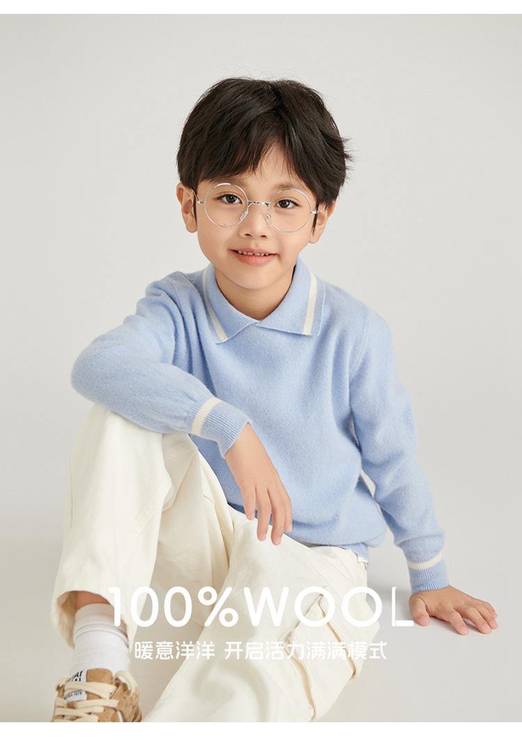 100 순수 양모 스웨터 남성과 여성의 중간 및 큰 어린이 스웨터 솔리드 컬러 베이비 스웨터 느슨한 옷깃 POLO 칼라 베이스 셔츠스토어 가기