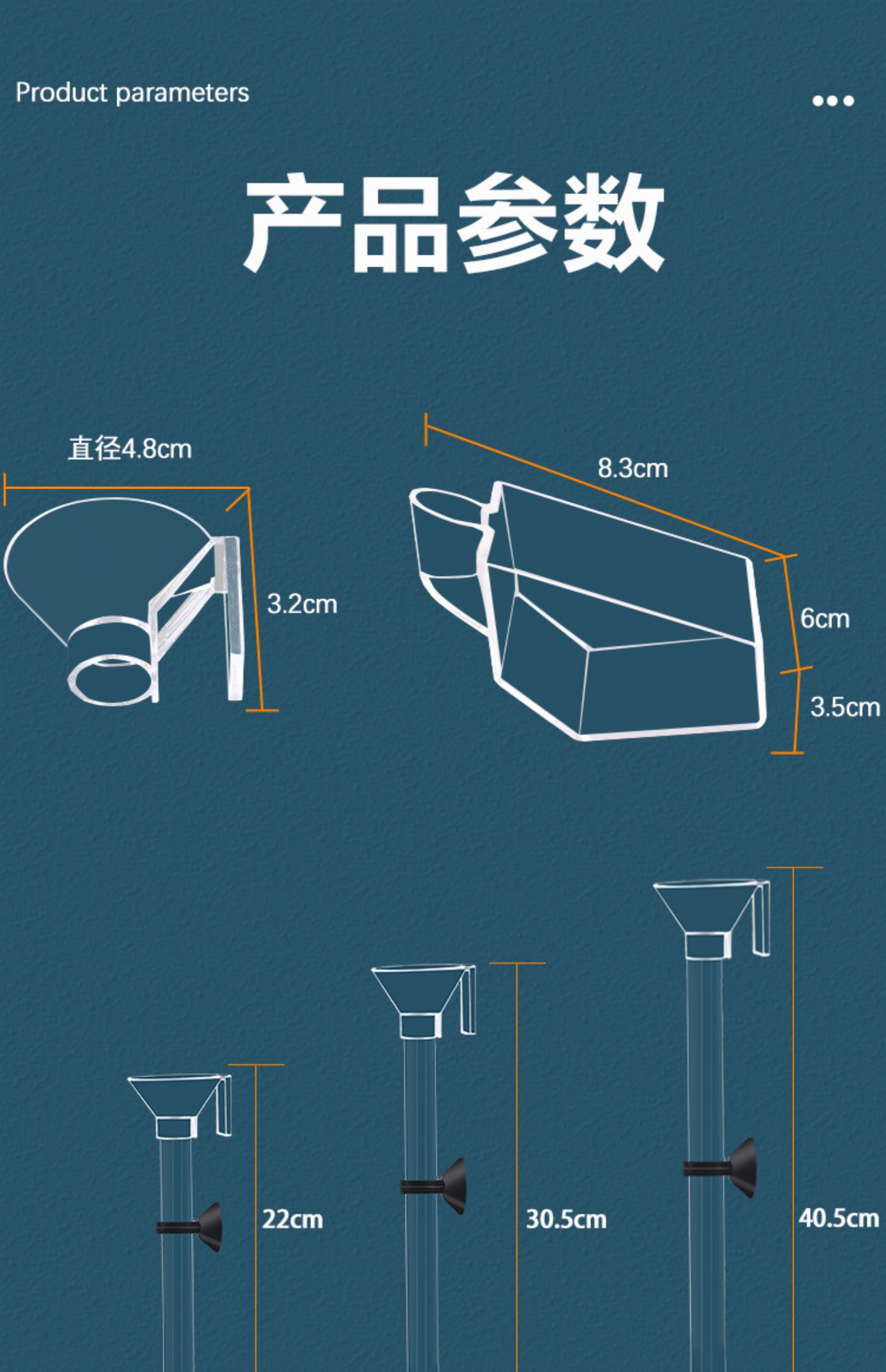 물고기 탱크 피더 공급 튜브 물고기 음식 금붕어 새우 작은 공급 튜브 아크릴 먹이 물고기 싱크 작은 말