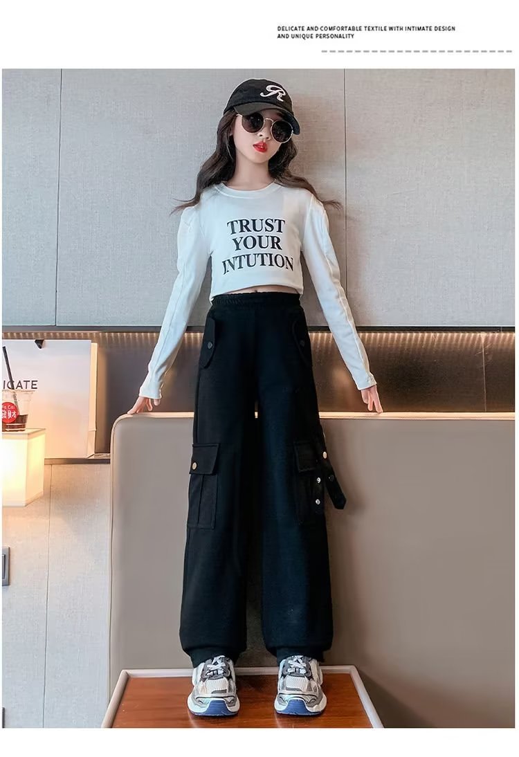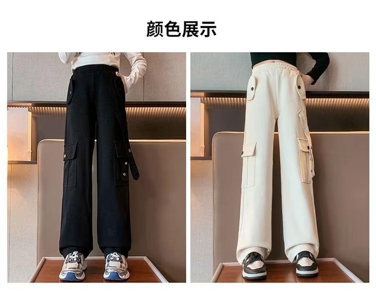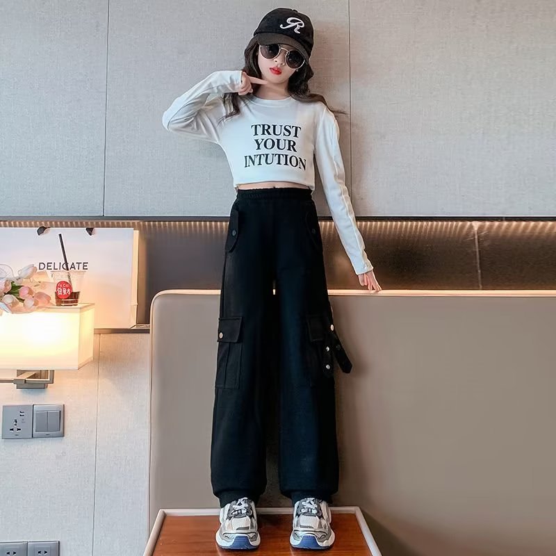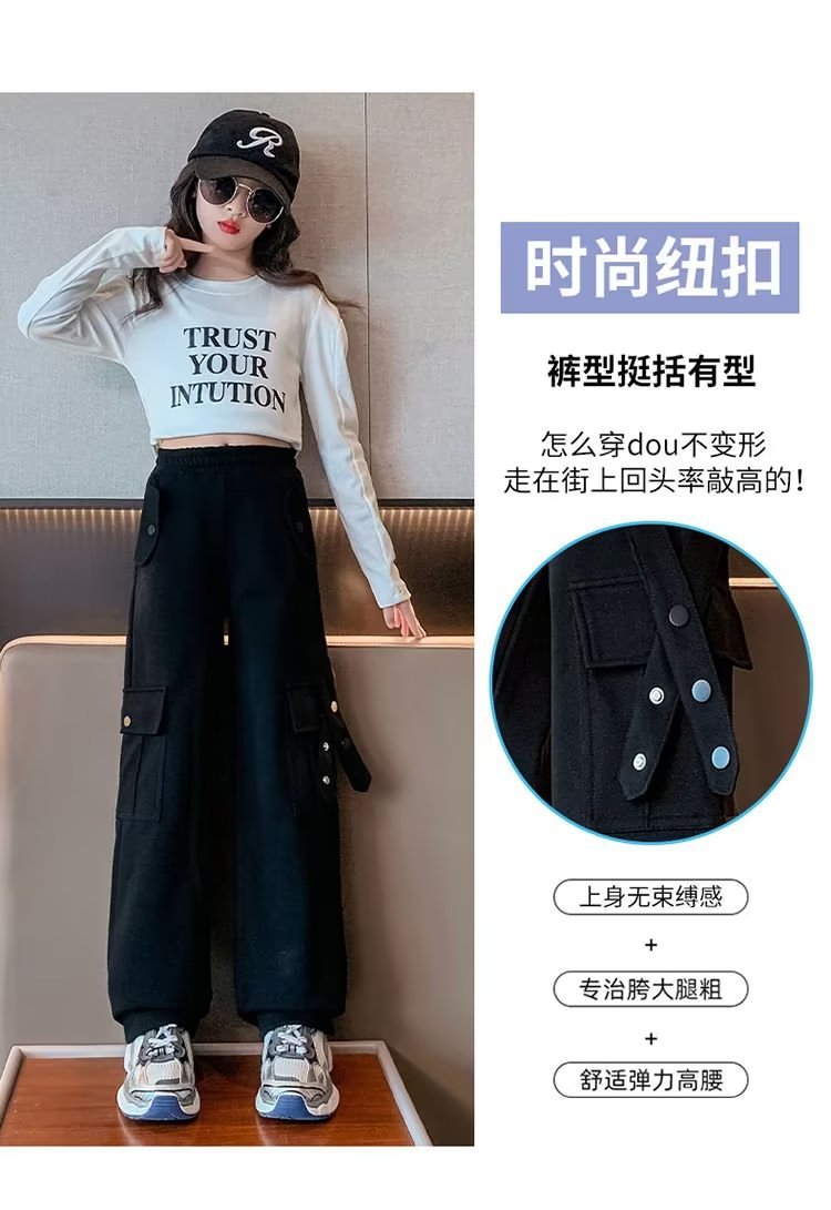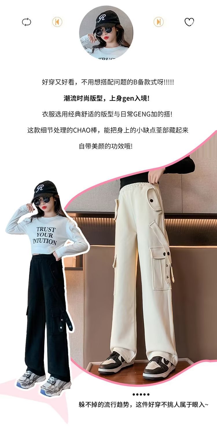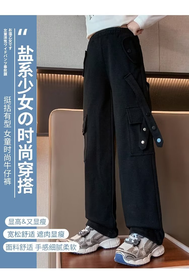 소녀 바지 봄과 가을 2023 새로운 가을 착용 대형 어린이 바지 캐주얼 와이드 다리 바지 가을 미국 스타일 어린이 쿠션 바지