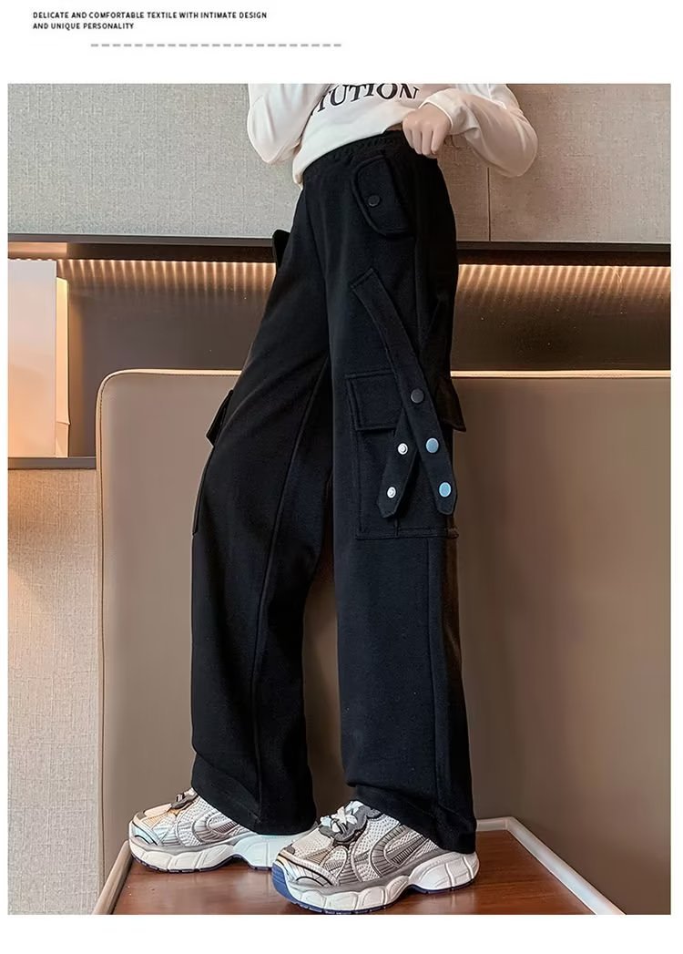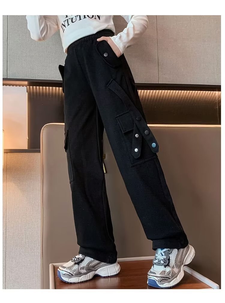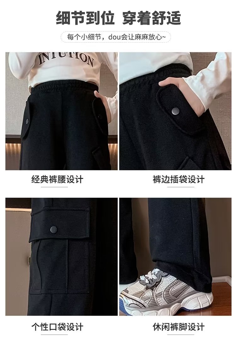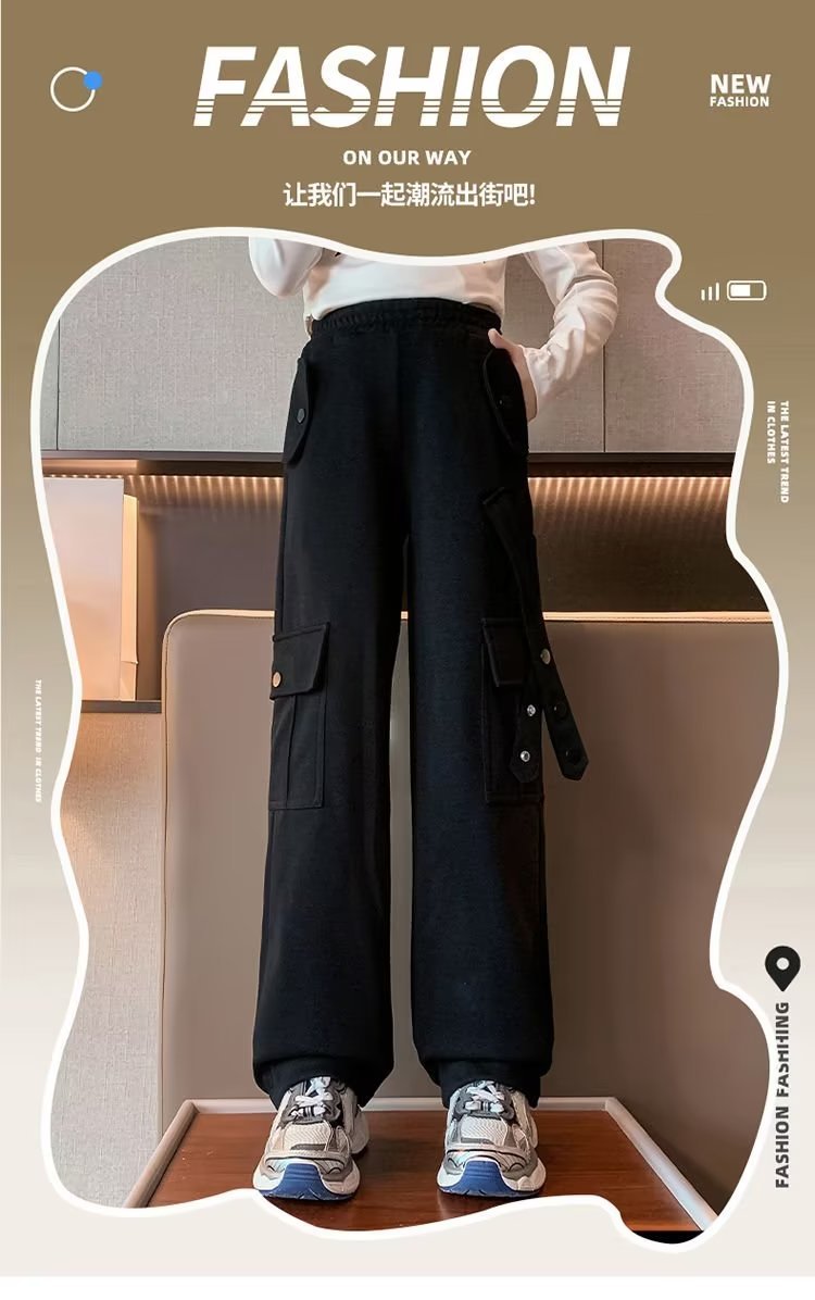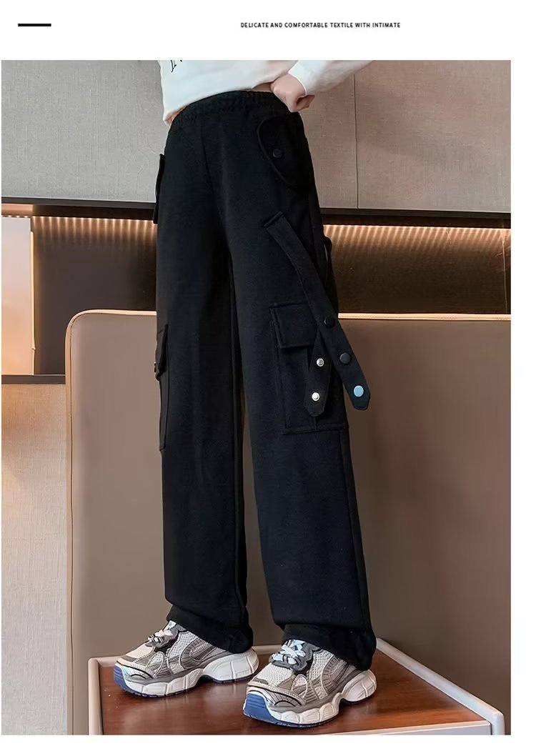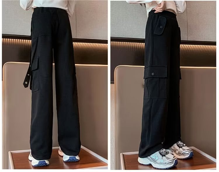 소녀 바지 봄과 가을 2023 새로운 가을 착용 대형 어린이 바지 캐주얼 와이드 다리 바지 가을 미국 스타일 어린이 쿠션 바지