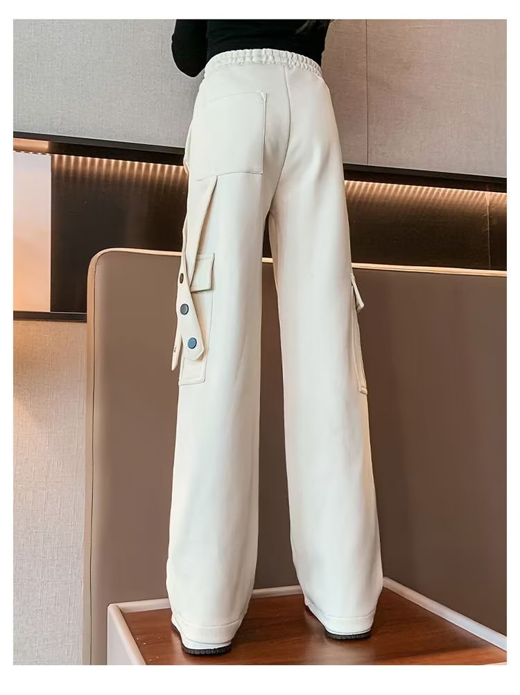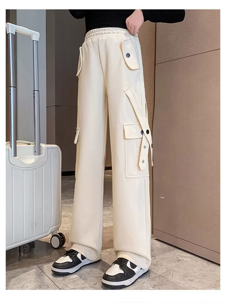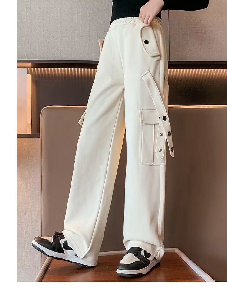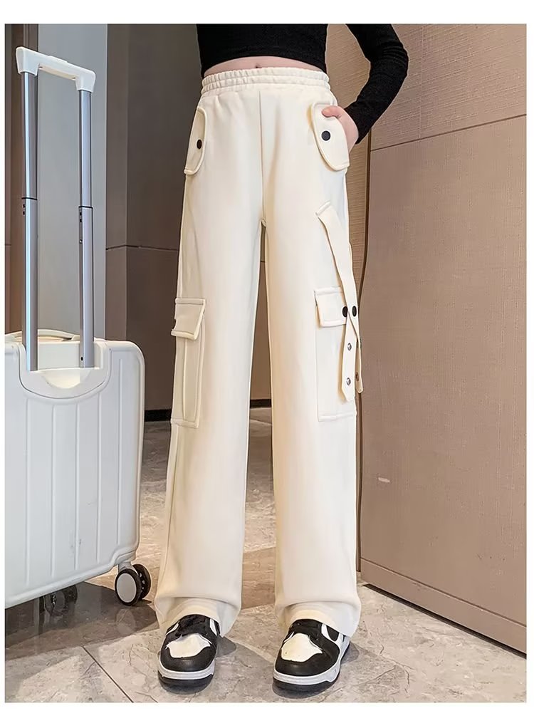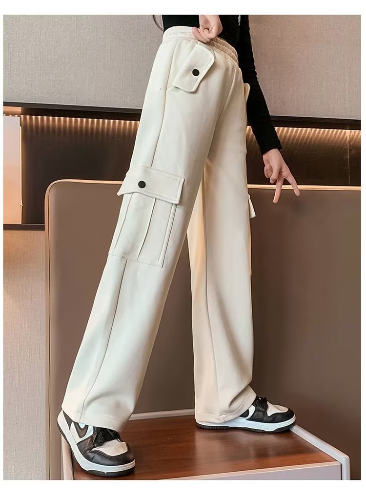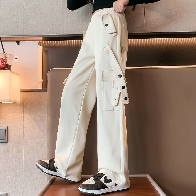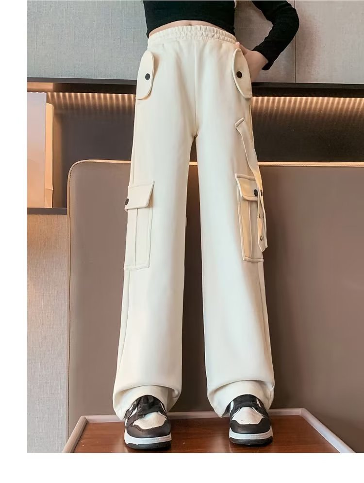 소녀 바지 봄과 가을 2023 새로운 가을 착용 대형 어린이 바지 캐주얼 와이드 다리 바지 가을 미국 스타일 어린이 쿠션 바지