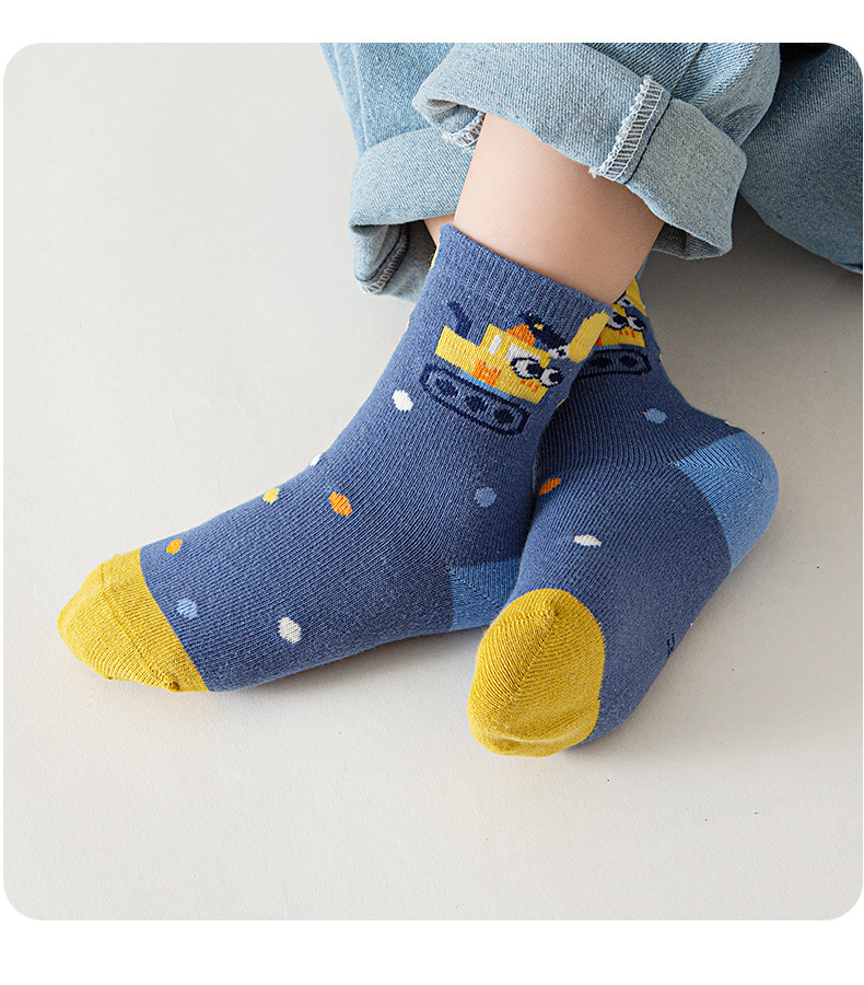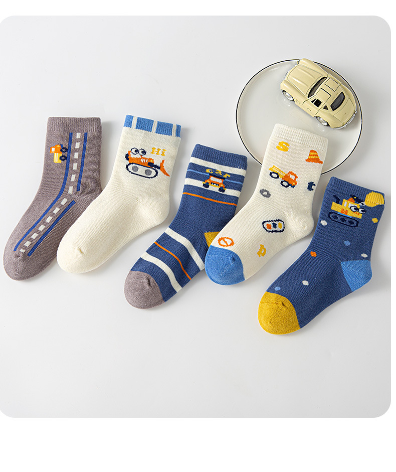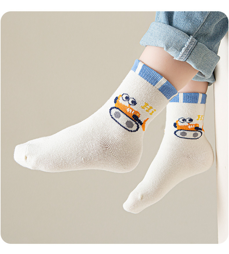 어린이용 면양말, 남아 여아용 가을 유행 양말, 남아용 만화 캐릭터 귀여운 무봉제 중목 양말, 사계절용 긴 양말