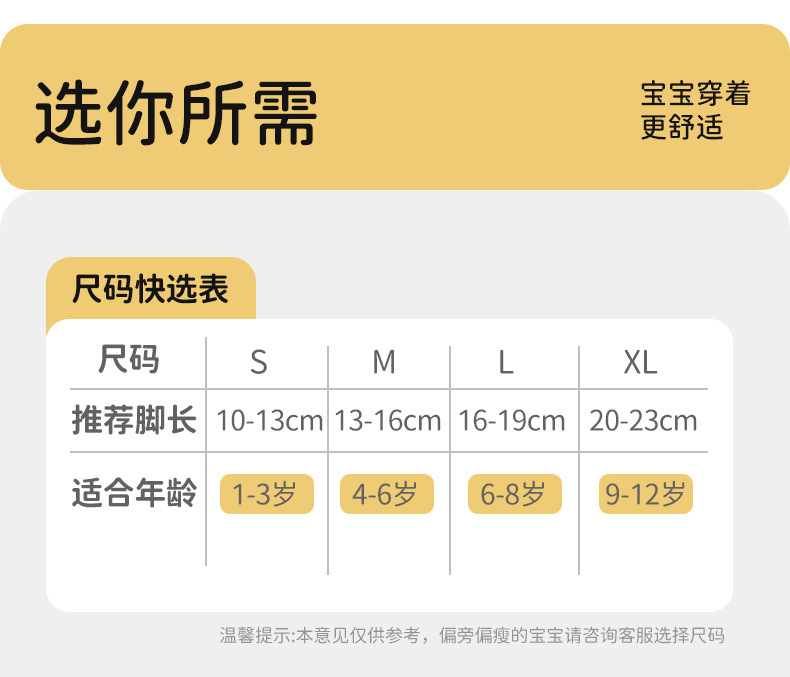 • S 사이즈의 권장 발 길이는 약 10-13cm입니다.