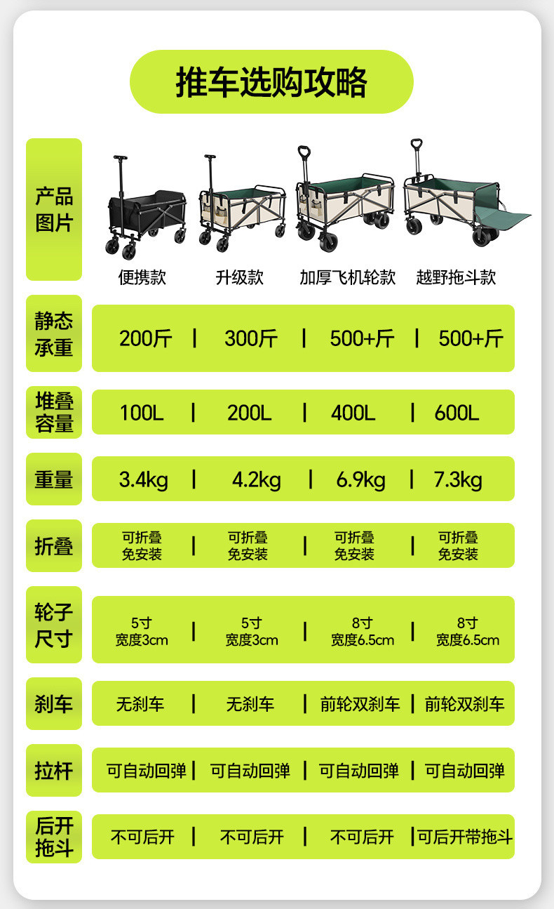 새로운 캠핑 캠핑 자동차 야외 트롤리 휴대용 캠핑 자동차 트롤리 스톨 자동차 접이식 대형 높은 탄소 강철