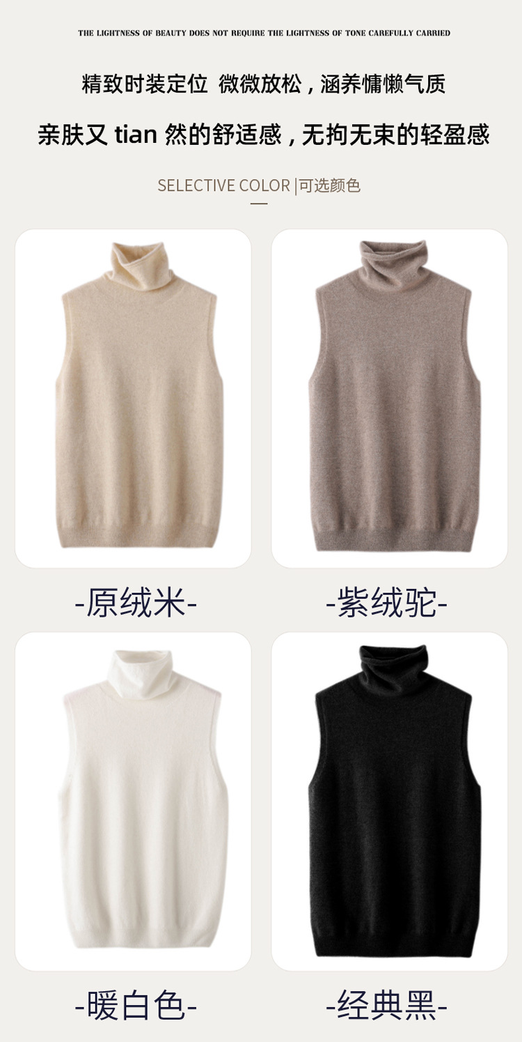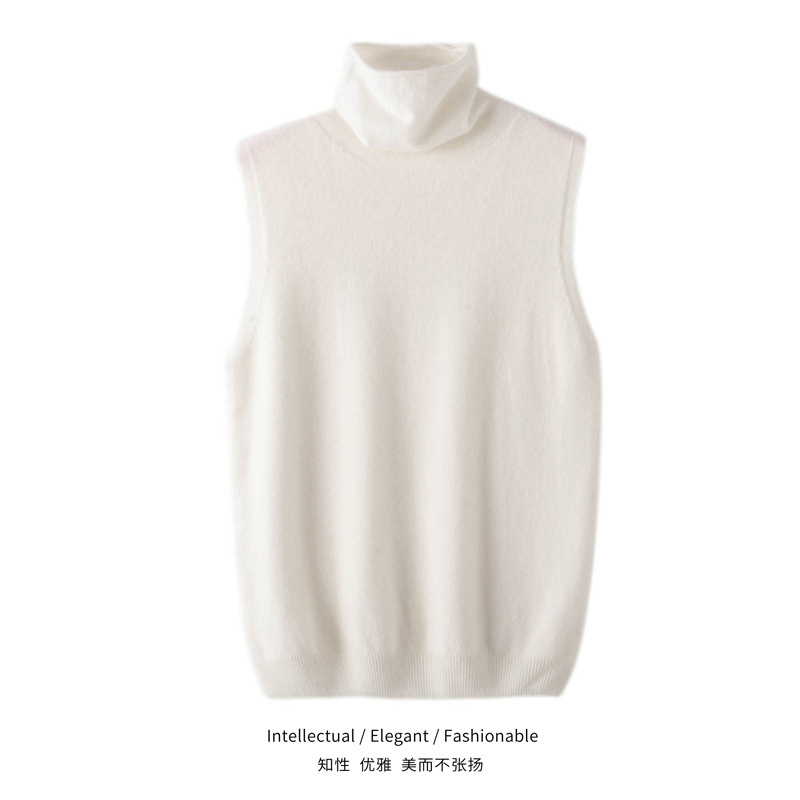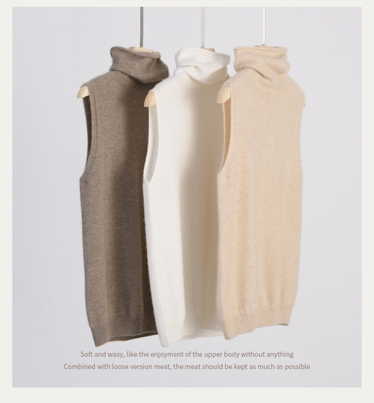 여성을위한 가을과 겨울 더미 목걸이 민소매 니트 조끼 100 양모베이스 작은 내부 슬림 핏 슬림 핏 스웨터 조끼스토어 가기