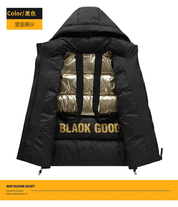 겨울 남자 블랙 골드 다운 재킷 느슨한 커플의 같은 후드 화이트 오리 다운 따뜻한 캐주얼 유행 재킷스토어 가기