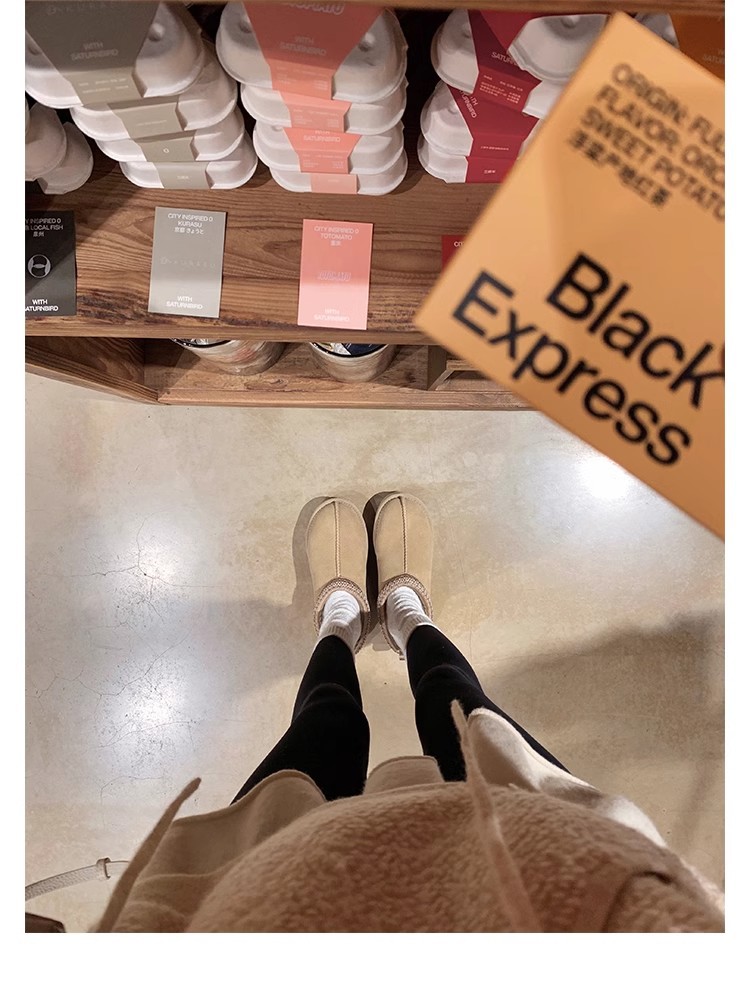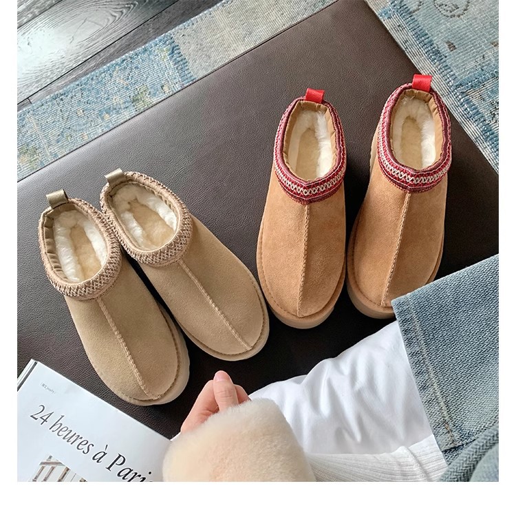 Cowhide 버전 ~ 재고 기모 두꺼운 로우 탑 코튼 신발 마오 마오 두꺼운 바닥 따뜻한 스노우 부츠 여성의 겨울스토어 가기