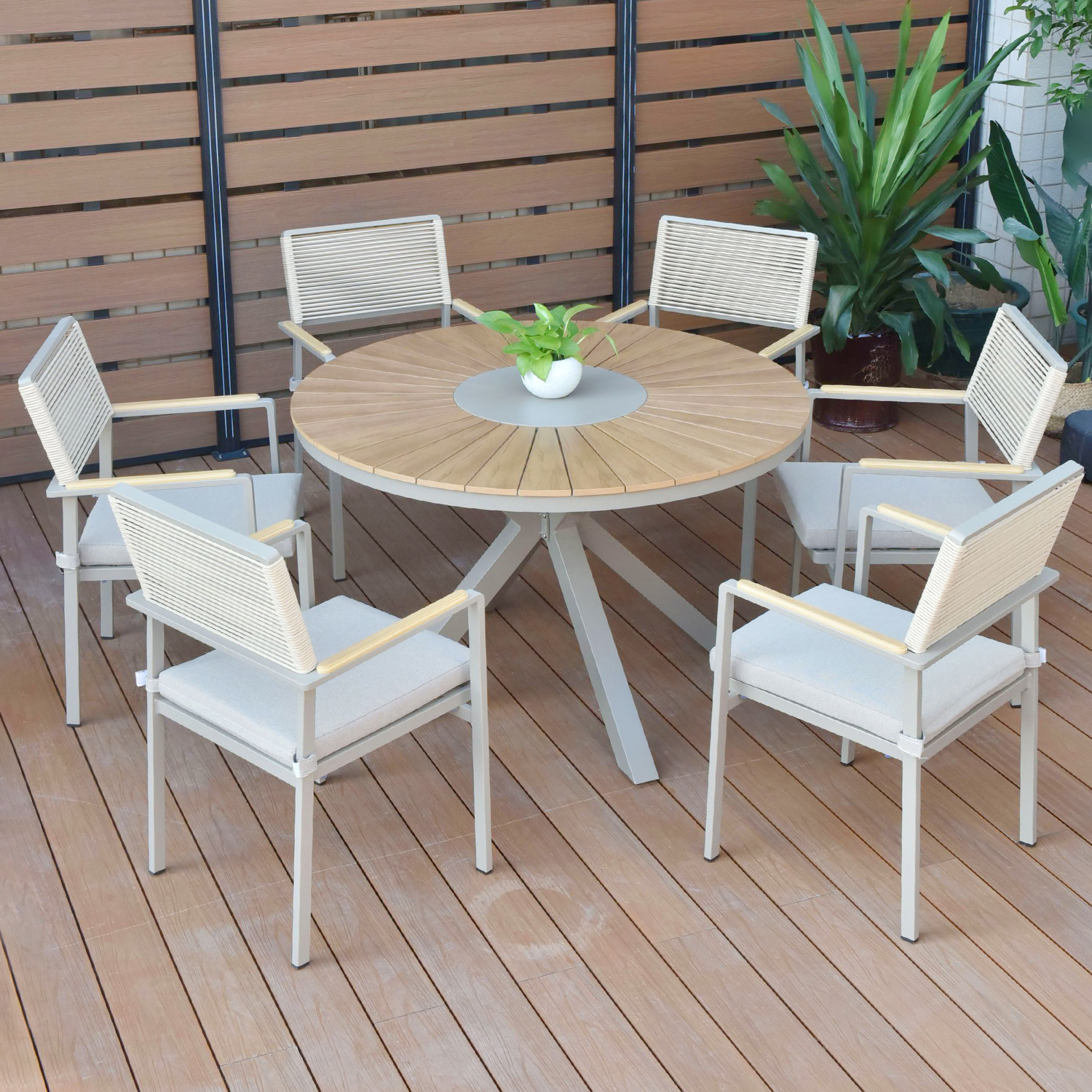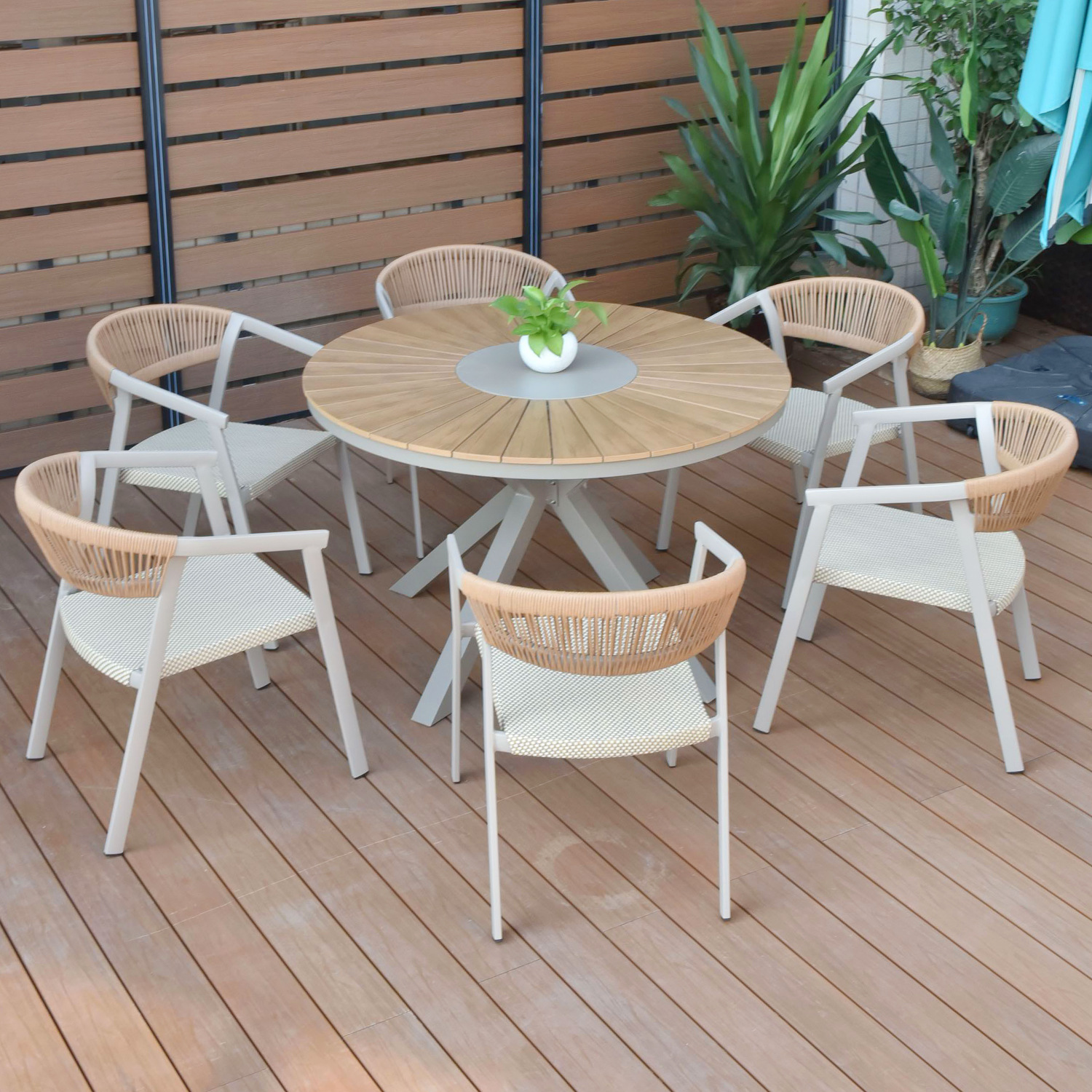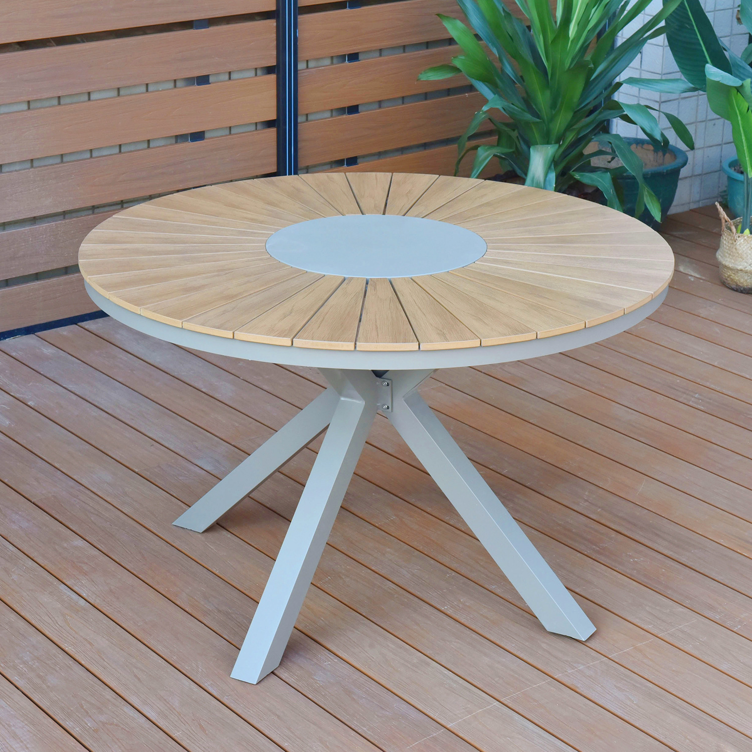 야외 테이블과 의자 조합 플라스틱 목재 알루미늄 합금 테이블 도매 방수 방청 상업 거리 해바라기 라운드 테이블