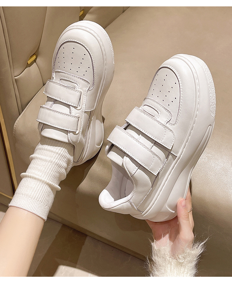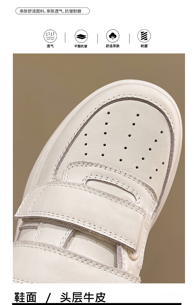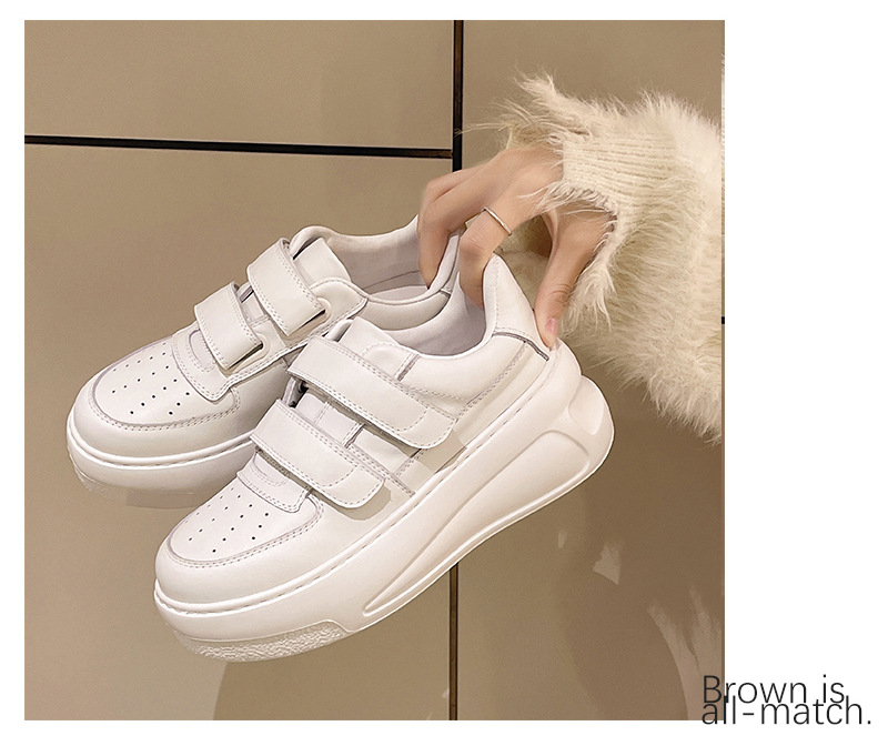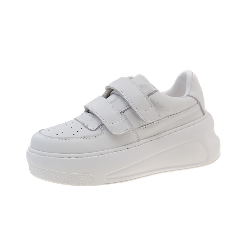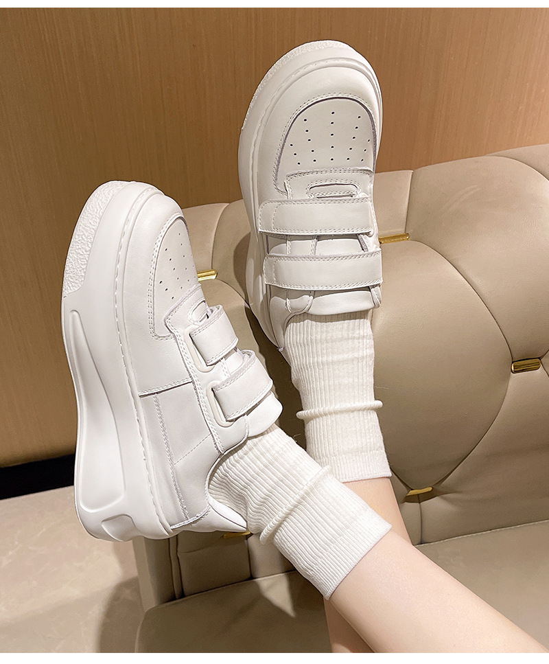 벨크로 두꺼운 밑창 캐주얼 화이트 슈즈 여성용 2026 봄 신상품 천연 소가죽 운동화 내외부 모두 천연 가죽 여성화스토어 가기