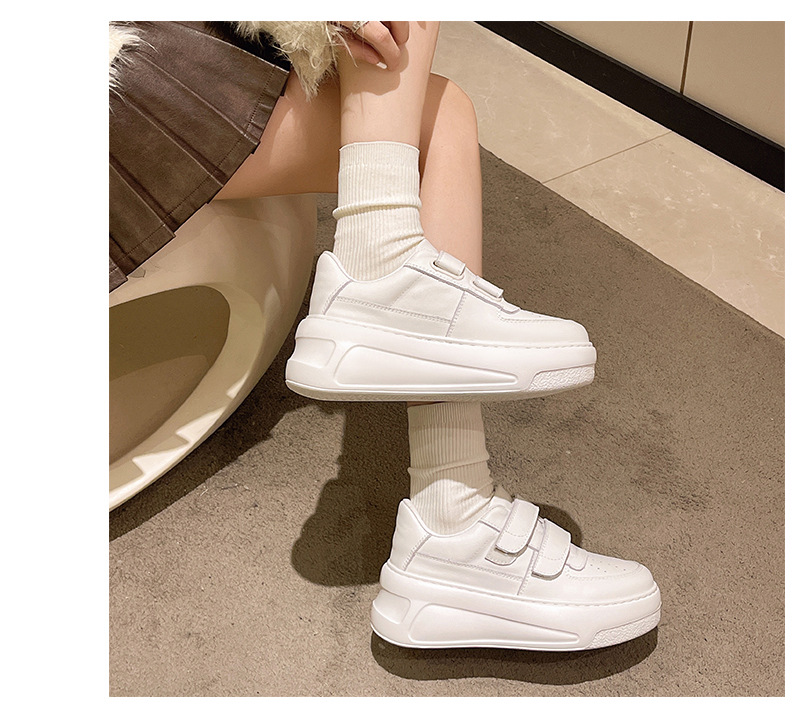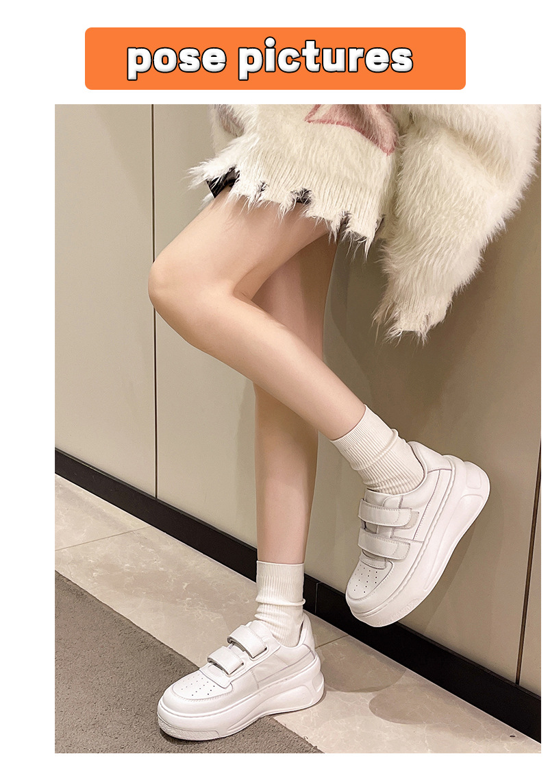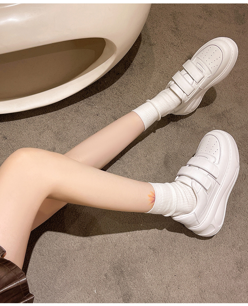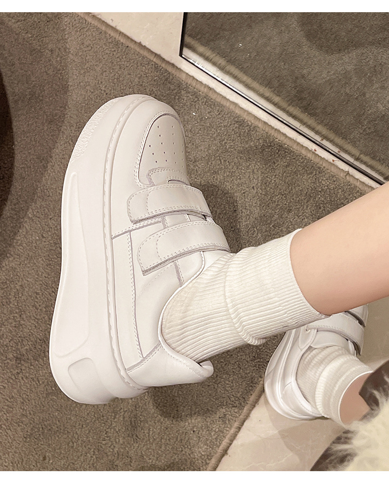 벨크로 두꺼운 밑창 캐주얼 화이트 슈즈 여성용 2026 봄 신상품 천연 소가죽 운동화 내외부 모두 천연 가죽 여성화스토어 가기