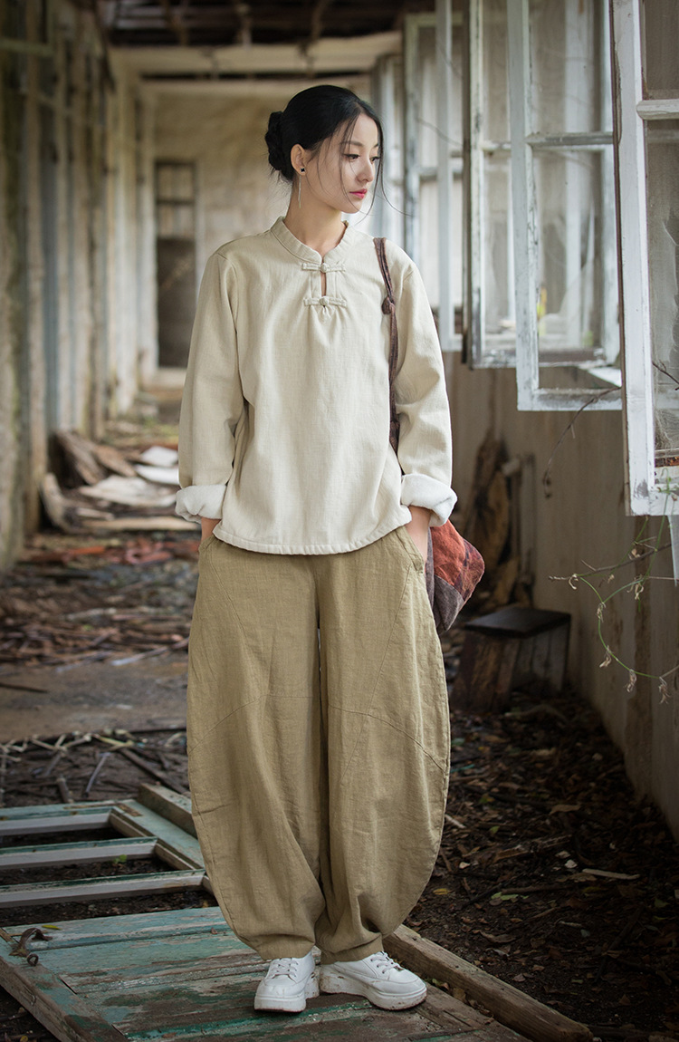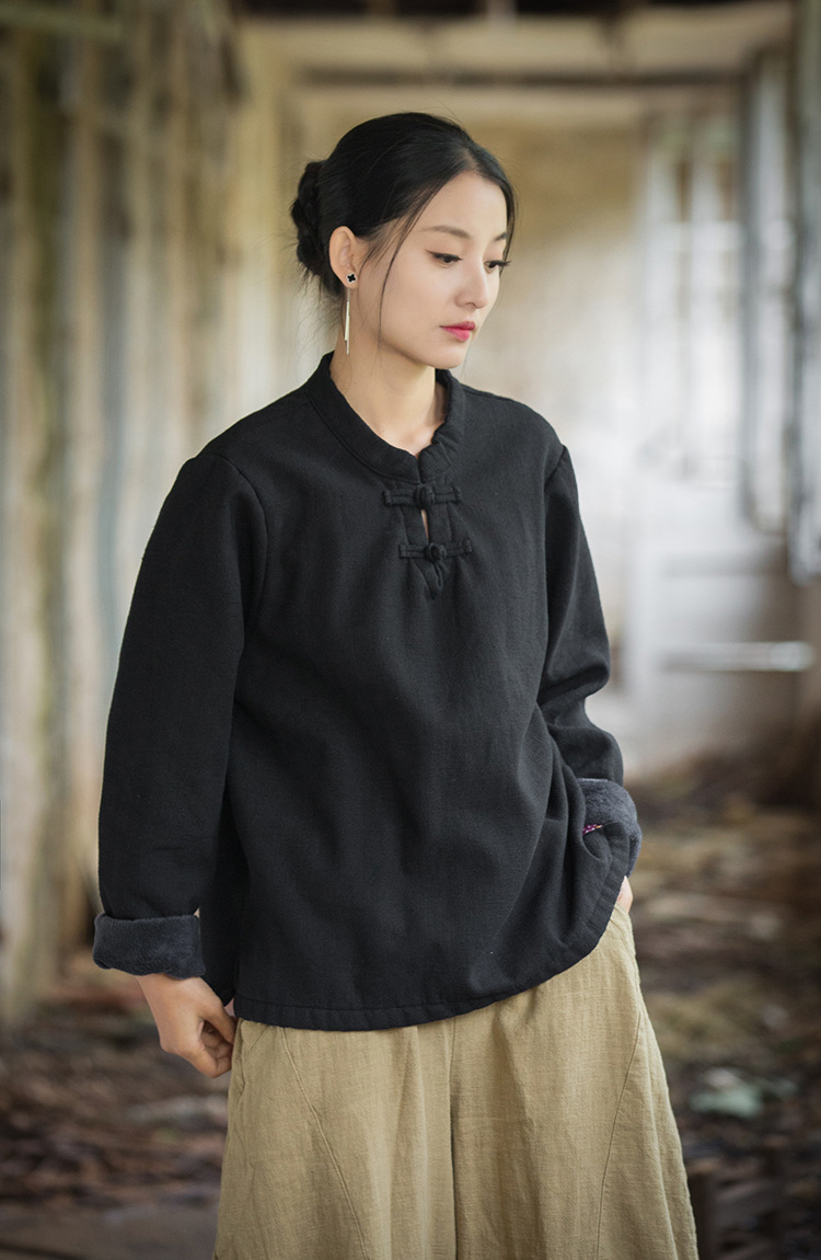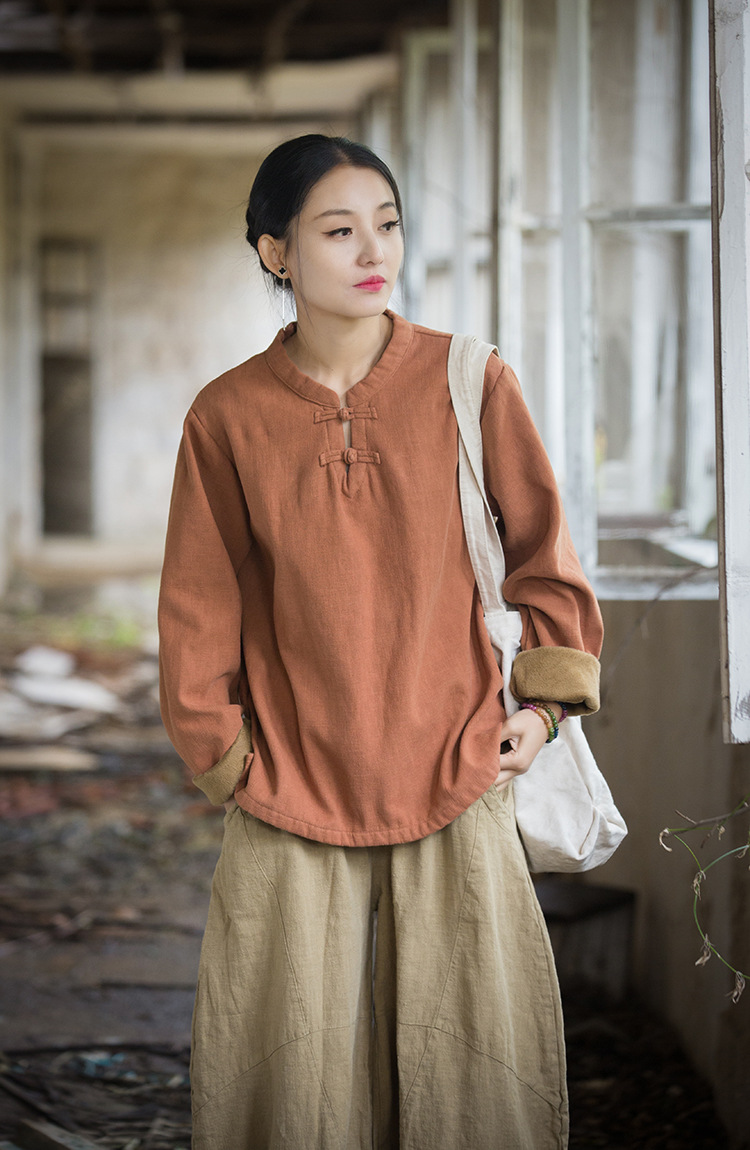 25 봄과 여름 코튼과 린넨 여성의 새로운 스타일 라미 벨벳 두꺼운 바닥 셔츠 버클 복고풍 문학 여성 탑 티셔츠