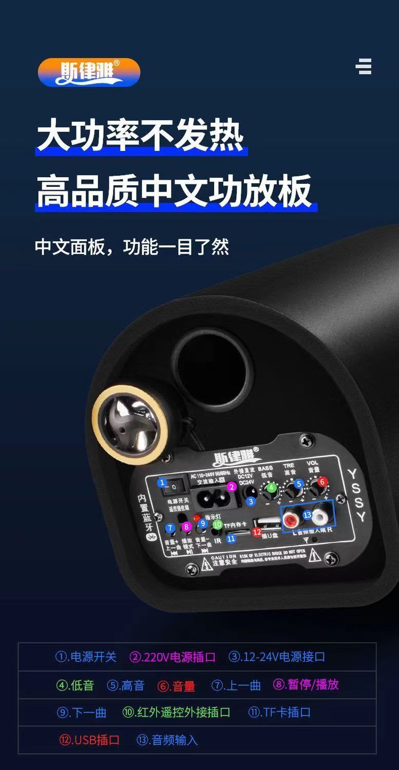 • 새로 업그레이드된 모델 8inch 라운드(블루투스/카드/USB 디스크/AUX 지원)