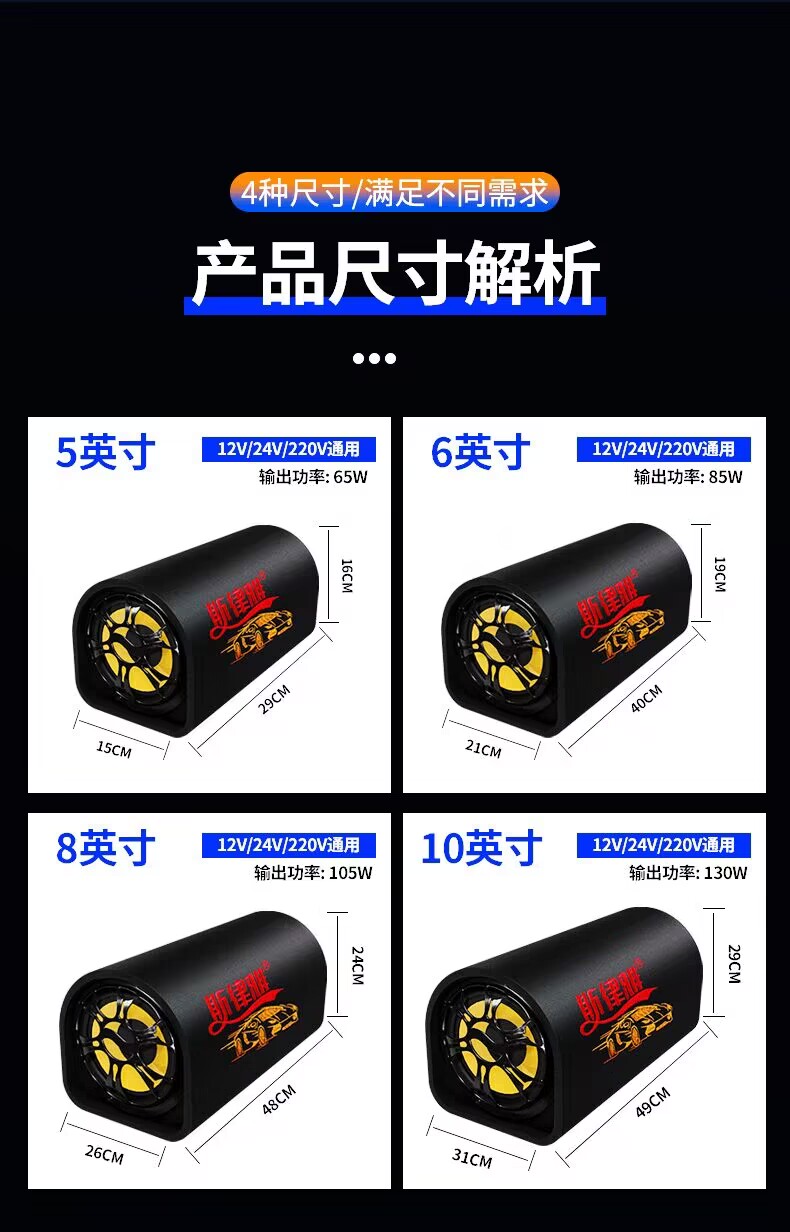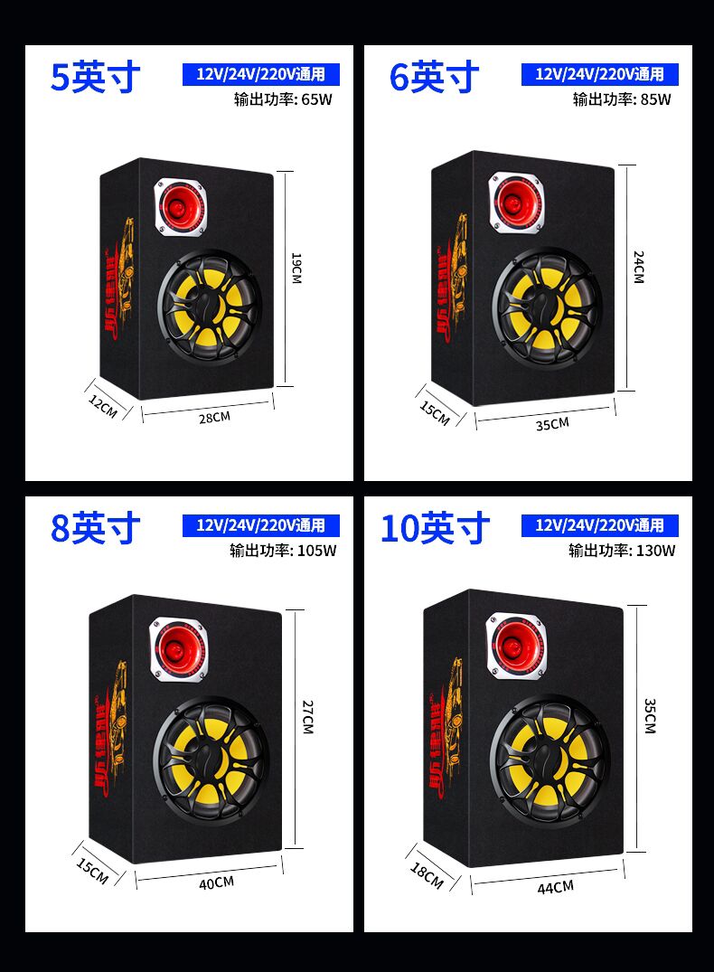 자동차 서브 우퍼 12V24V 자동차 트럭 오디오 220V 홈 고성능 서브 우퍼 무선 블루투스 스피커