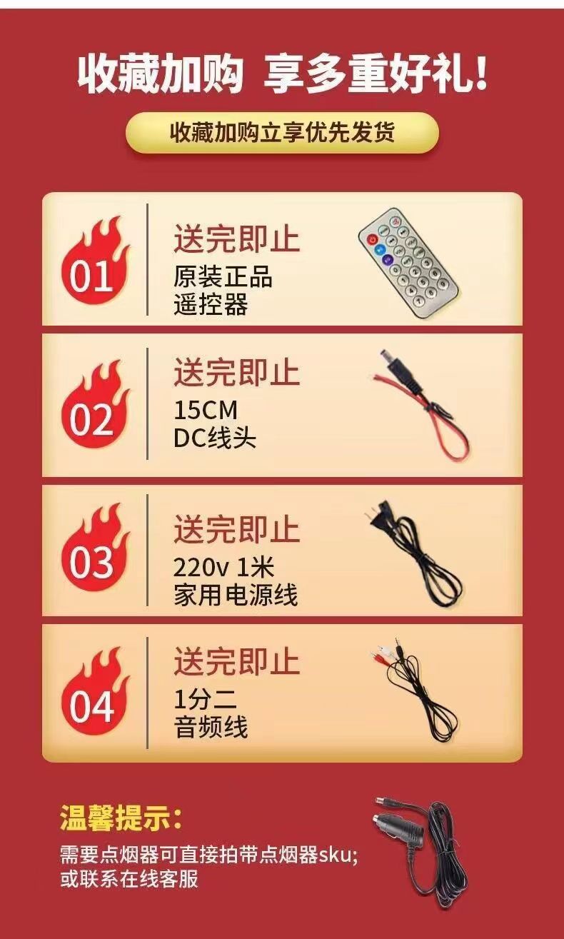 • 새로 업그레이드된 모델 10inch 스퀘어(블루투스/카드/USB 플래시 드라이브/AUX 지원) + 시가 라이터 케이블