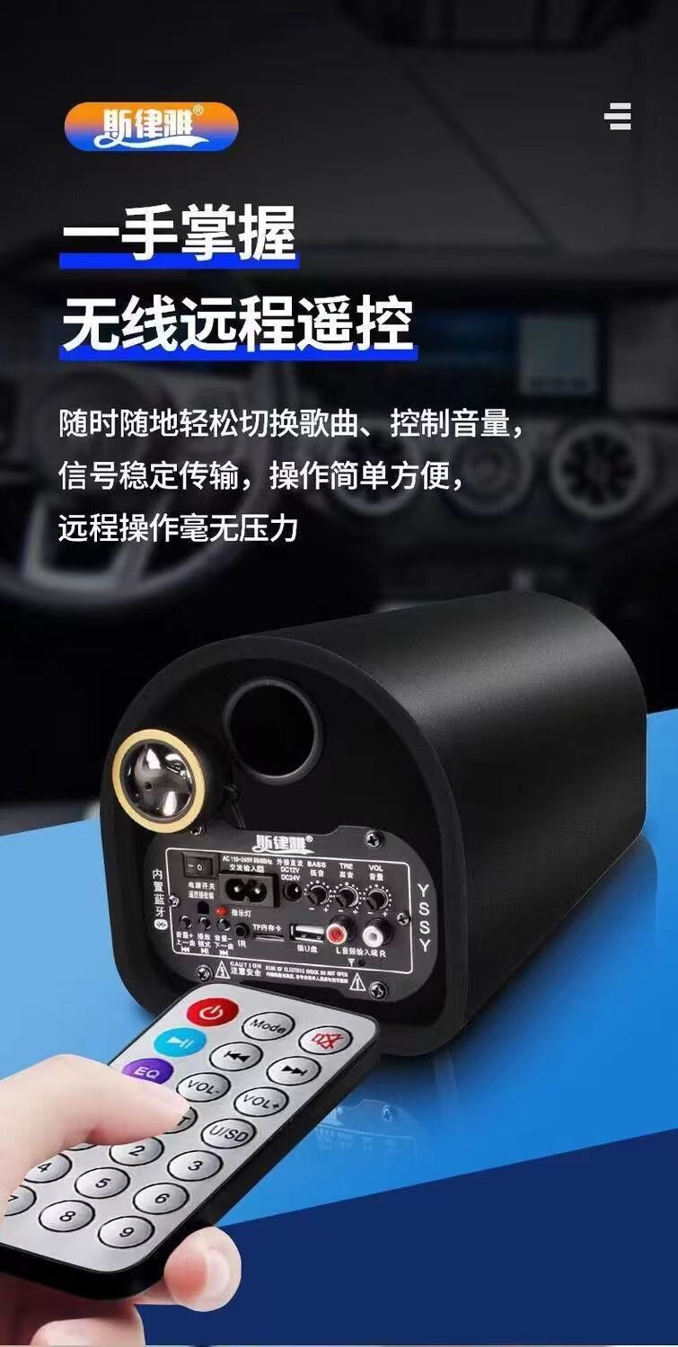 • 새로 업그레이드된 8inch 터널 모양(블루투스/카드/USB 플래시 드라이브/AUX 지원) + 시가 라이터 케이블