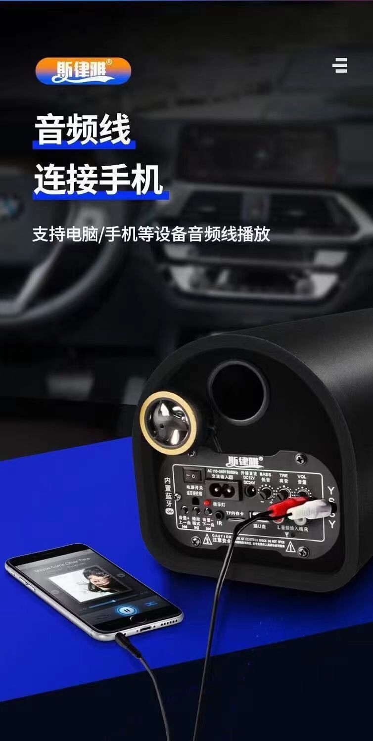 • 새로 업그레이드된 모델 8inch 스퀘어(블루투스/카드/USB 플래시 드라이브/AUX 지원) + 시가 라이터 케이블