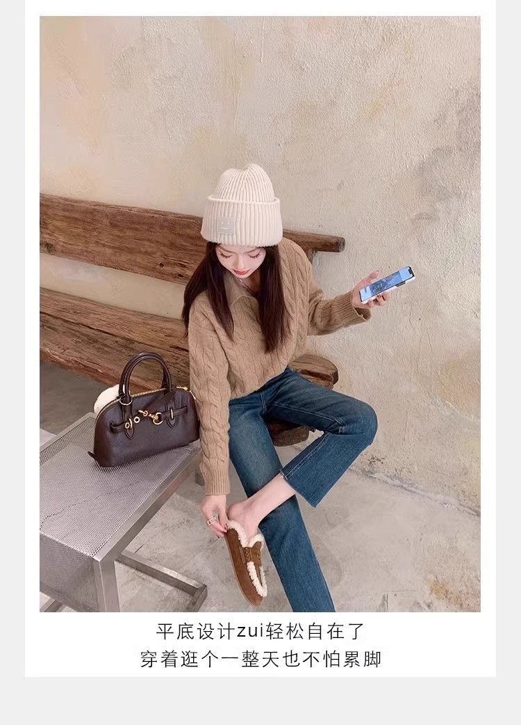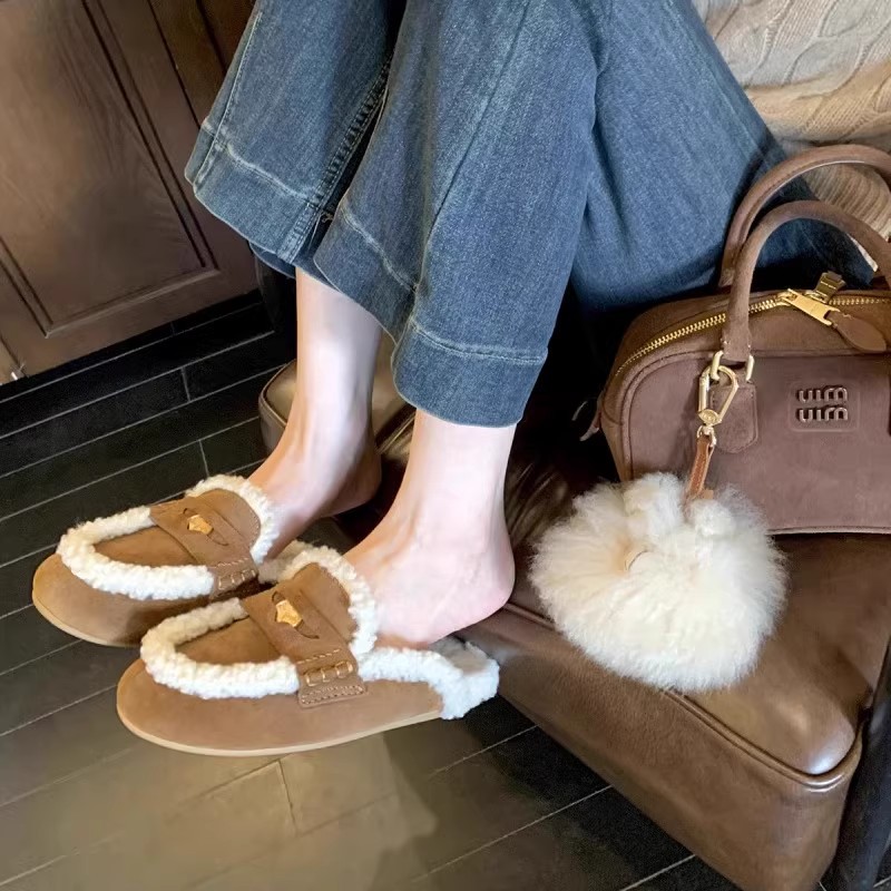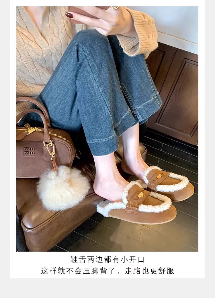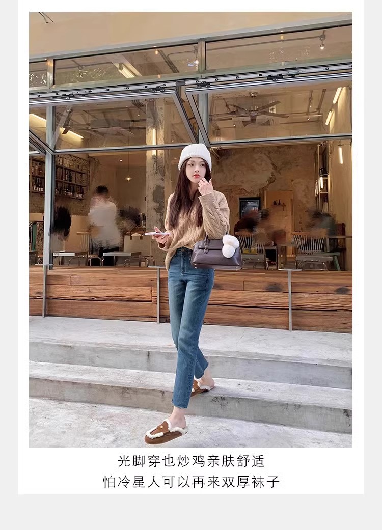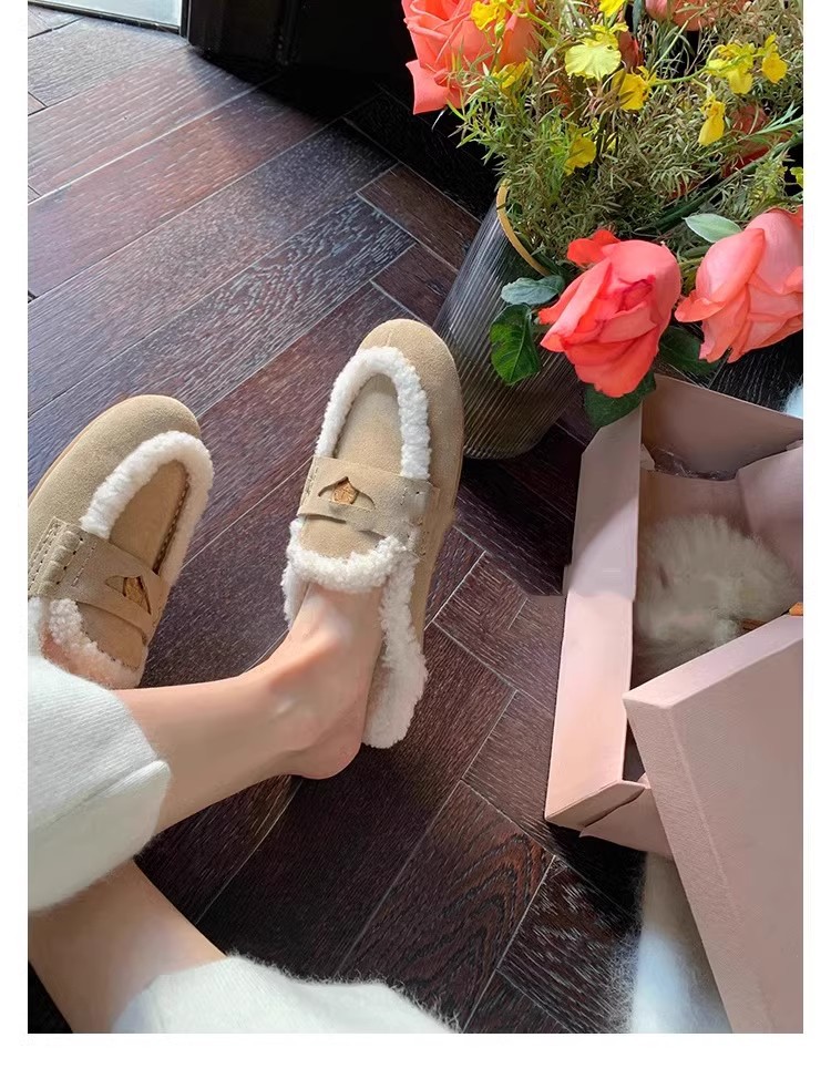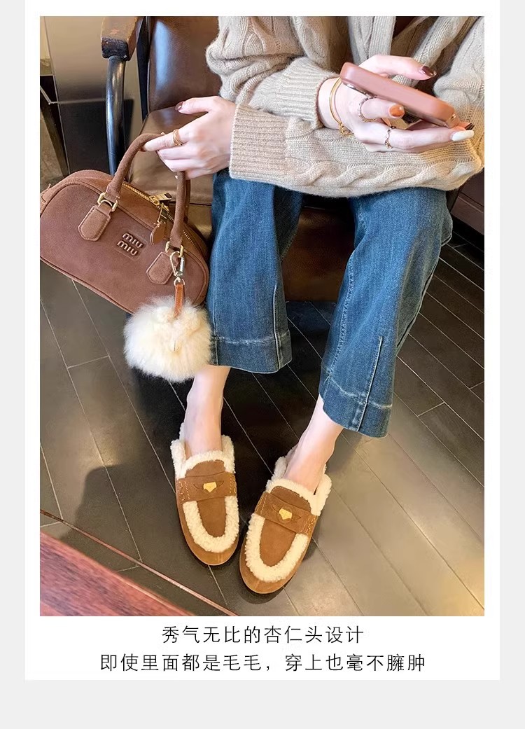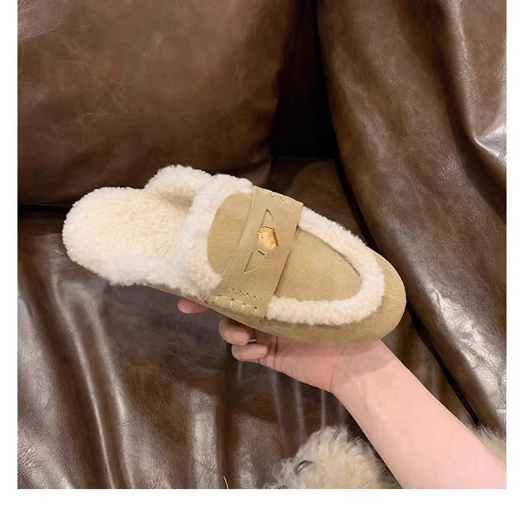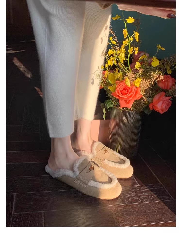 천연 가죽 포도색 여성 신발 버켄스타일 슬리퍼 슬립온 가을 겨울용 플러스 퍼 여성용 외출용 슬리퍼스토어 가기