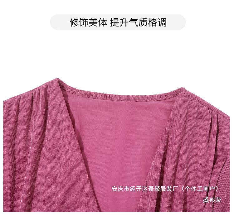 크로스 V 넥 메쉬 티셔츠 여성 긴팔 2024 가을 새로운 밝은 실크 셔츠 서양식 내부 레이스 바닥 셔츠 탑