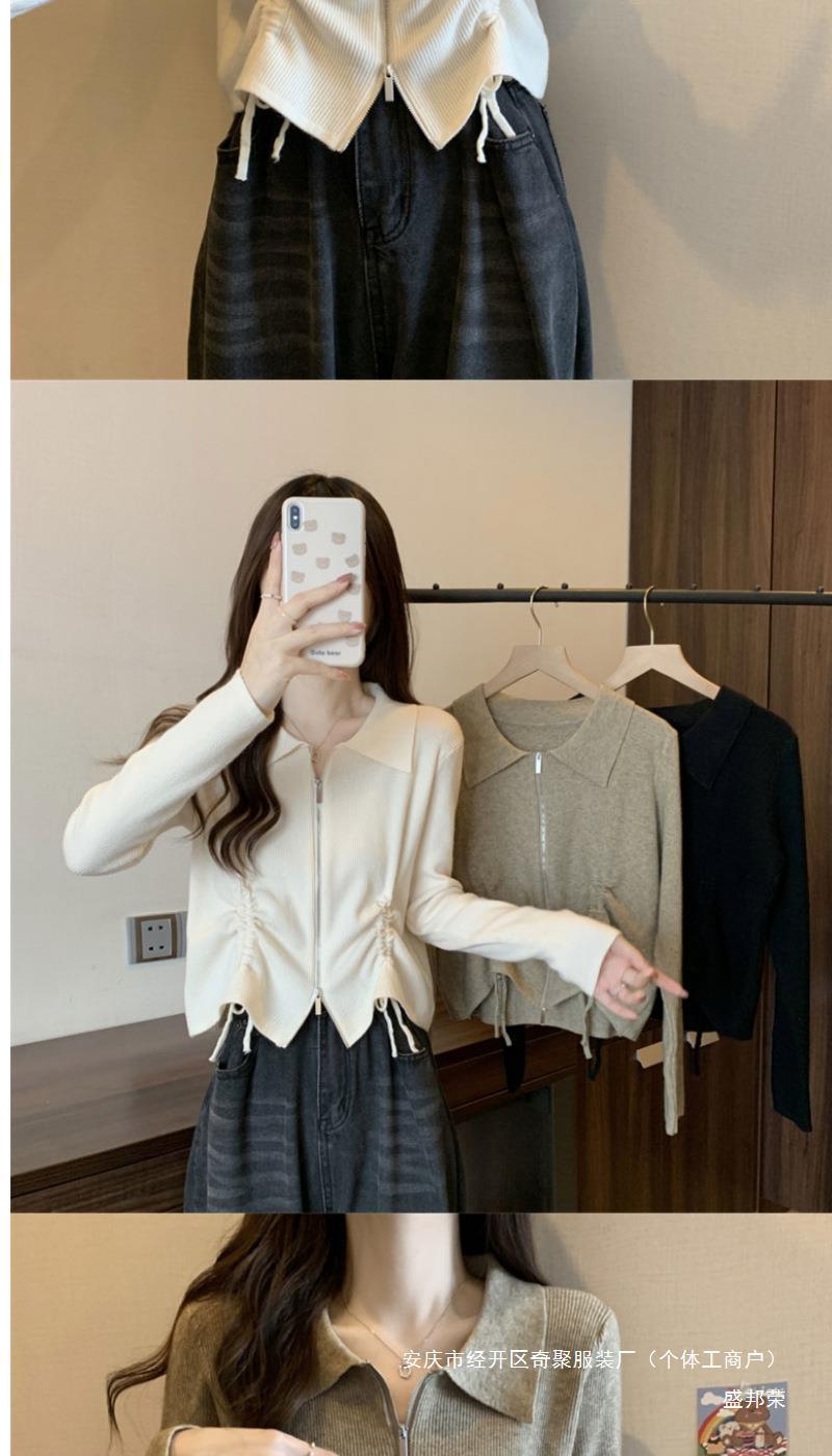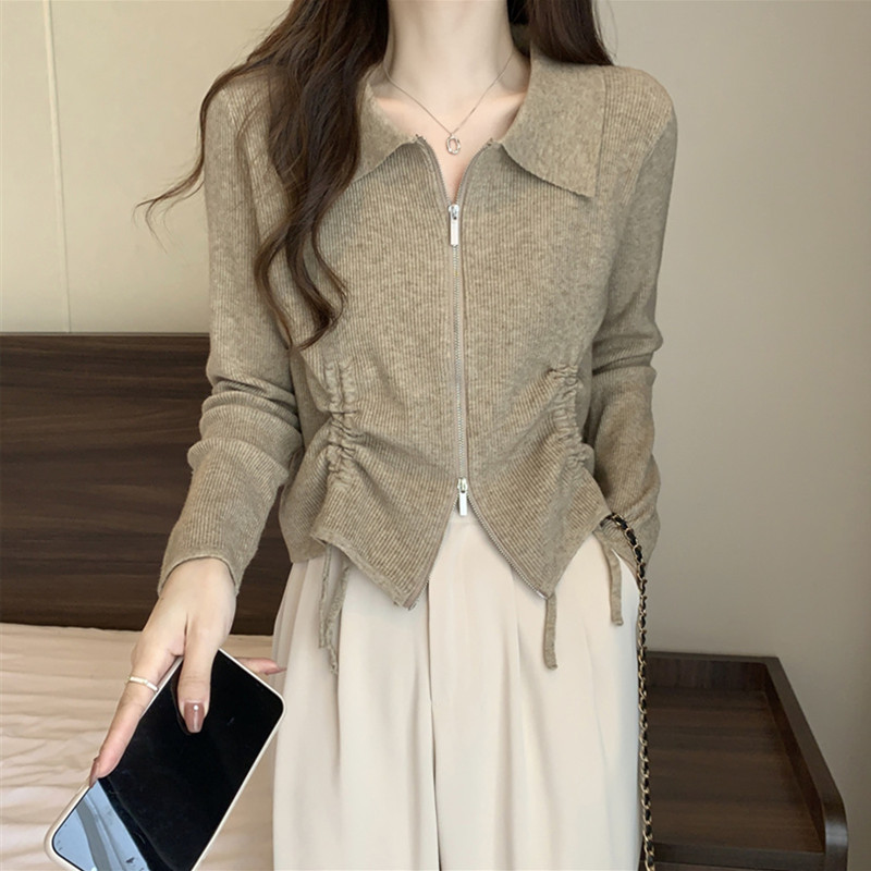 공장 니트 슬림 드로우 스트링 긴 소매 탑 여성용 솔리드 컬러베이스 셔츠 통통한 자매 봄과 가을 플러스 사이즈 여성용 칼라스토어 가기