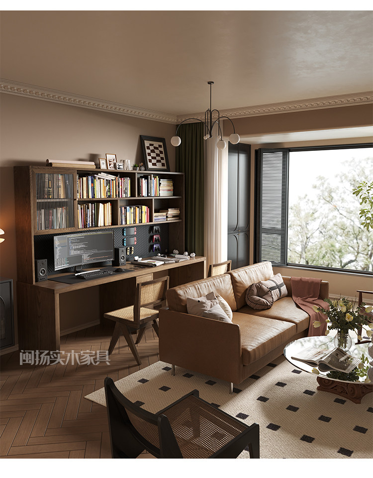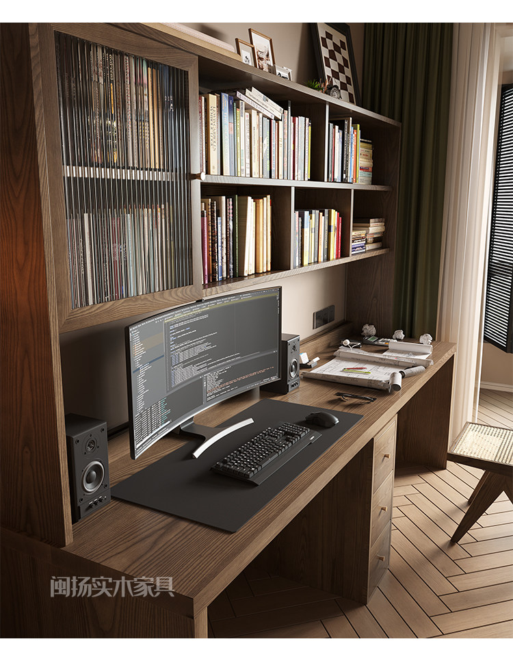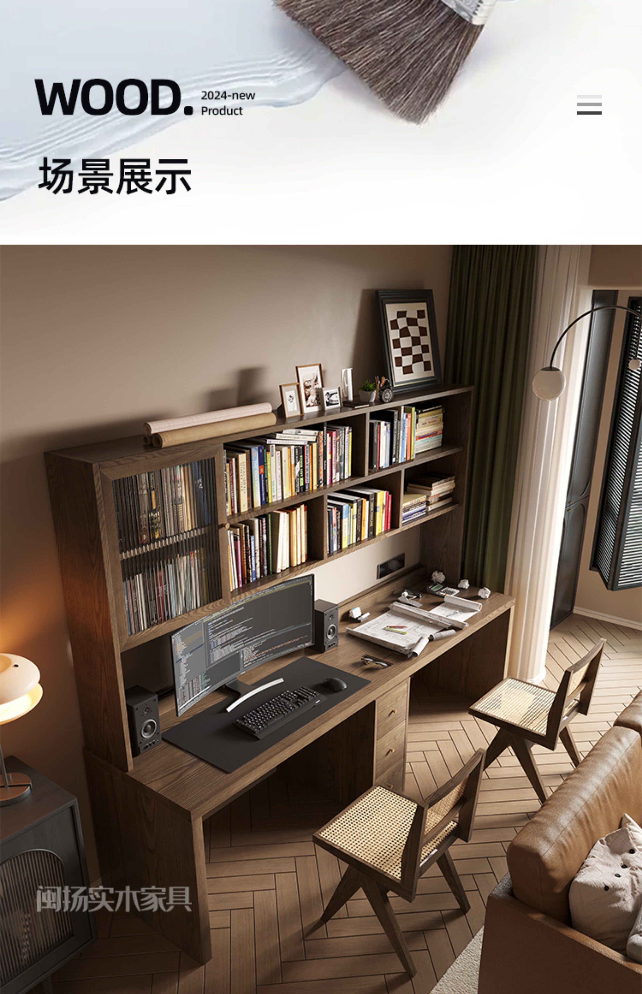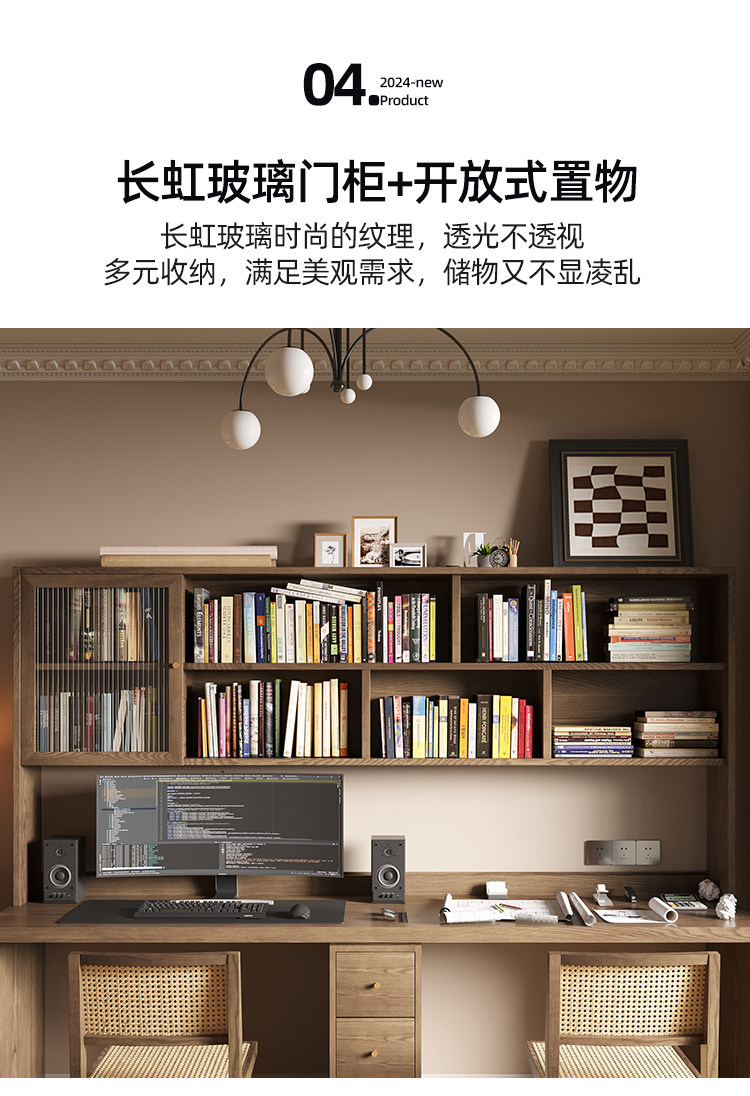단단한 나무 더블 데스크 책장 홈 긴 스트립 테이블 작업대 연구 벽 연구 컴퓨터 책상 책장 통합스토어 가기