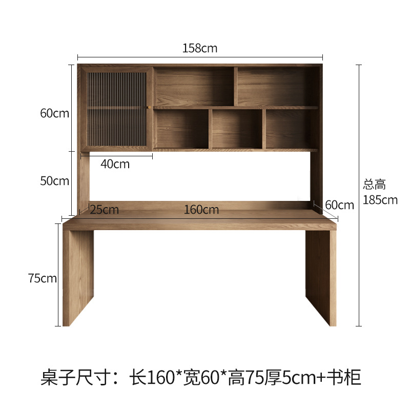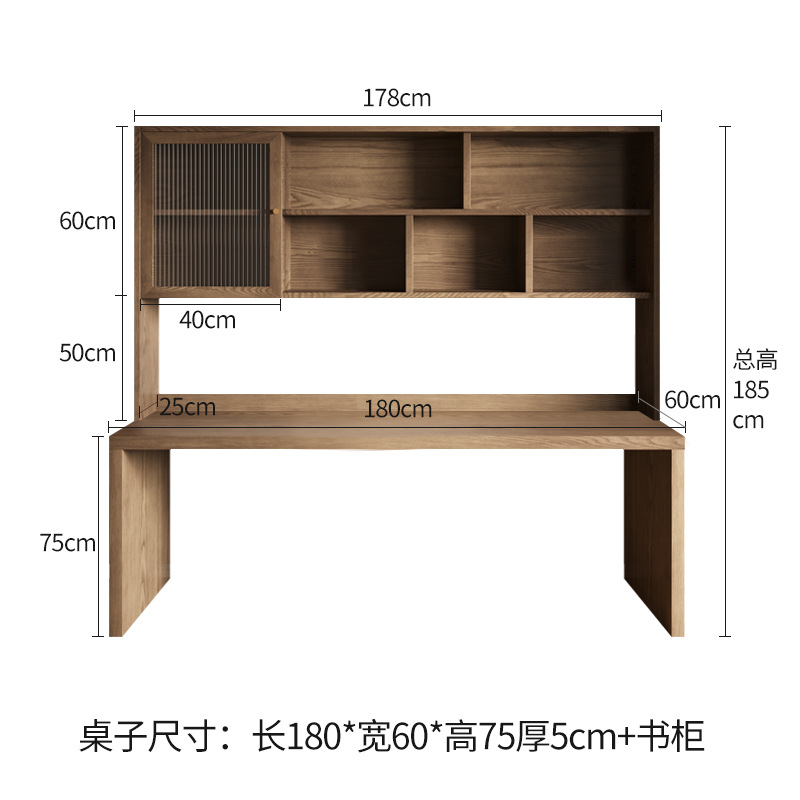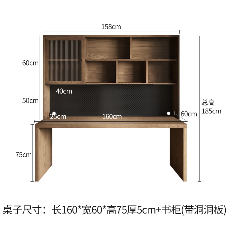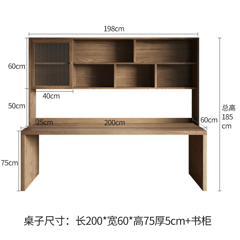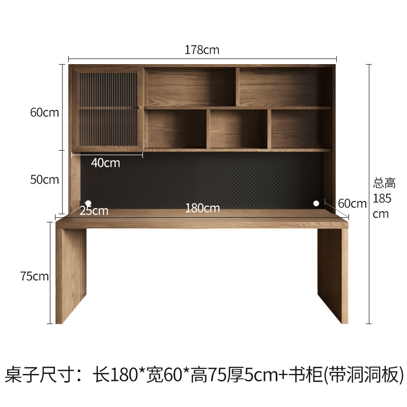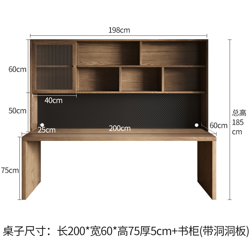 단단한 나무 더블 데스크 책장 홈 긴 스트립 테이블 작업대 연구 벽 연구 컴퓨터 책상 책장 통합스토어 가기
