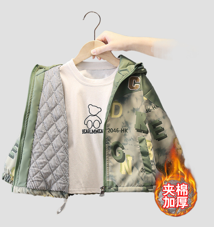 소년 코트 봄, 가을 2025 새로운 유행상의 어린이 가을, 겨울 후드 윈드 브레이커 베이비 캐주얼 탑 코튼 코트
