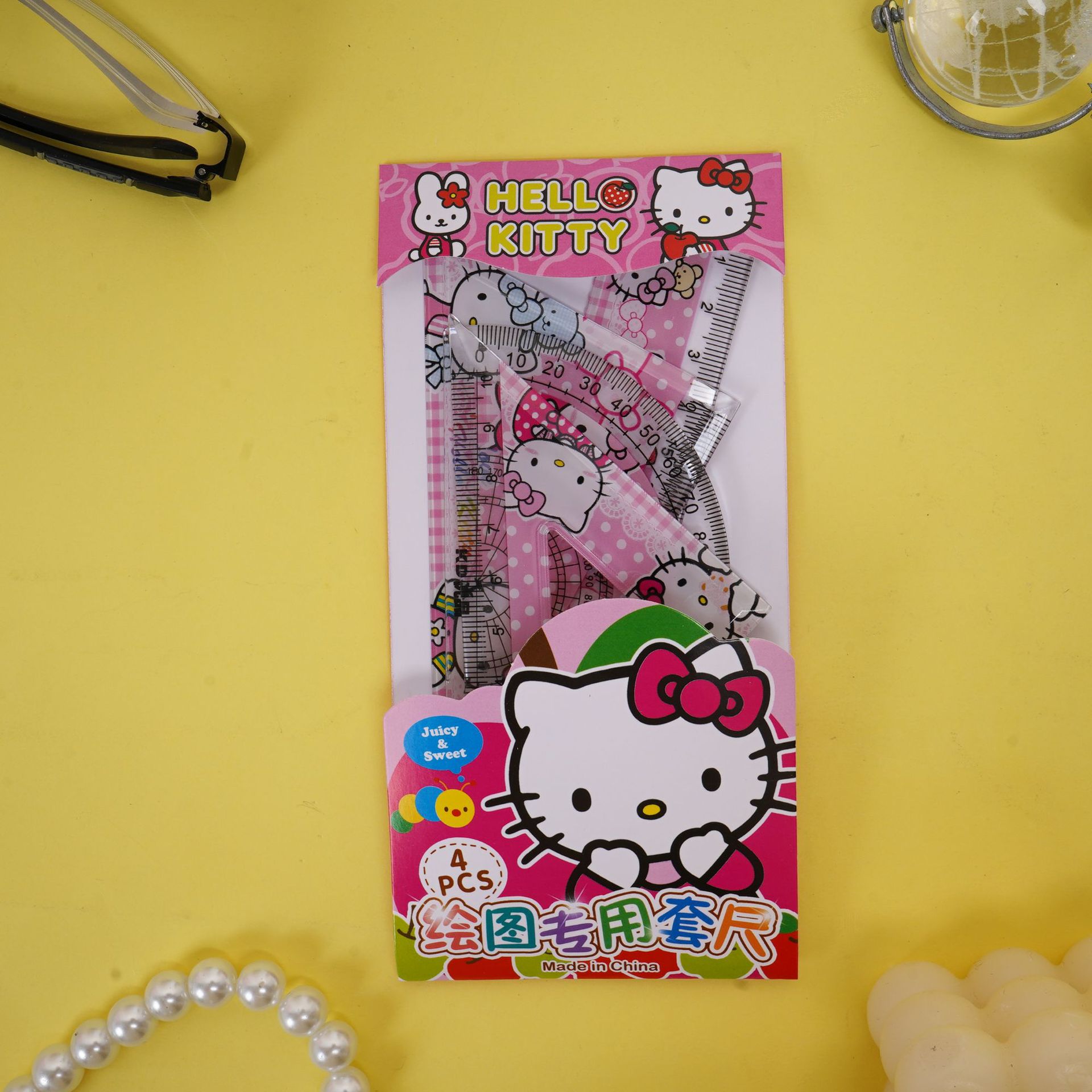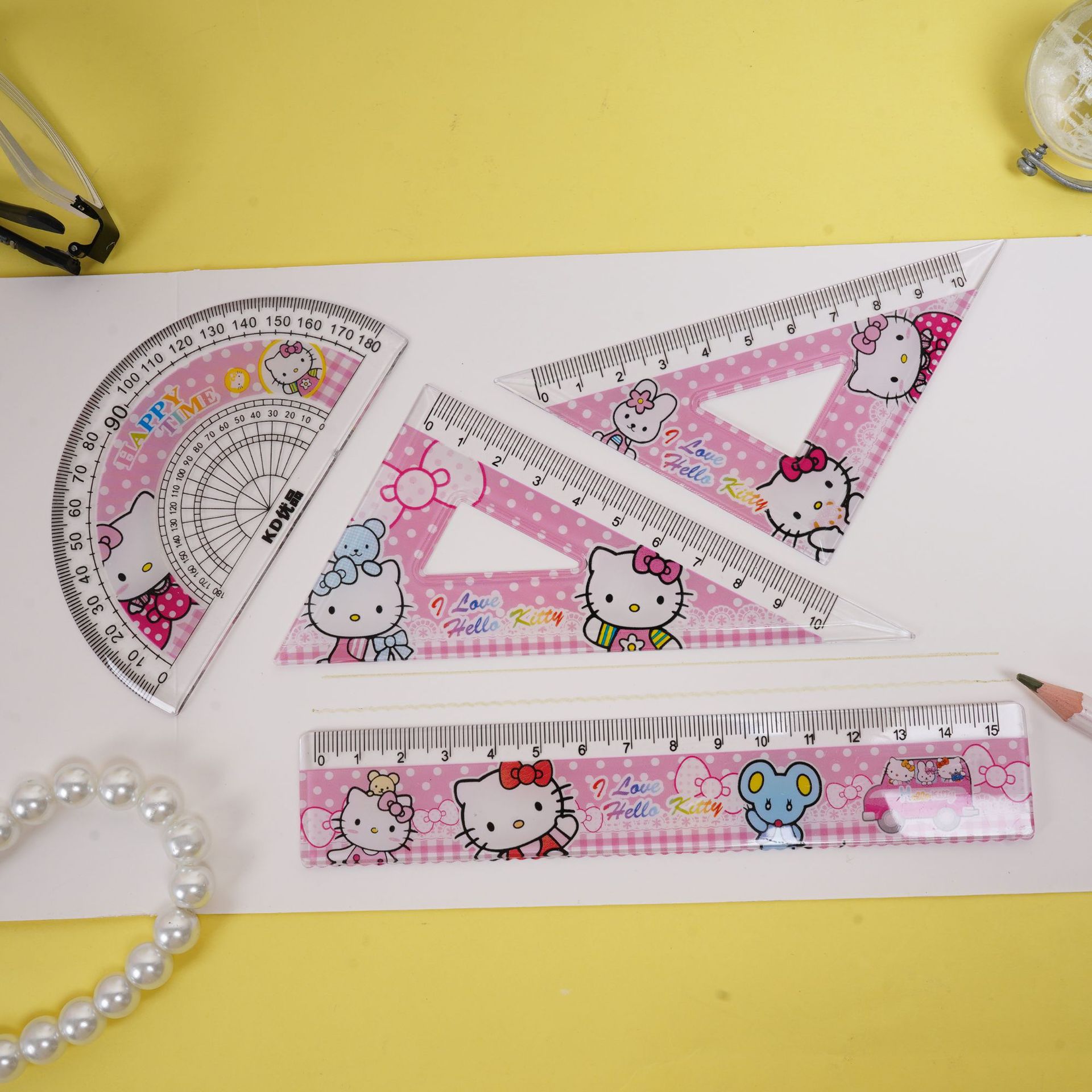 새로운 KT 고양이 세트 통치자 학생 문구 통치자 4 조각 만화 귀여운 삼각형 통치자 세트 공급 도매스토어 가기